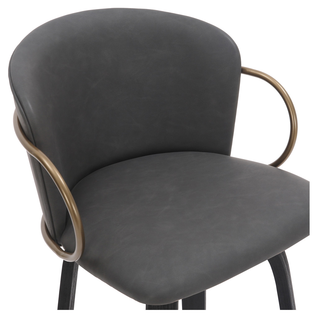 • Vintage charcoal faux leather seat and black wood grain legs