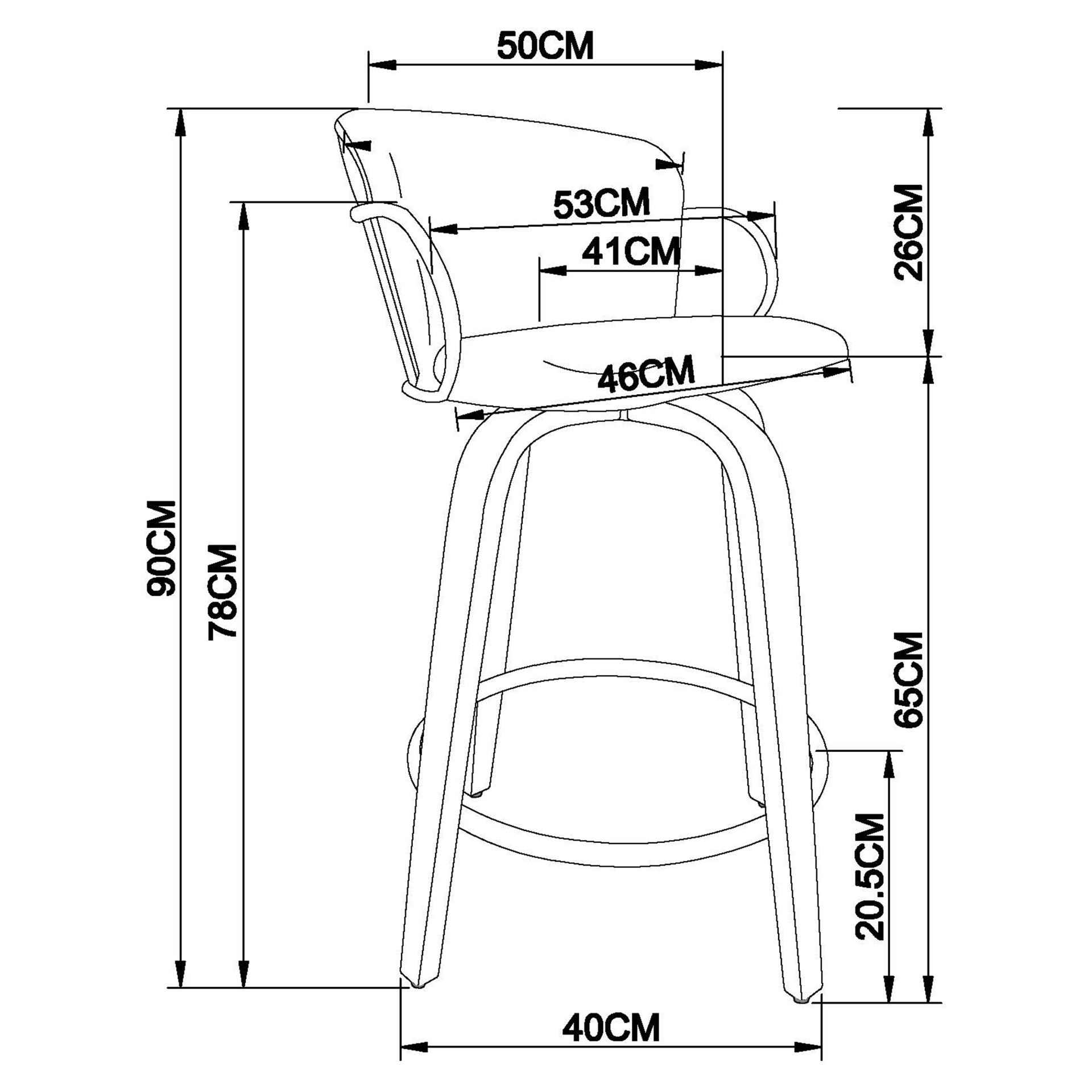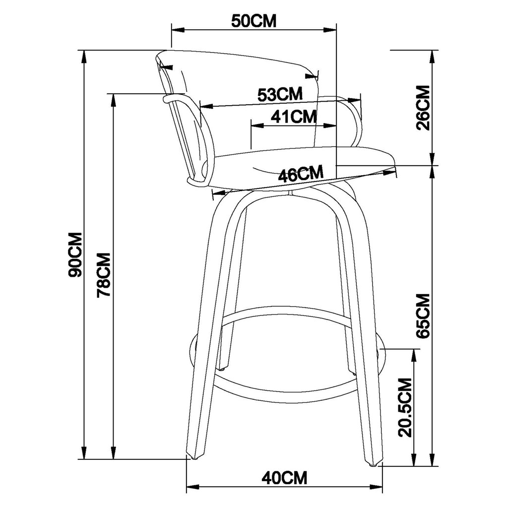 • 26" counter height stool with 360° swivel seat