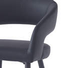 The black on black faux leather and metal base combination is a fabulous contemporary touch and will work to modernize any style room.