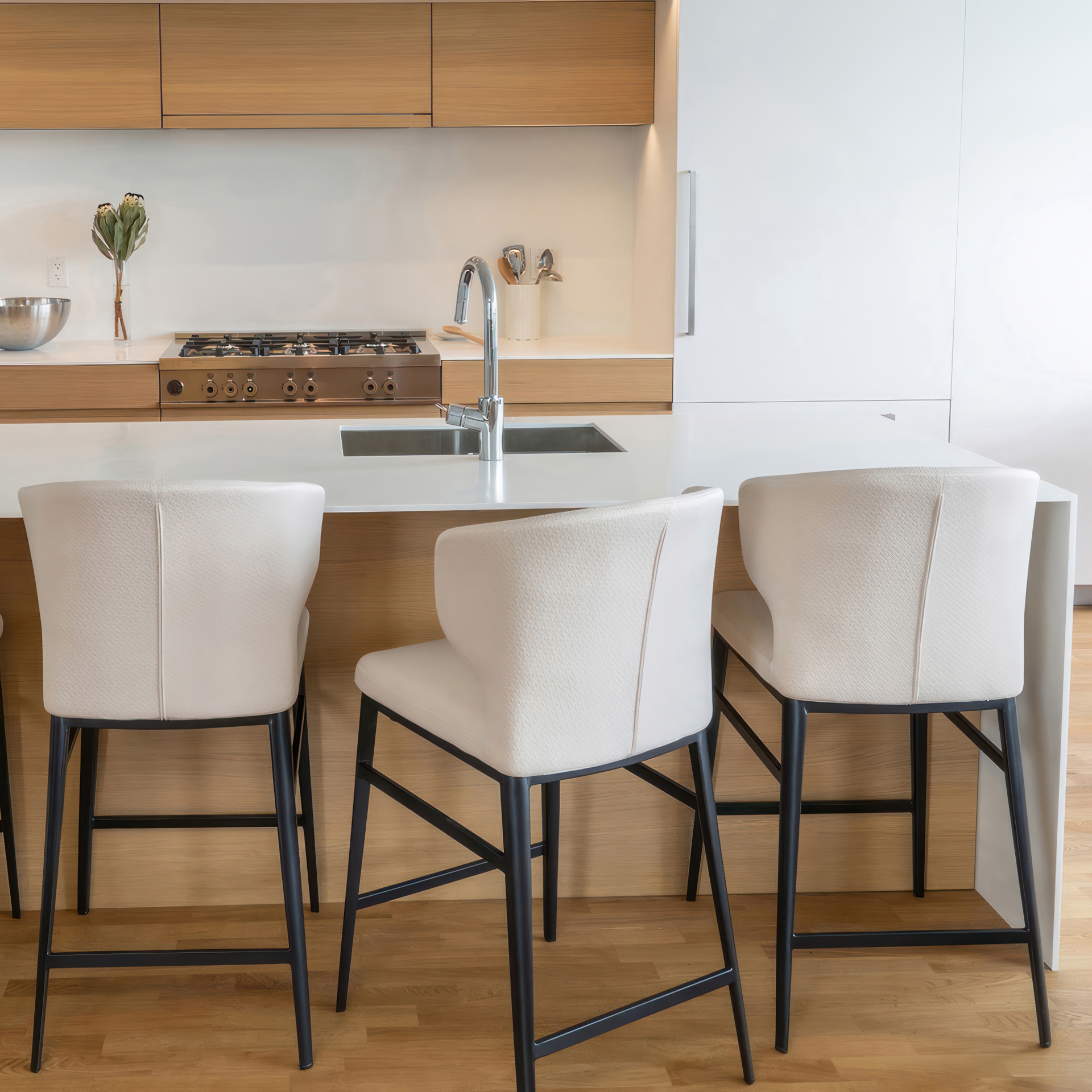 The Delaney stool has a nice profile that looks great from all angles. A sturdy steel frame with a modern look.