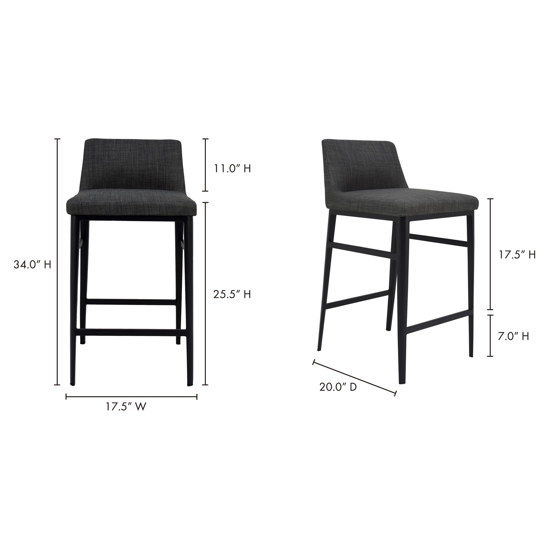 Modern and minimalist, the Baron counter stool's low-backed design and sleek profile add visual appeal with a compact aesthetic, fitting seamlessly into any dining or kitchen area.