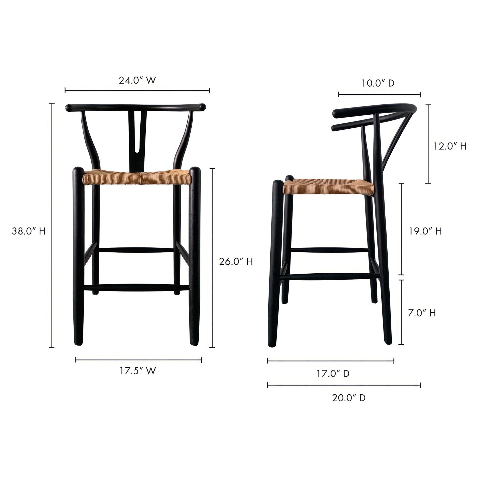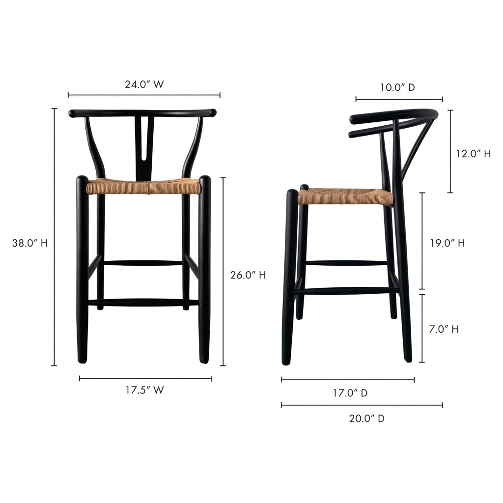 The Ventana counter stool flaunts sweet juxtaposition with its simple, sturdy construction, contemporary woven paper fiber seat, and convenient wrap around footrest.