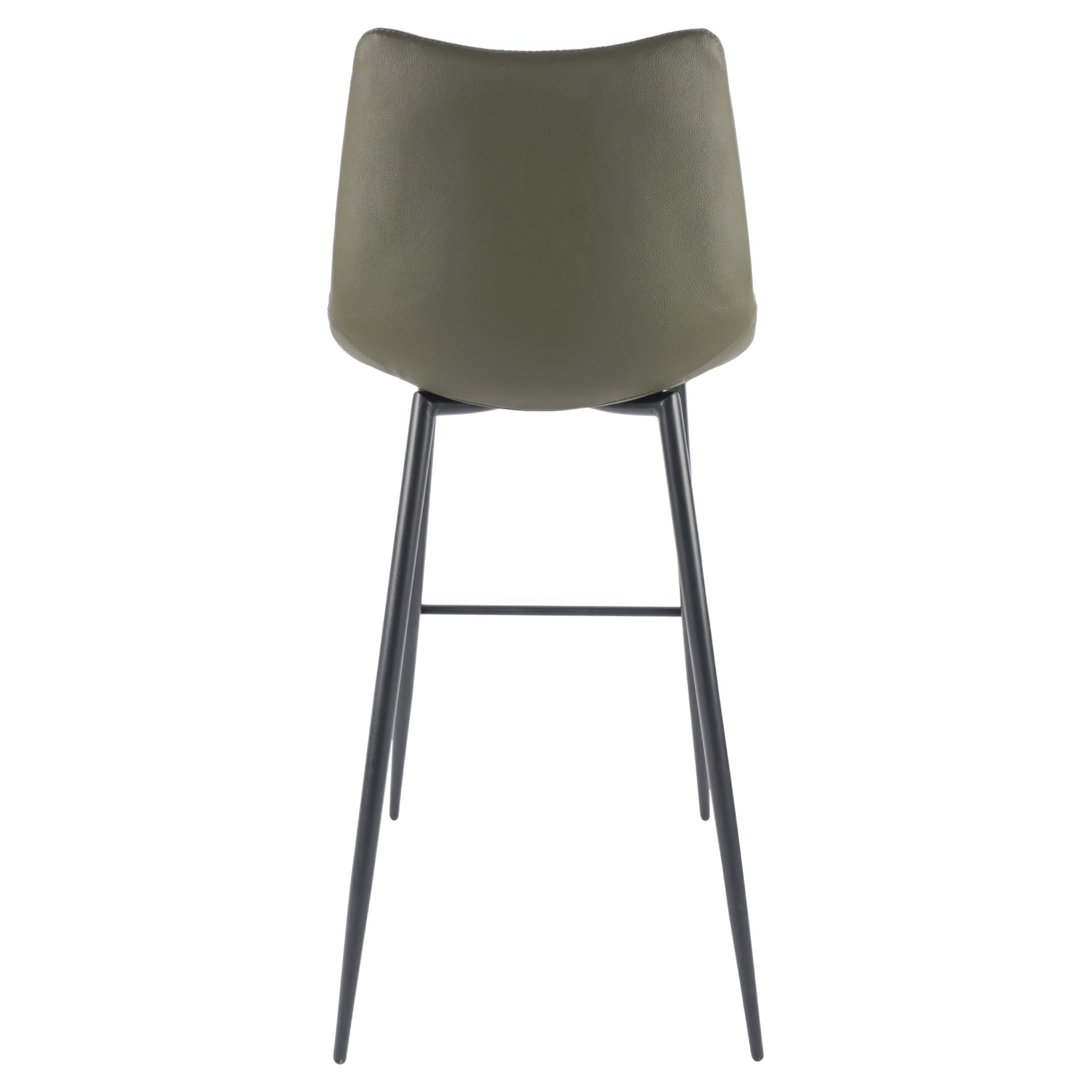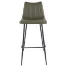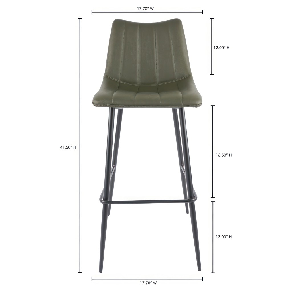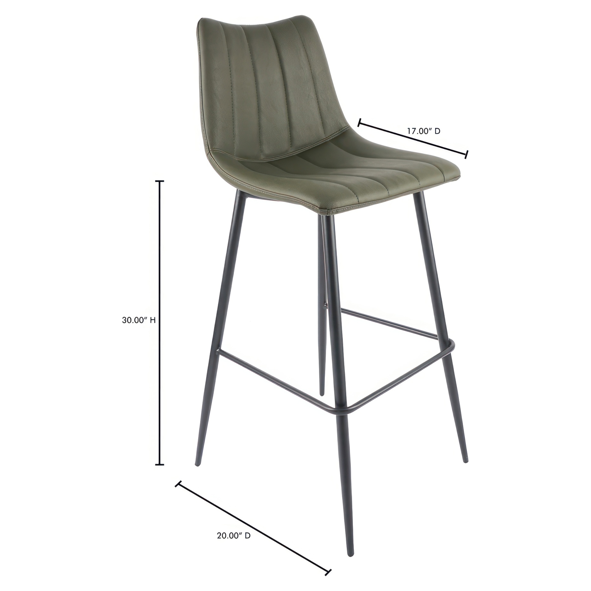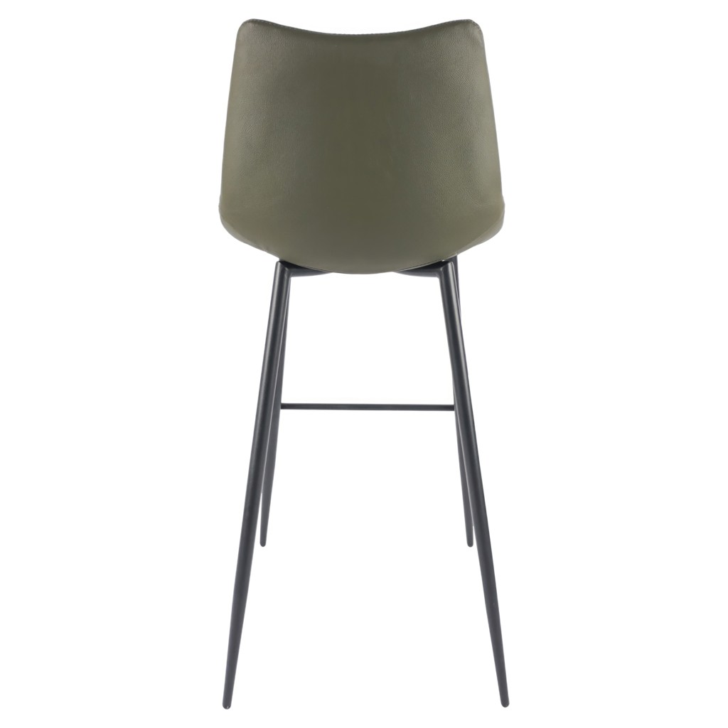 The Alibi bar stool features striking vertical line stitches that add subtle detail to its monochromatic design.