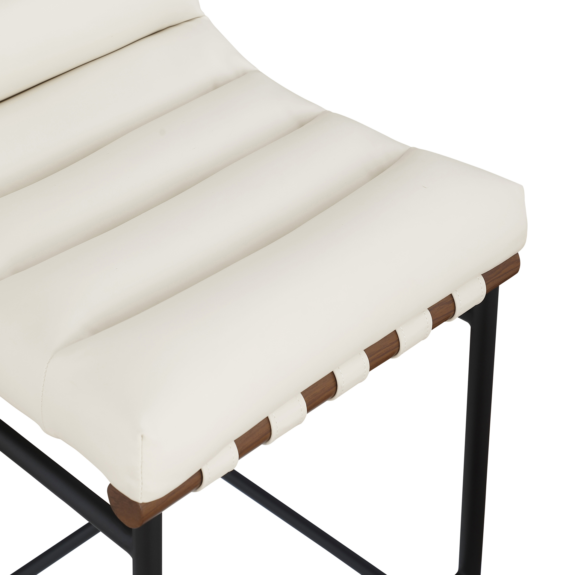Its captivating design and luxurious cream vegan leather finish elevate any space with effortless elegance.