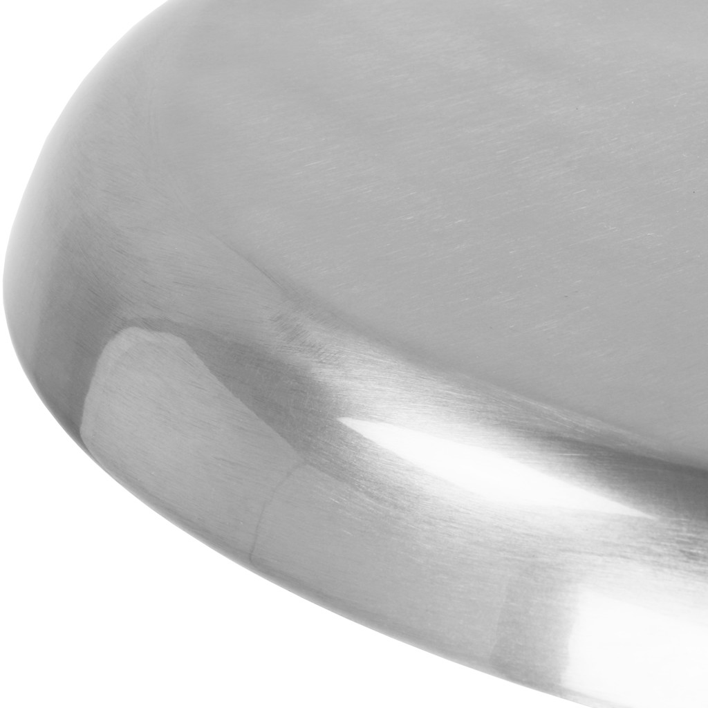 The stool is made from metal for a sturdy demeanor and has a rich silver finish for an elegant look.