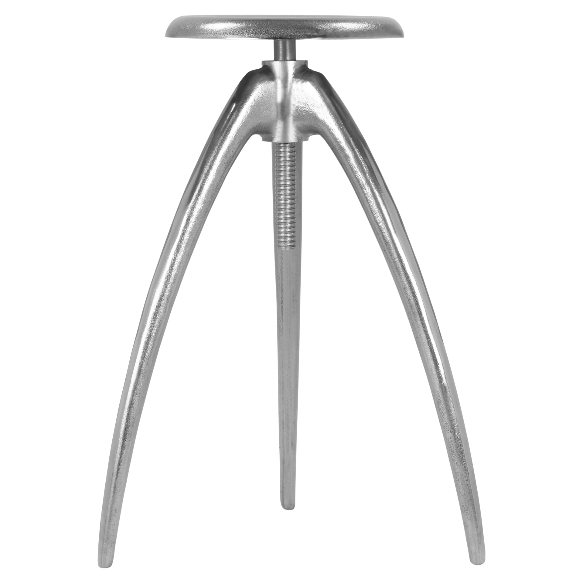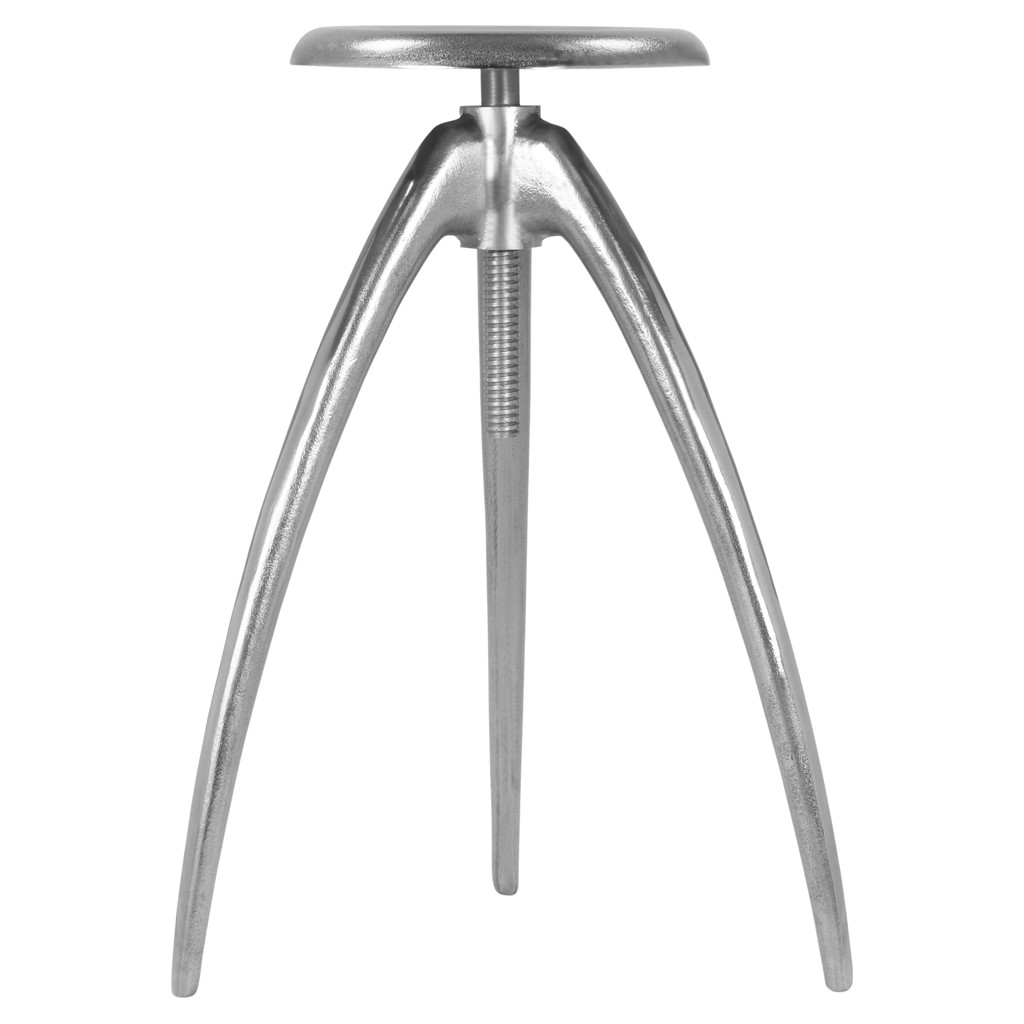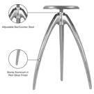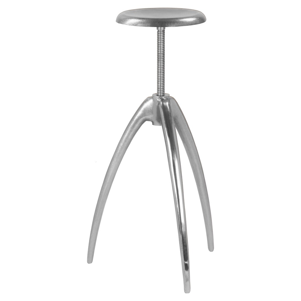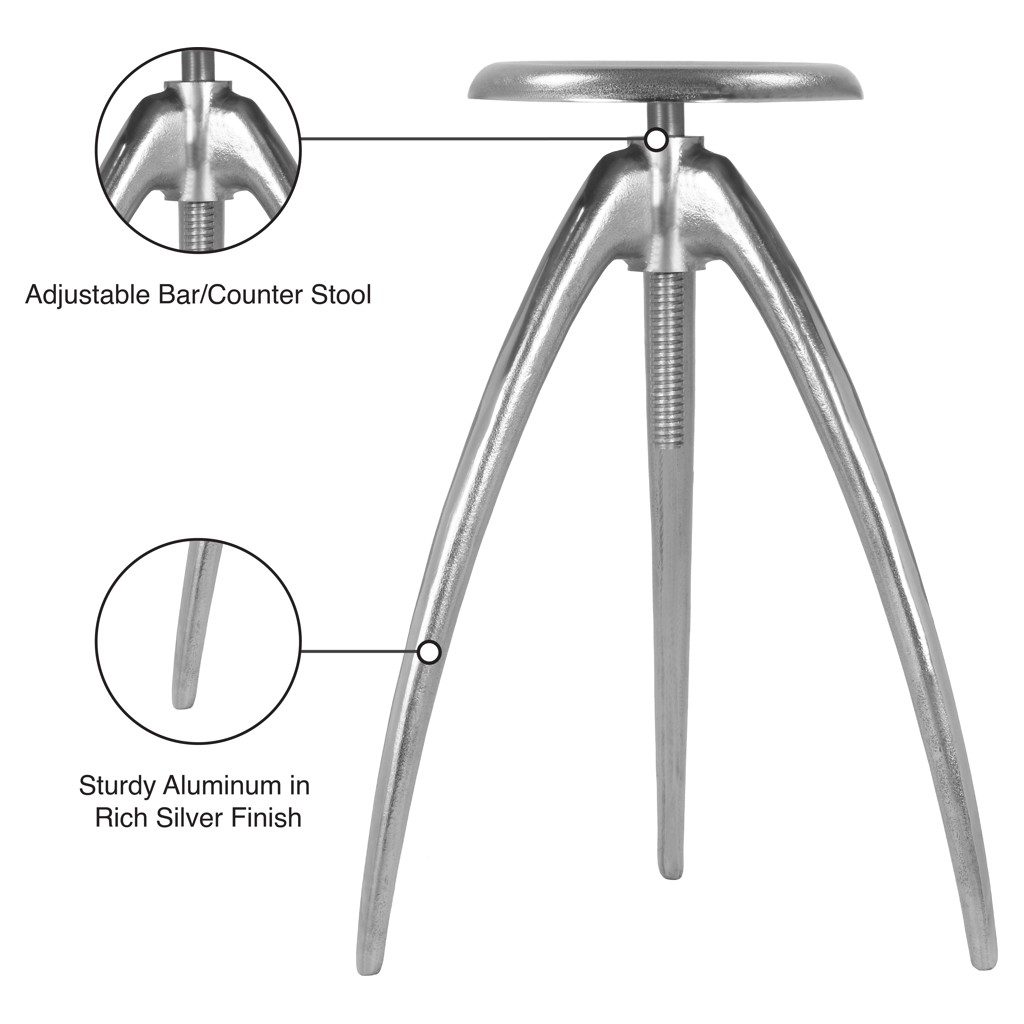 This stool features sturdy aluminum construction in a silver finish that adds an industrial slant to your kitchen or home bar space.'