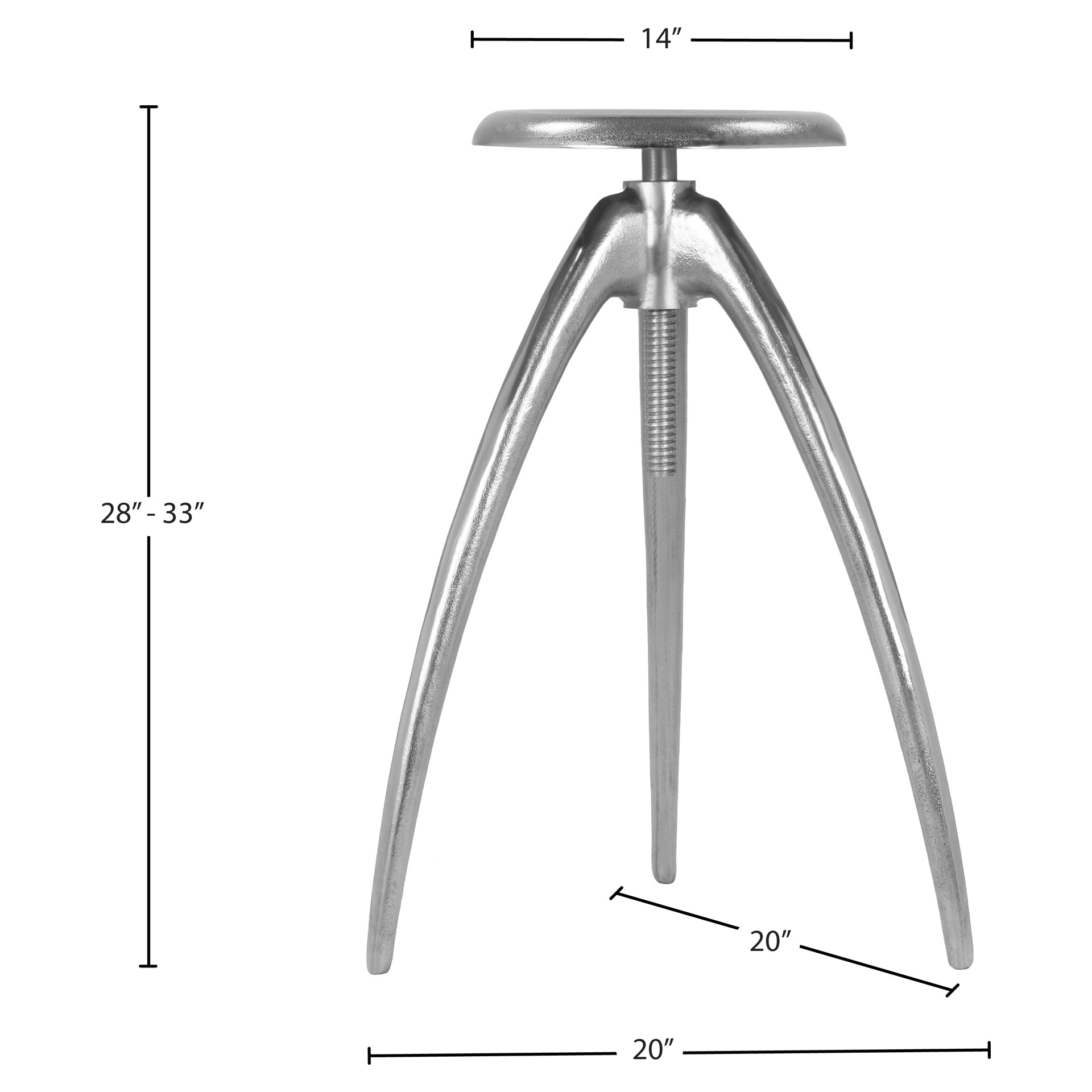 Built from metal for strength and endurance, this stool features an adjustable design that allows you to screw the seat up or down to transform its height with just a few turns from a minimum of 28 inches to a maximum of 33.