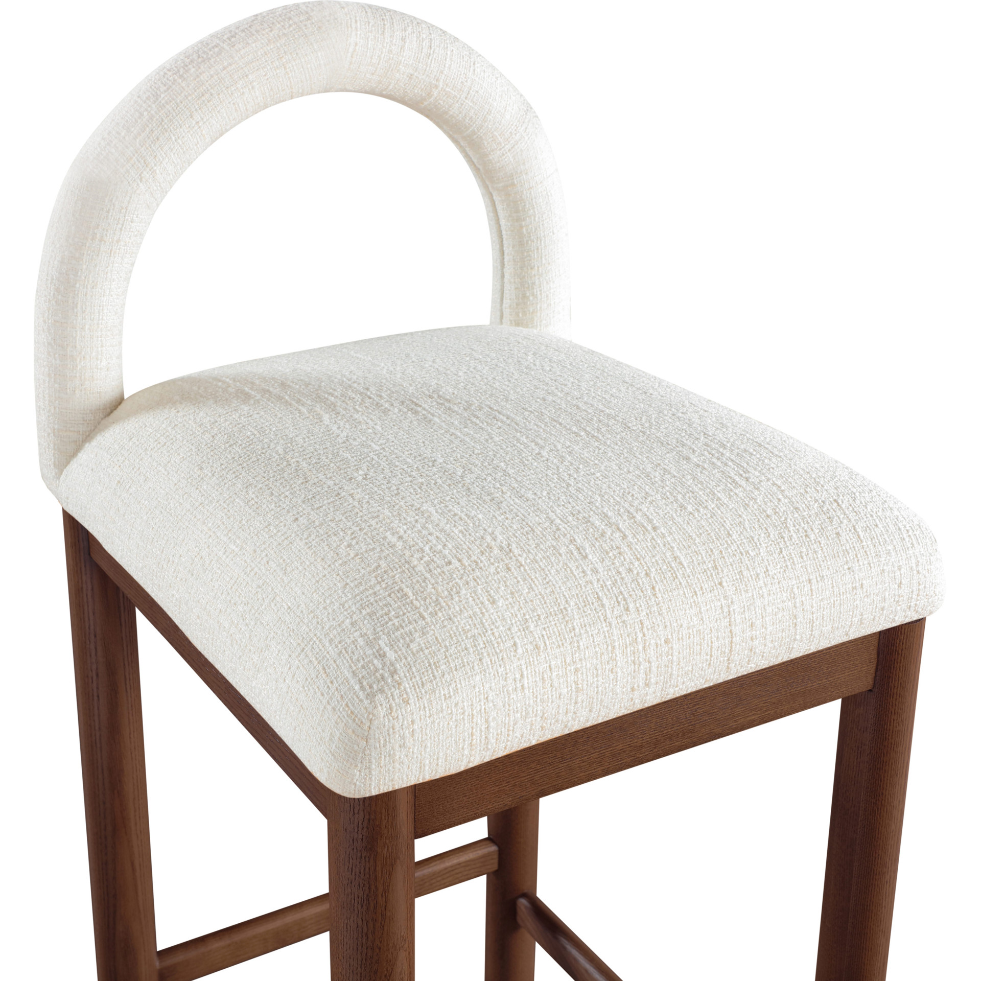 Indulge in the allure of the linen textured fabric Conrad Counter Stool by Meridian Furniture. Its captivating design and luxurious cream linen textured fabric finish elevate any space with effortless elegance.