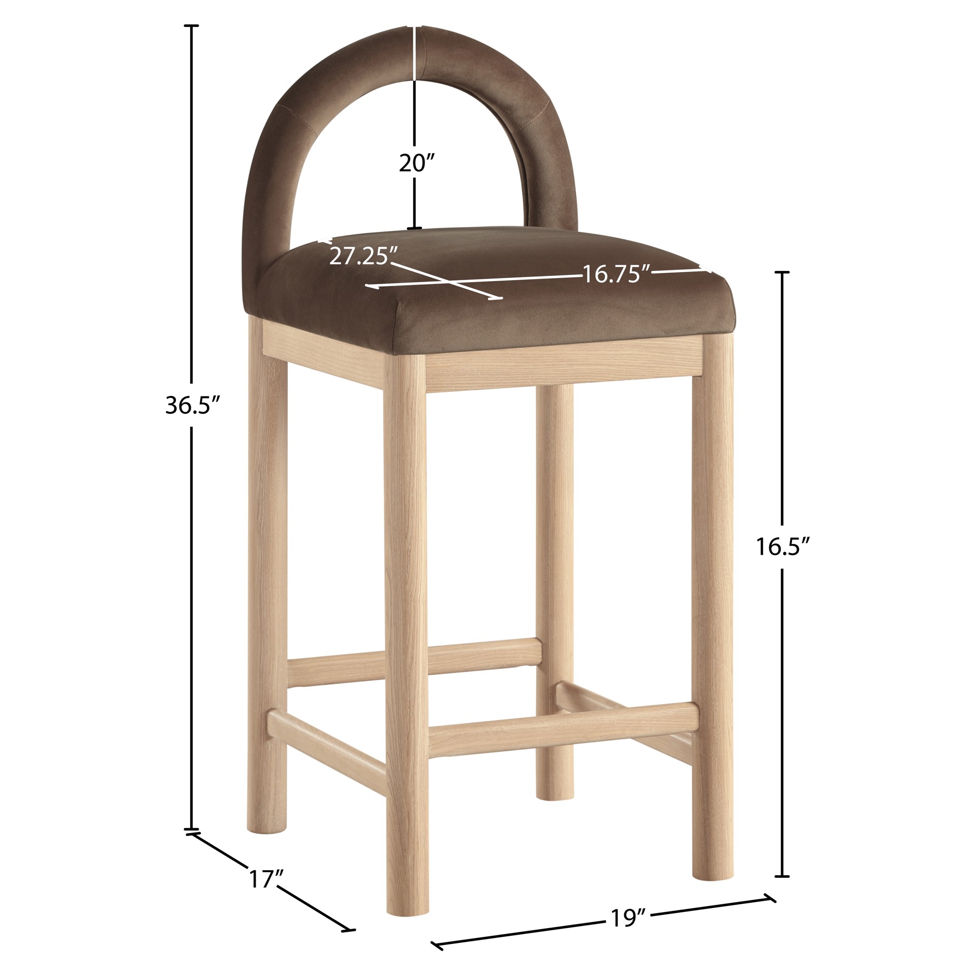 Indulge in the allure of the velvet Conrad Counter Stool by Meridian Furniture. Its captivating design and luxurious brown velvet finish elevate any space with effortless elegance.