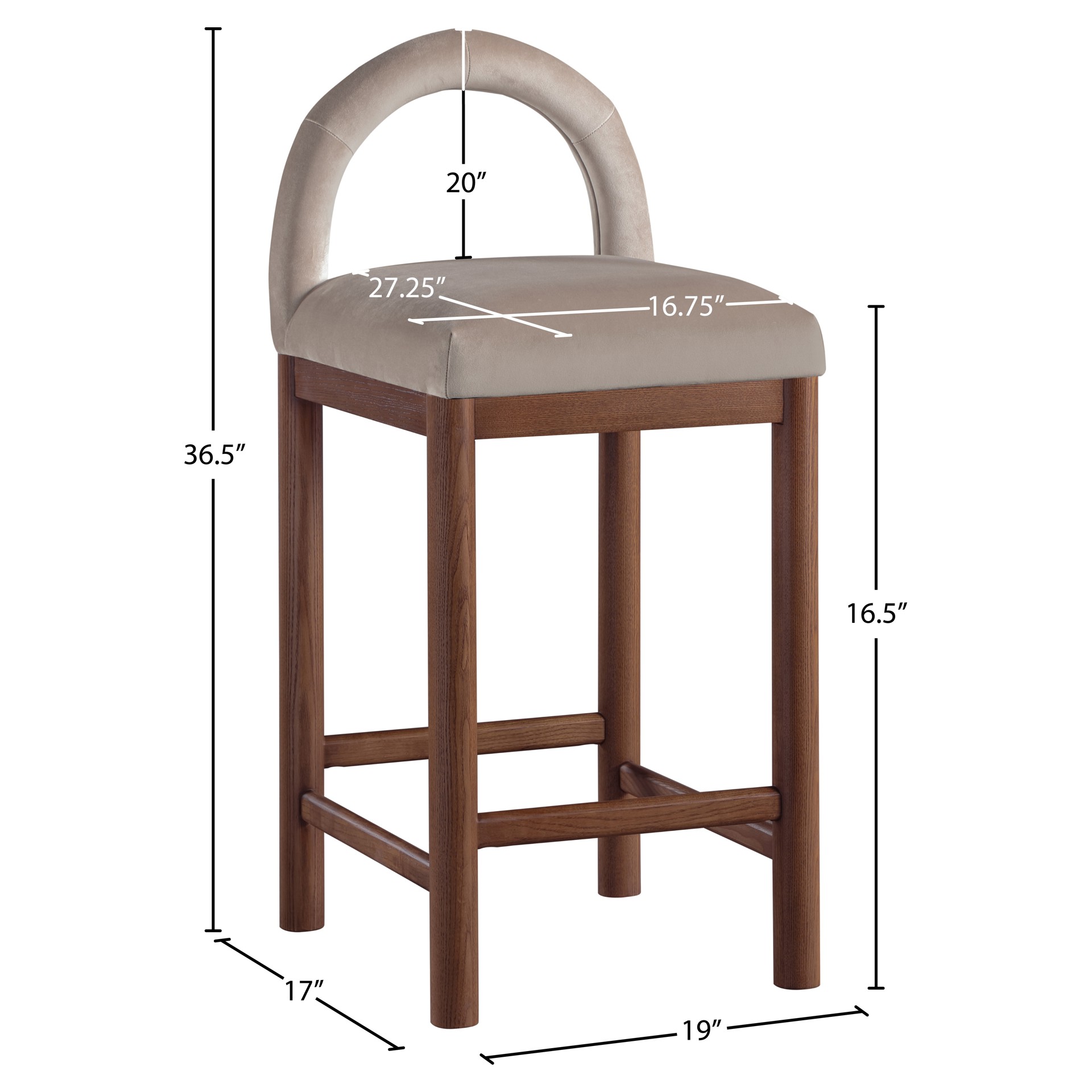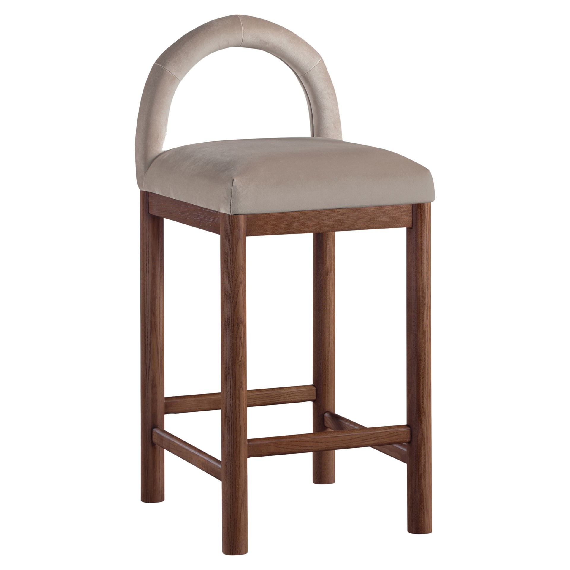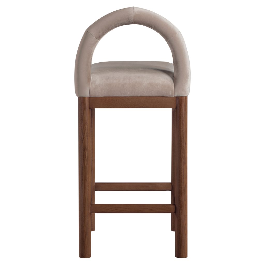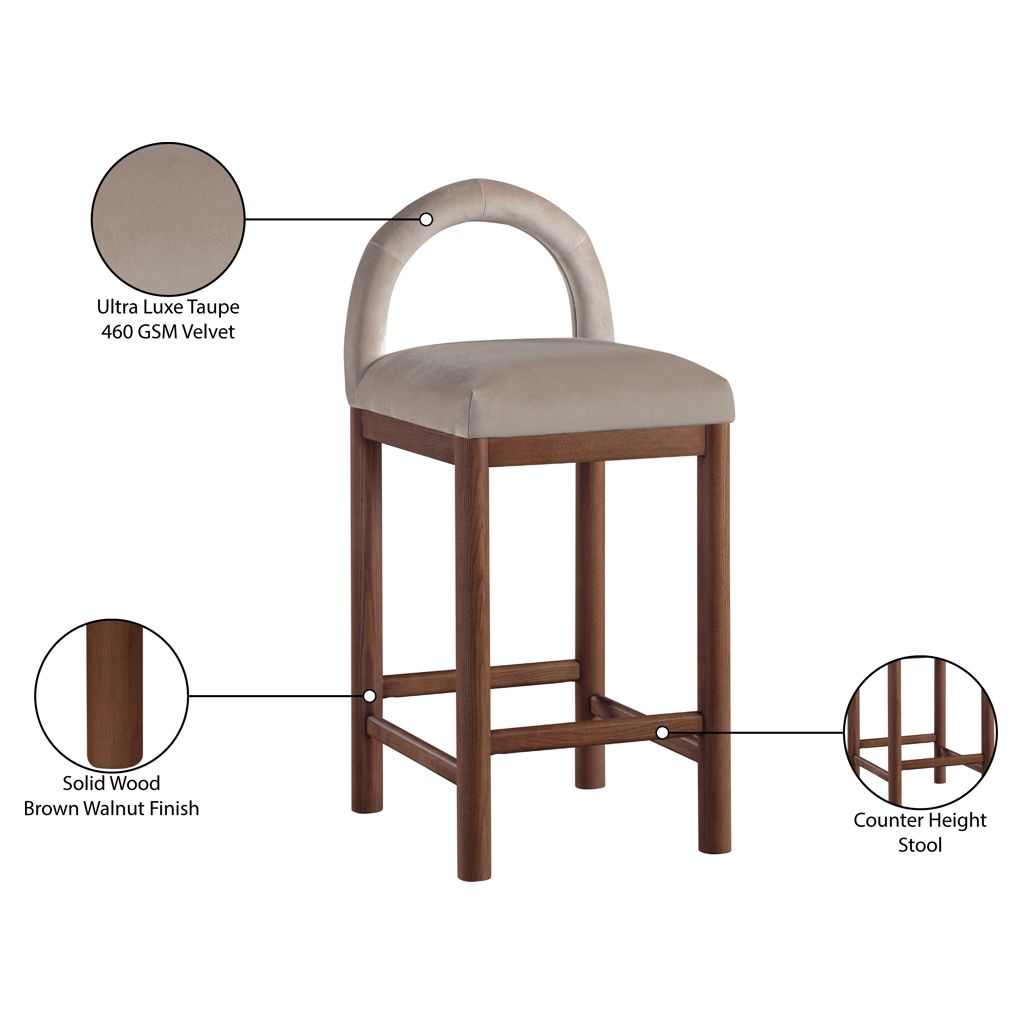 Indulge in the allure of the velvet Conrad Counter Stool by Meridian Furniture. Its captivating design and luxurious taupe velvet finish elevate any space with effortless elegance.