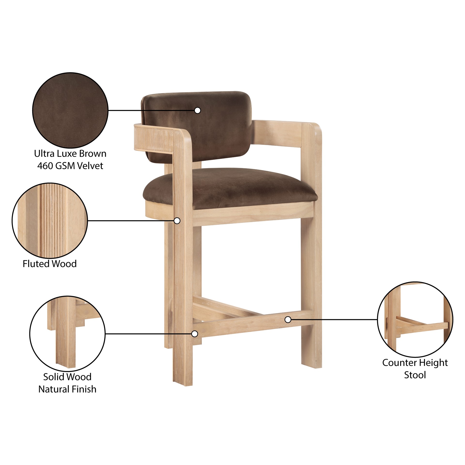 Sacha Counter Stool Meridian Furniture 11077BROWN-C