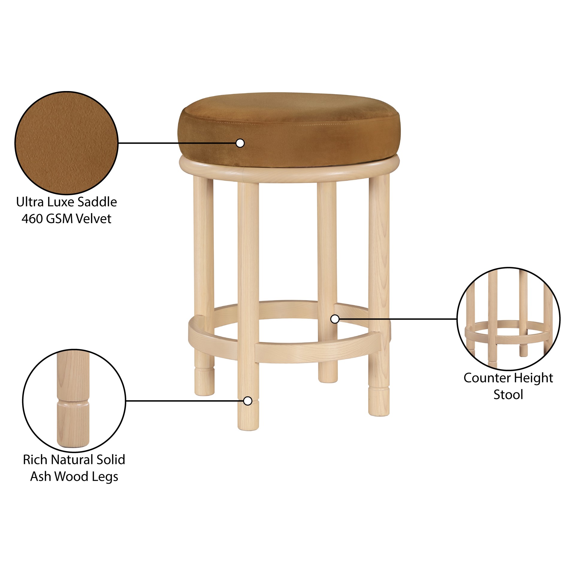 Monette Counter Stool Meridian Furniture 976SADDLE-C