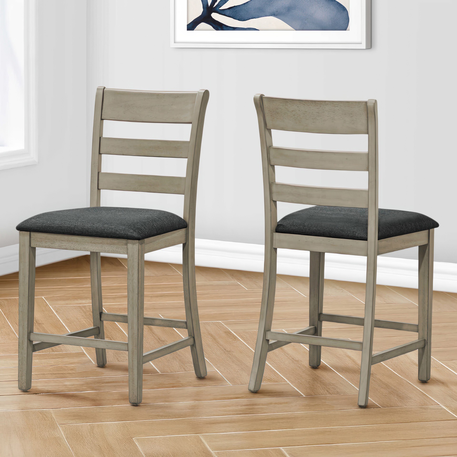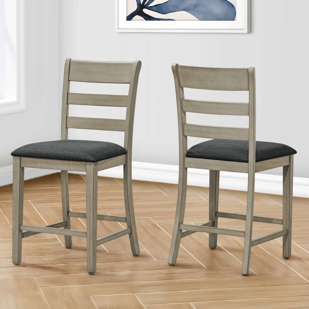 Upgrade your dining experience with this set of 2 trendy dining chairs in antique grey. Standing at a stylish 42" height, these counter height chairs are perfect for casual family dining in your kitchen or dining room.