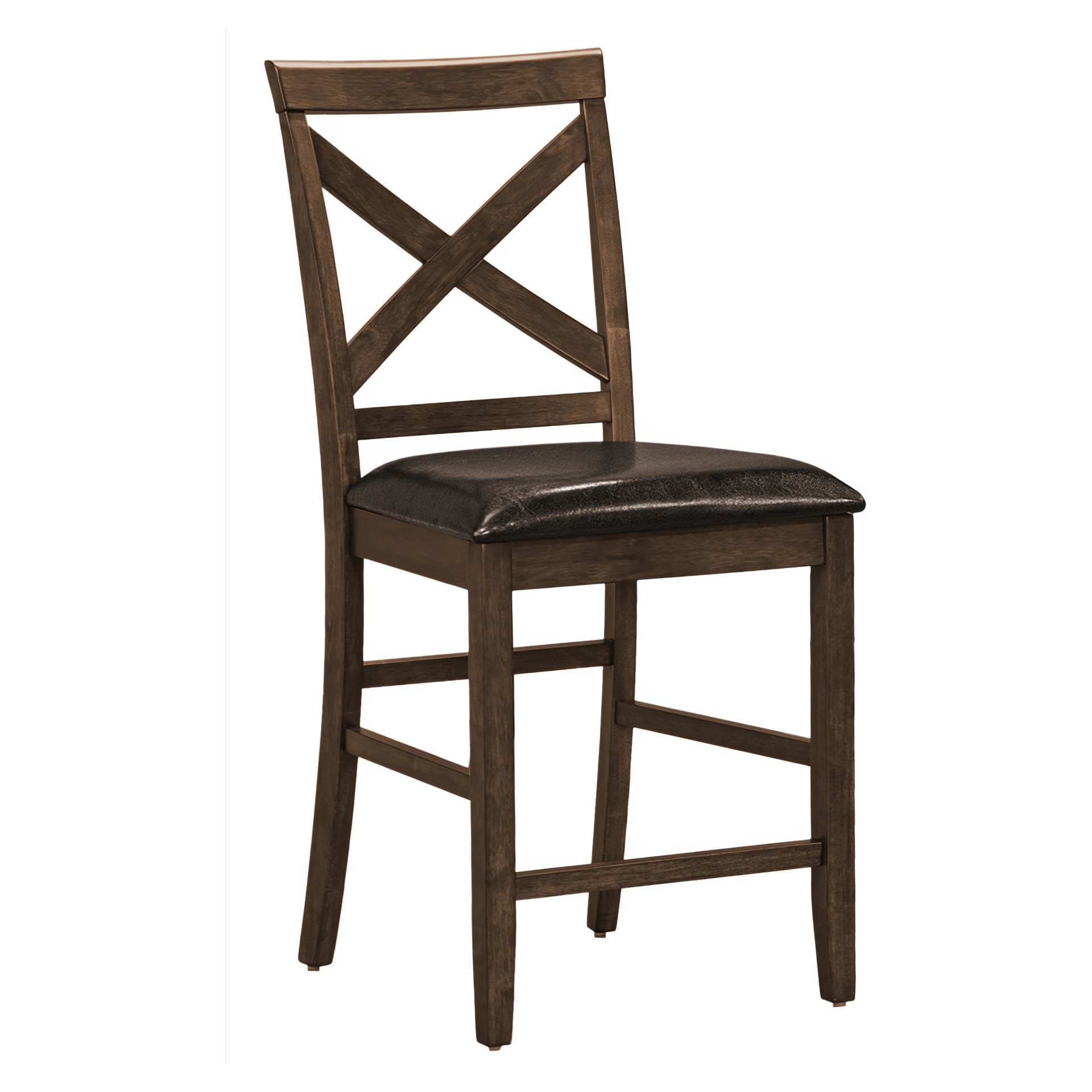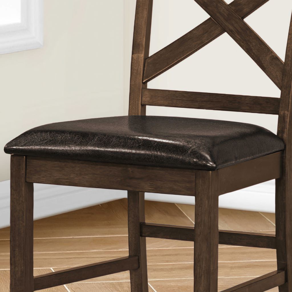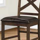 The foam cushioning and padded, brown leather look upholstered seat provides both durability and comfort. The cross back design and footrest add to the firm support of these durable side chairs, great for casual family dining.