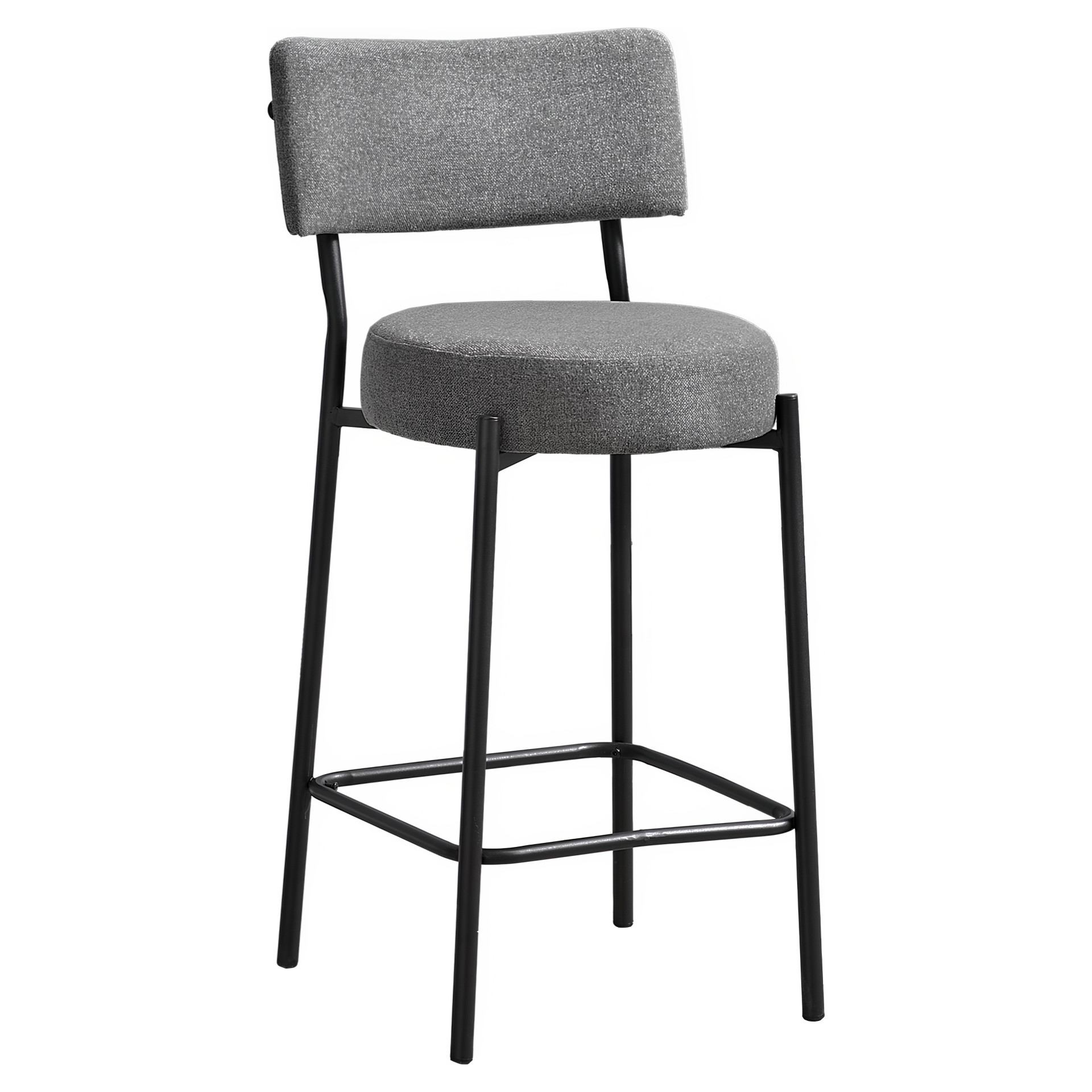 Add some contemporary flare to your kitchen with this trendy set of 2 counter height barstool chairs. Upholstered in durable grey fabric with a slim solid frame of sturdy black metal legs, these fashionable style barstools are the perfect addition to your modern home decor.