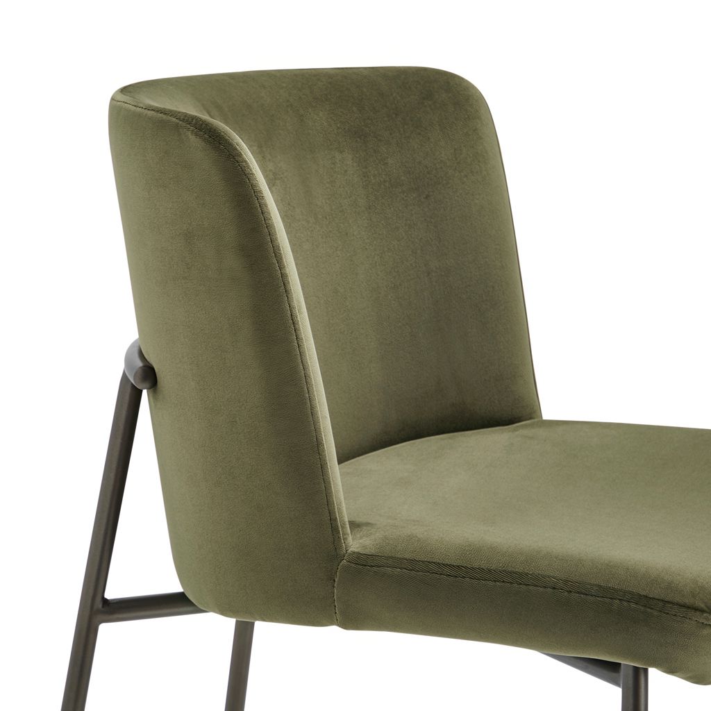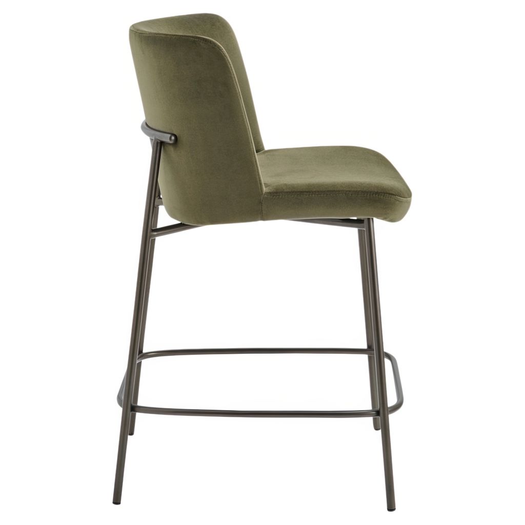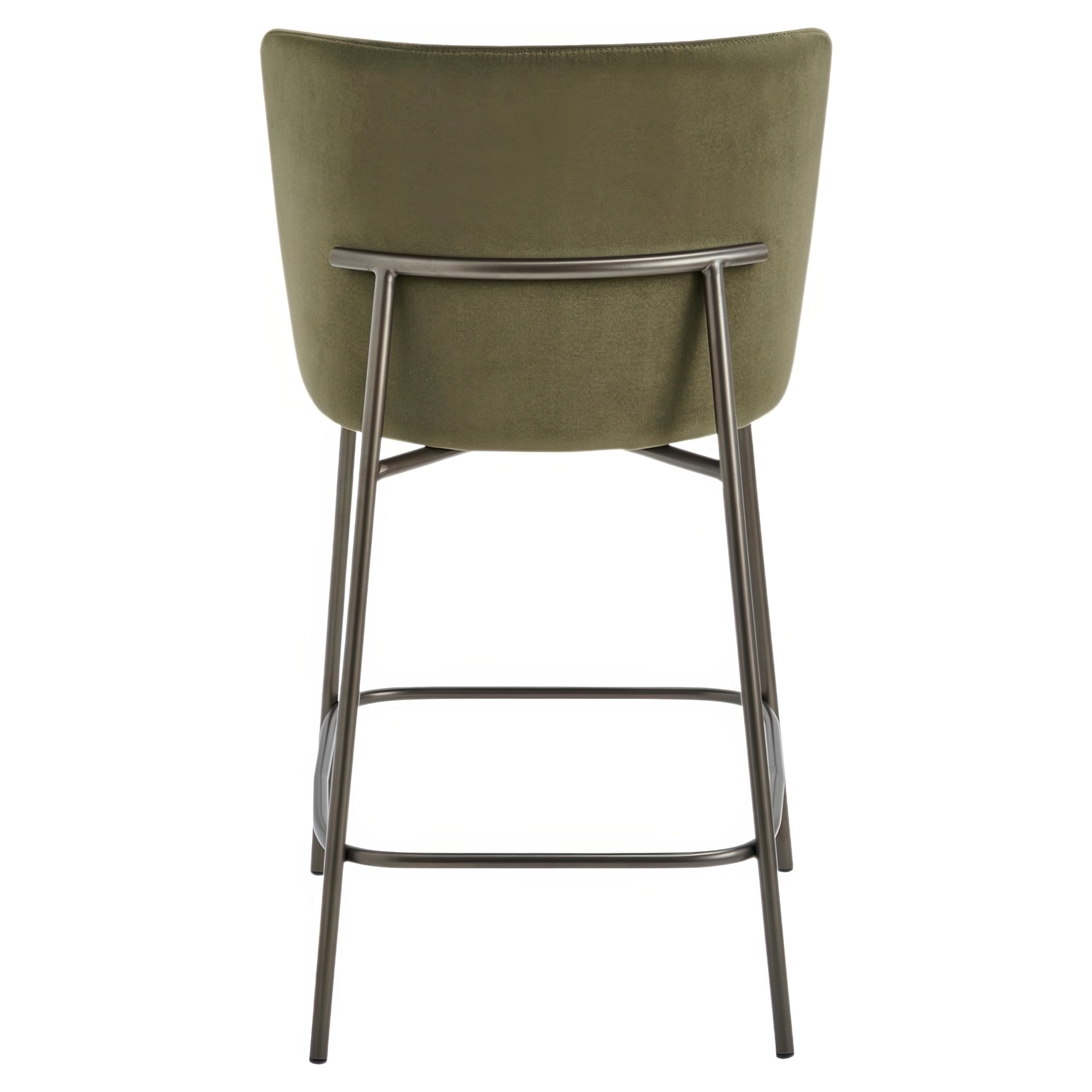 The Early counter stool is an elegant fusion of minimalist design and comfort that features a slim metal frame in a blackened bronze finish.