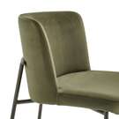 Its seat and comfortably curved back are upholstered in durable faux mohair that resembles velvet's soft allure but is easier to maintain.