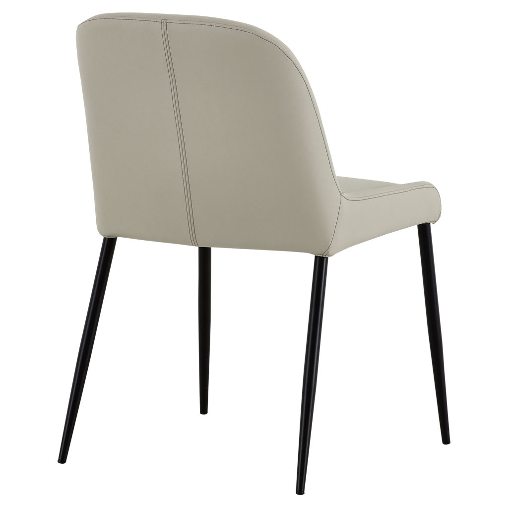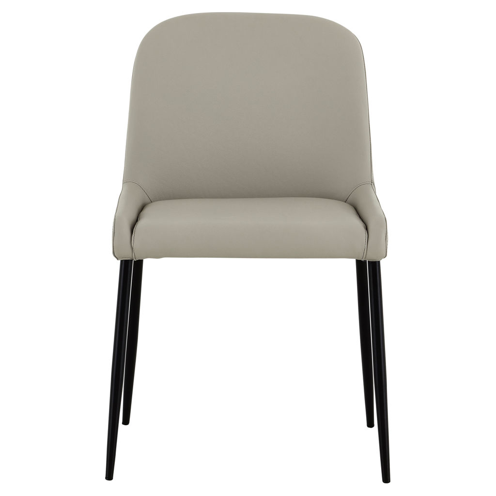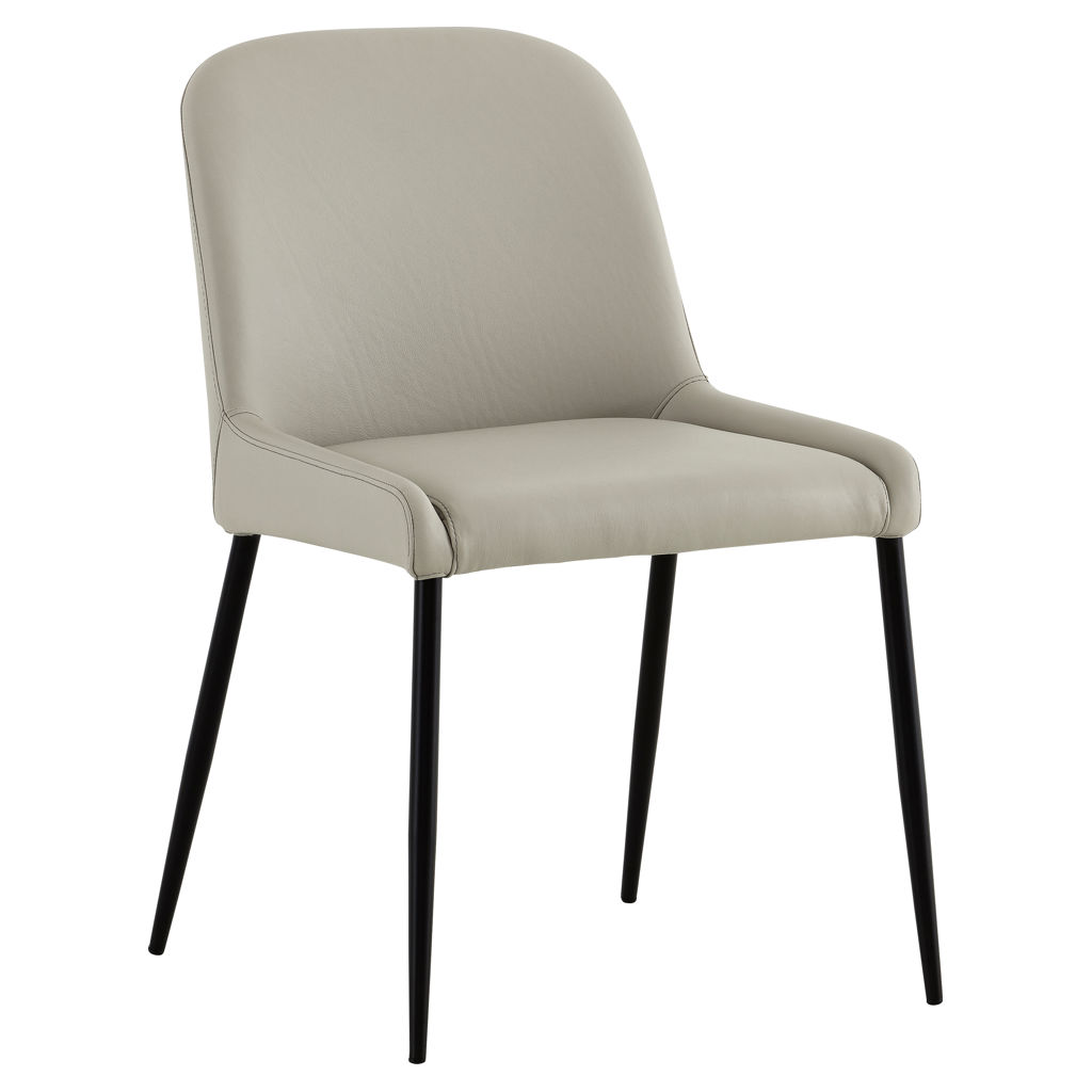Discover the Julia chair, where comfort meets contemporary style. Its sophisticated beige genuine leather pairs beautifully with clean lines and slender black legs.