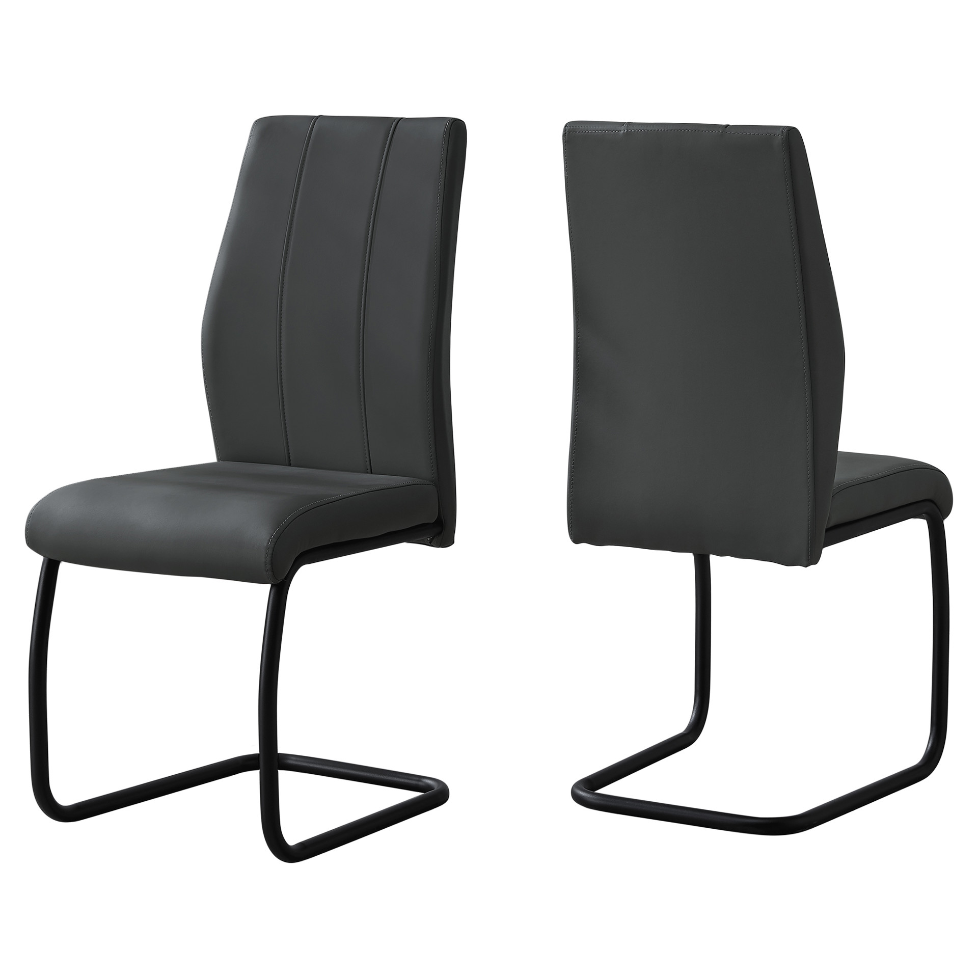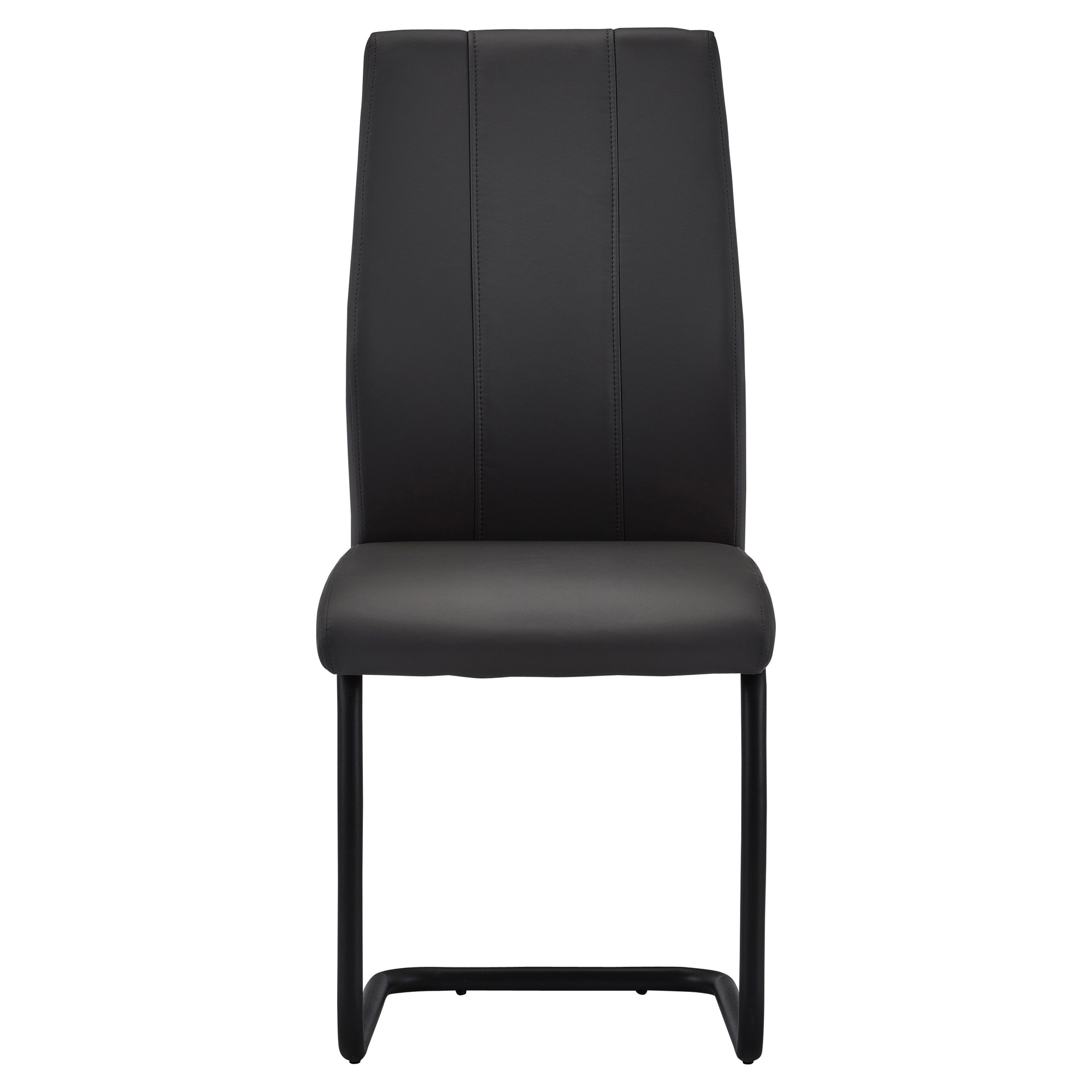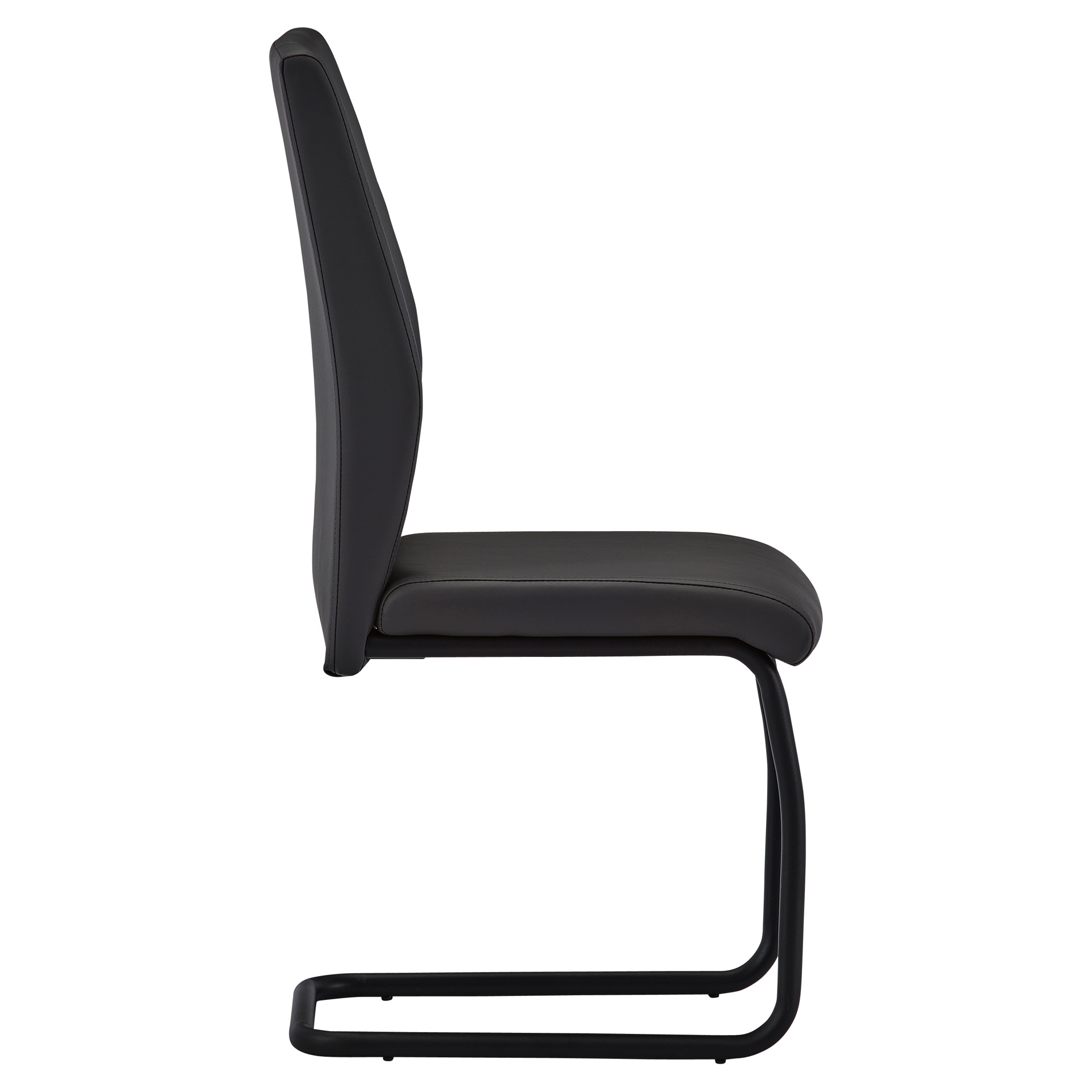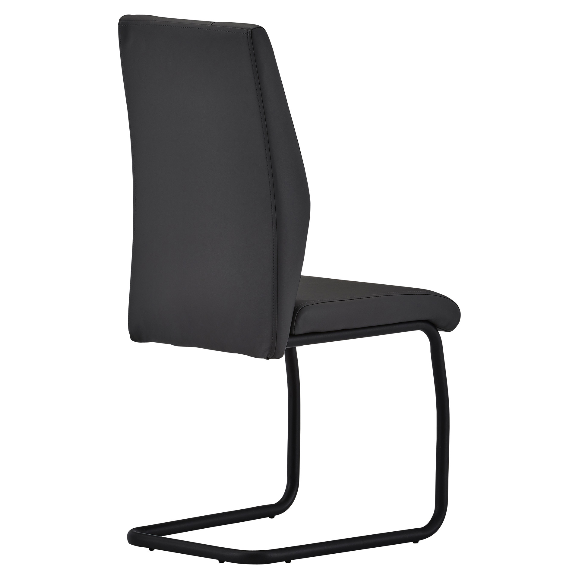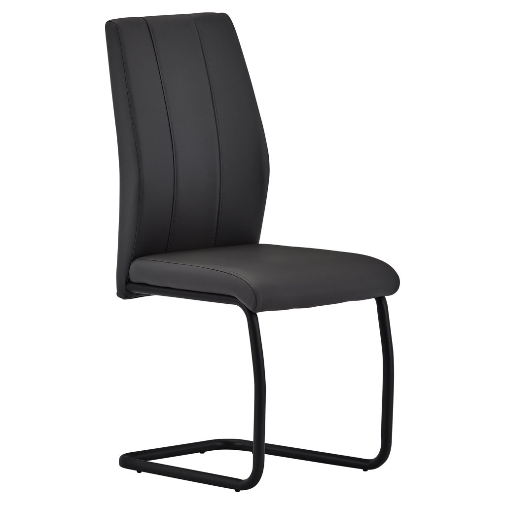 The black metal cantilever frame provides subtle flexibility for enhanced comfort, while the sculpted backrest with vertical stitching adds a bold, modern flair. With its generous seat and ergonomic support, this chair ensures long-lasting comfort for all your gatherings.