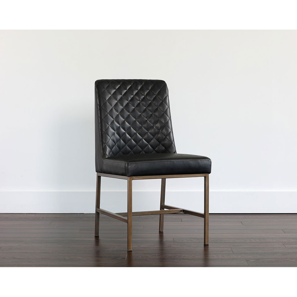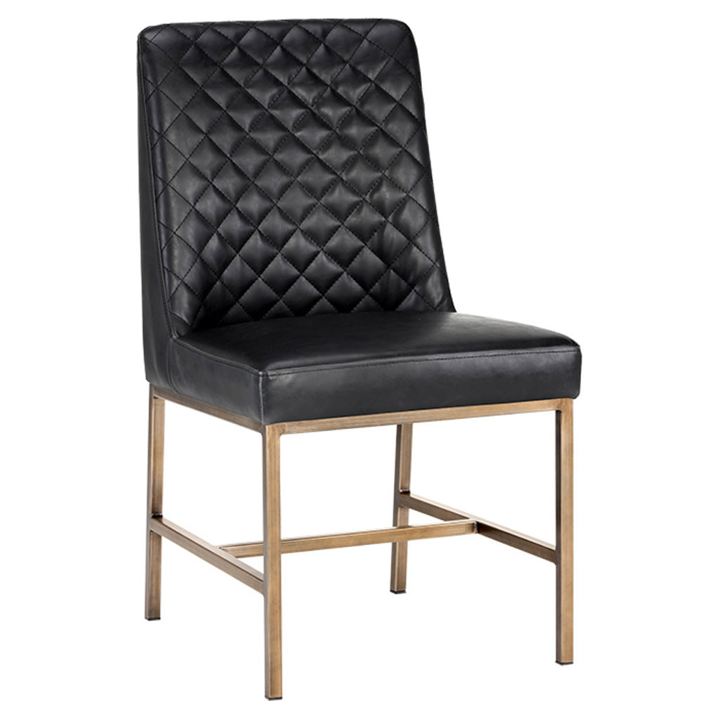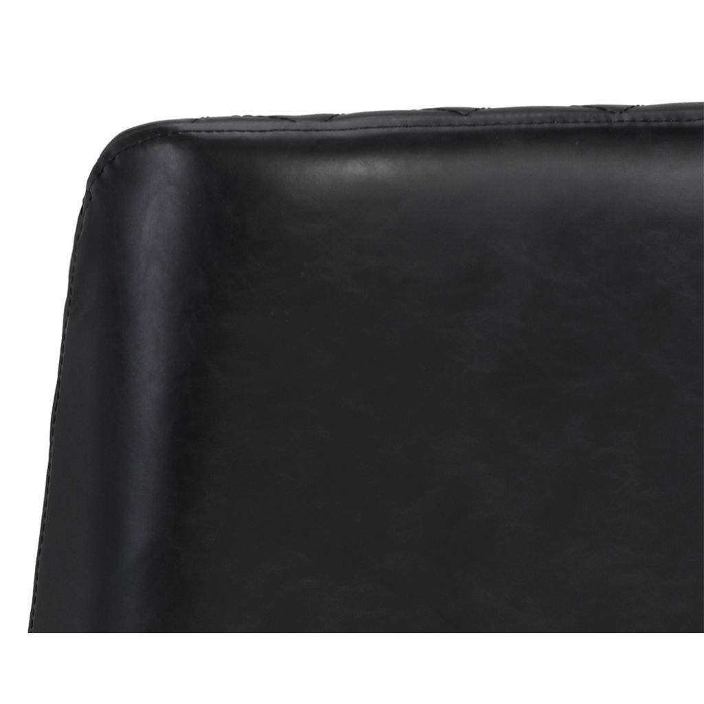 The Leighland chair embodies modern elegance with its refined, contemporary design. Its black faux leather upholstery adds a sophisticated touch to your space, while the diamond-quilted backrest creates a striking visual effect that instantly draws the eye.