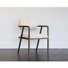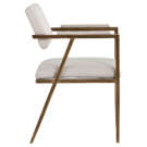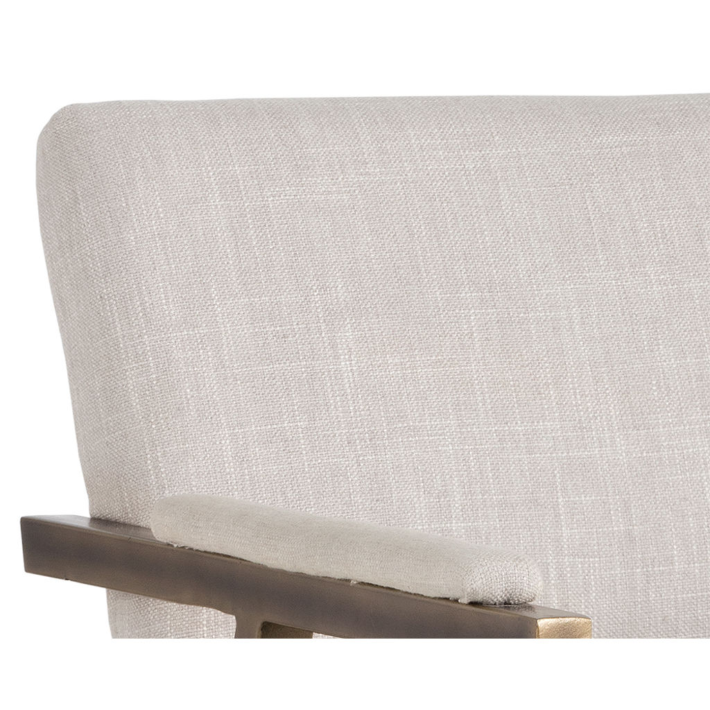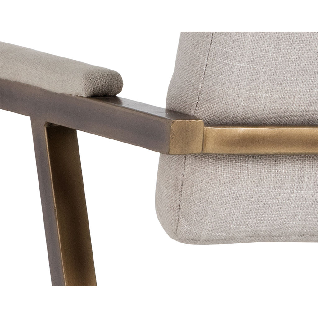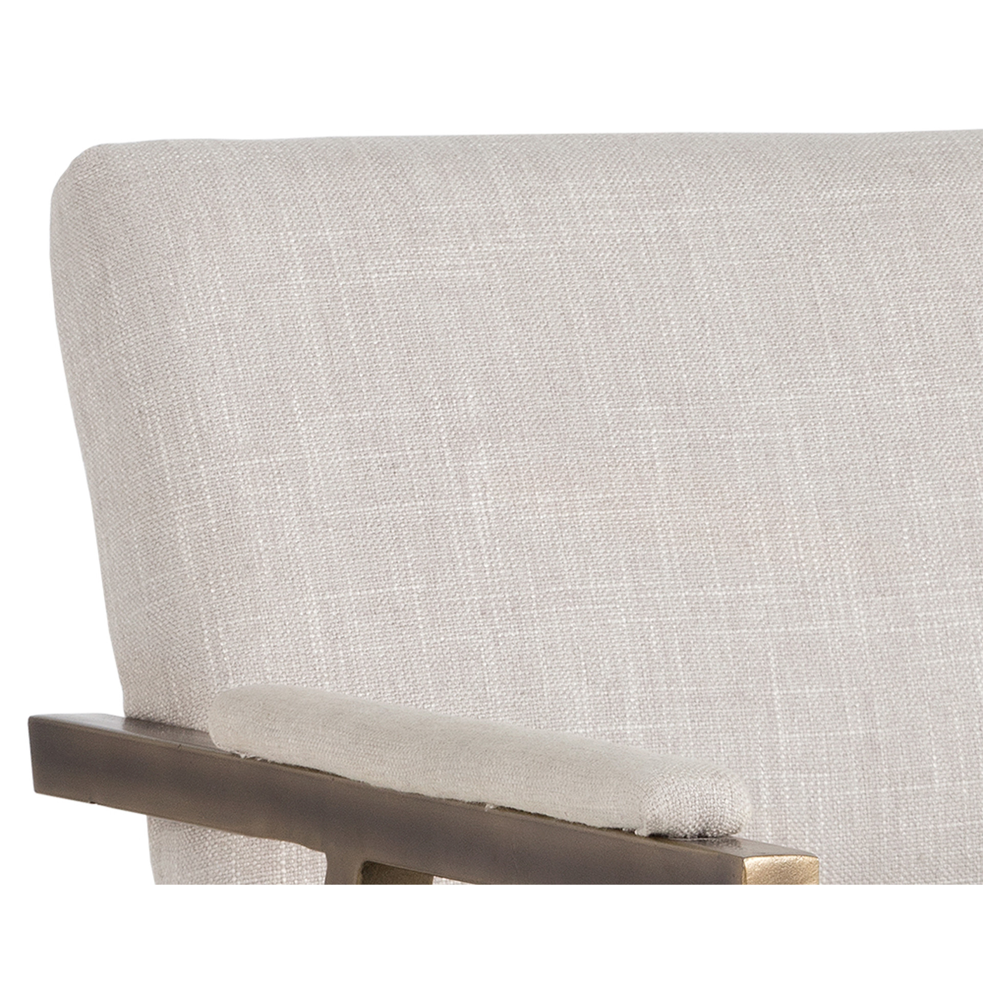 Industrial meets transitional elegance in this armchair from our Irongate collection. Reminiscent of mid-century modern styling with a rustic bronze steel frame and beige linen or vintage black faux leather on the seat and seat back. Can be used in both dining and living spaces.