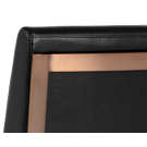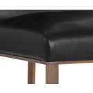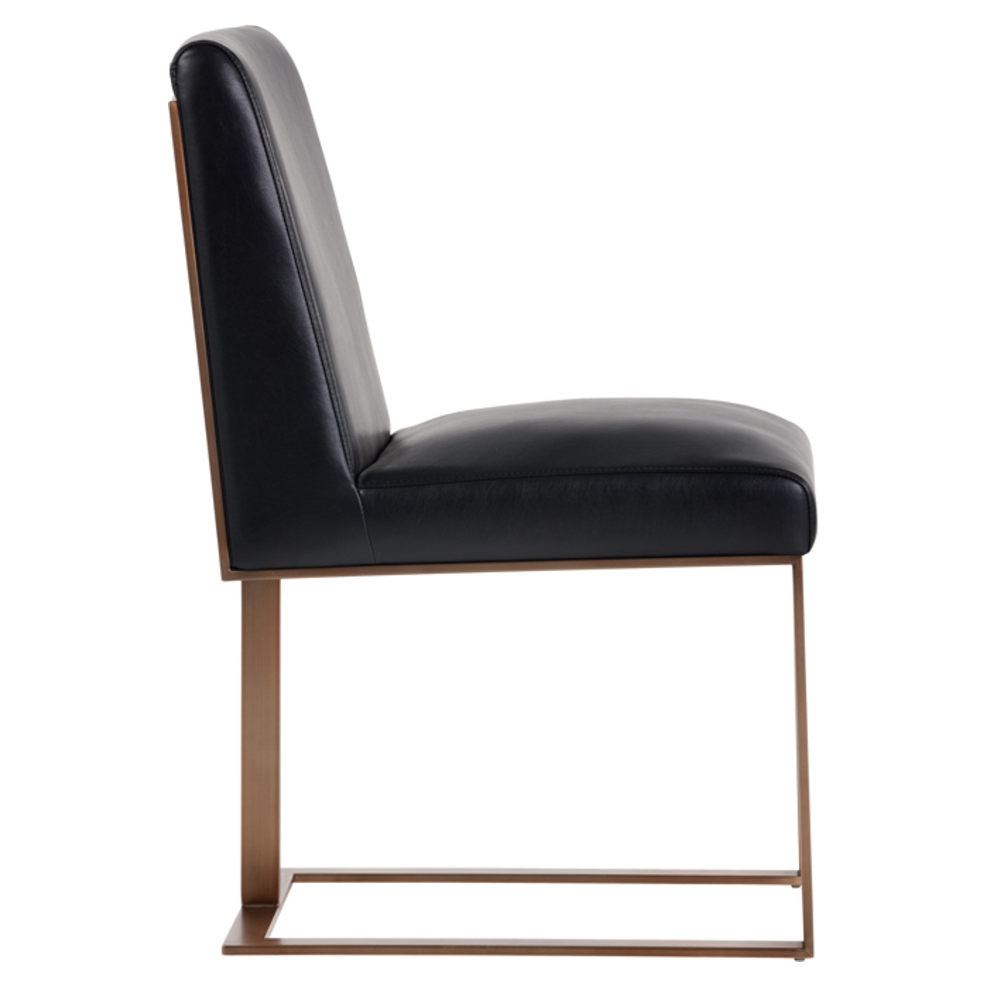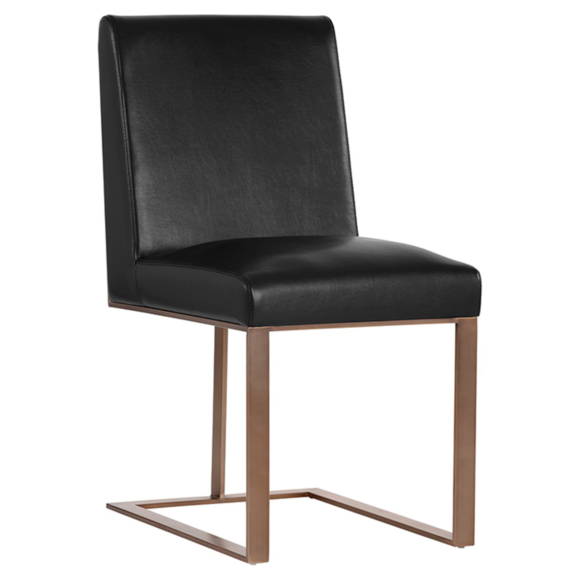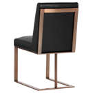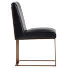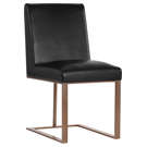 Transform your space with the Dean chair, where refinement meets practicality. Its sleek design beautifully combines deep black faux leather with a copper-finished metal frame, creating a striking contrast that complements any interior style.