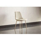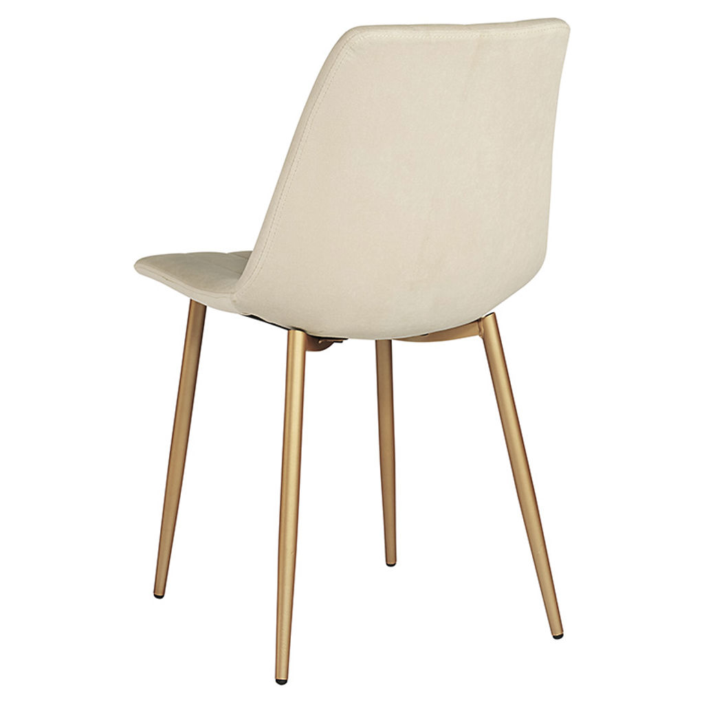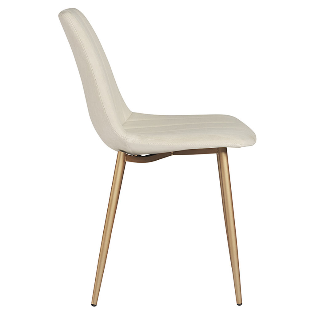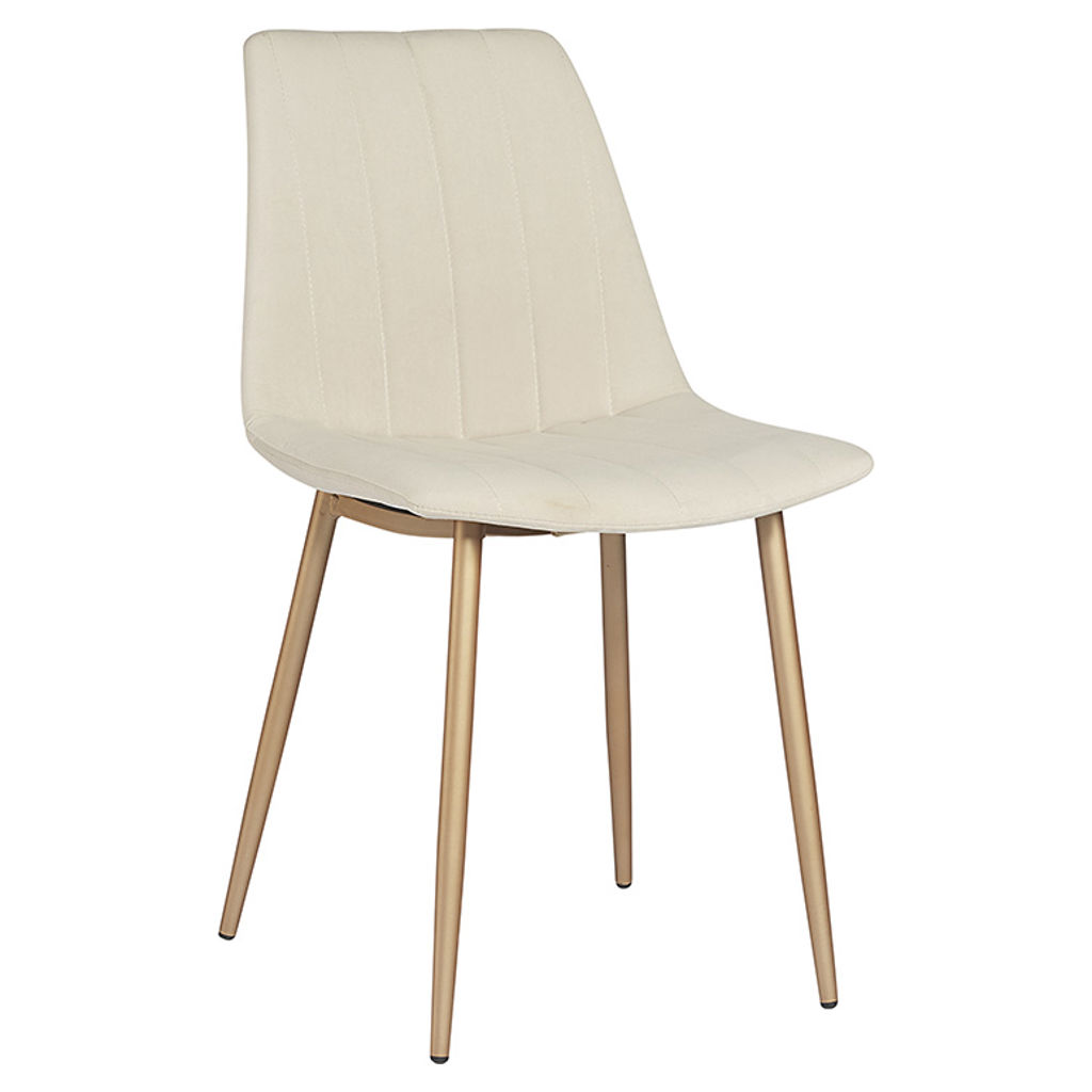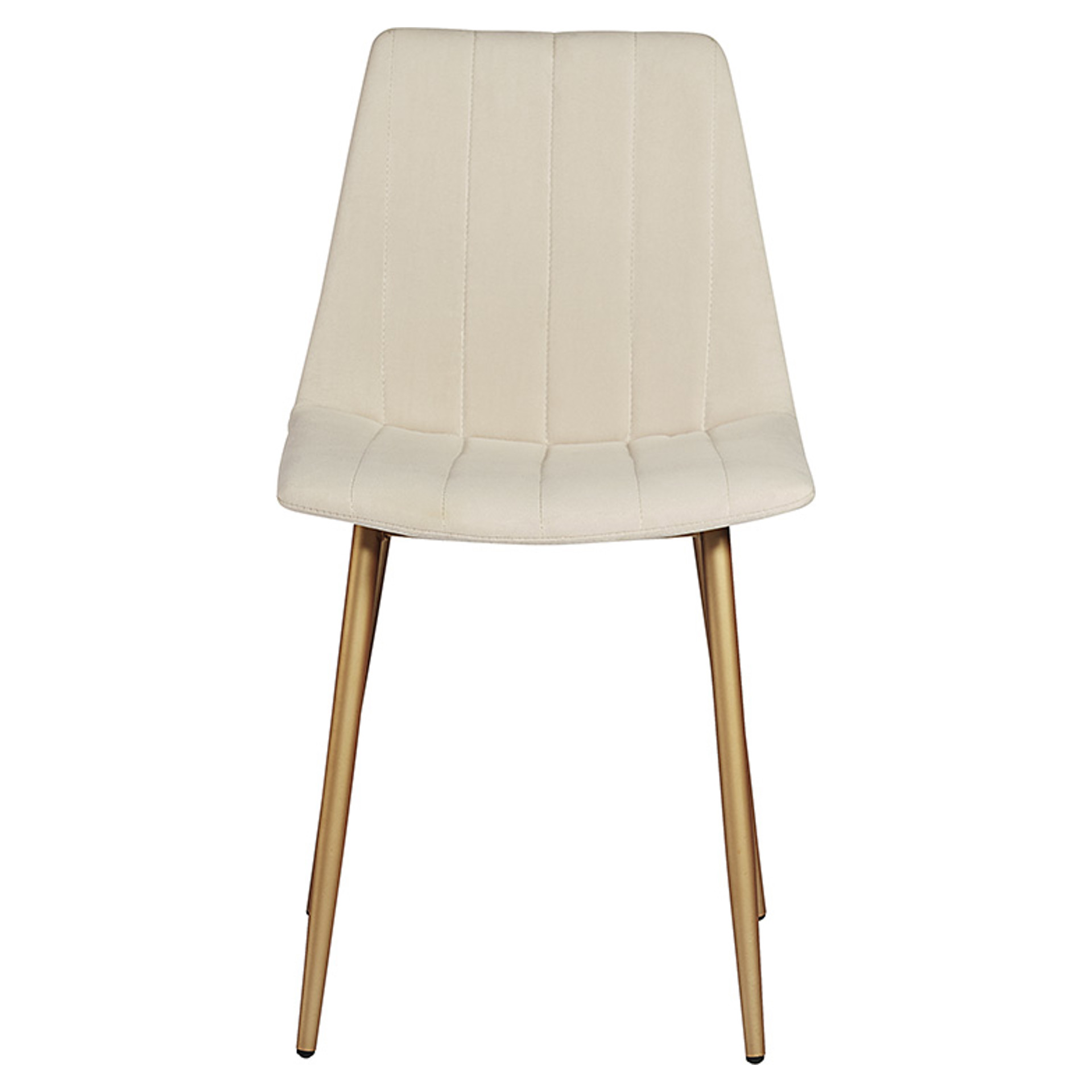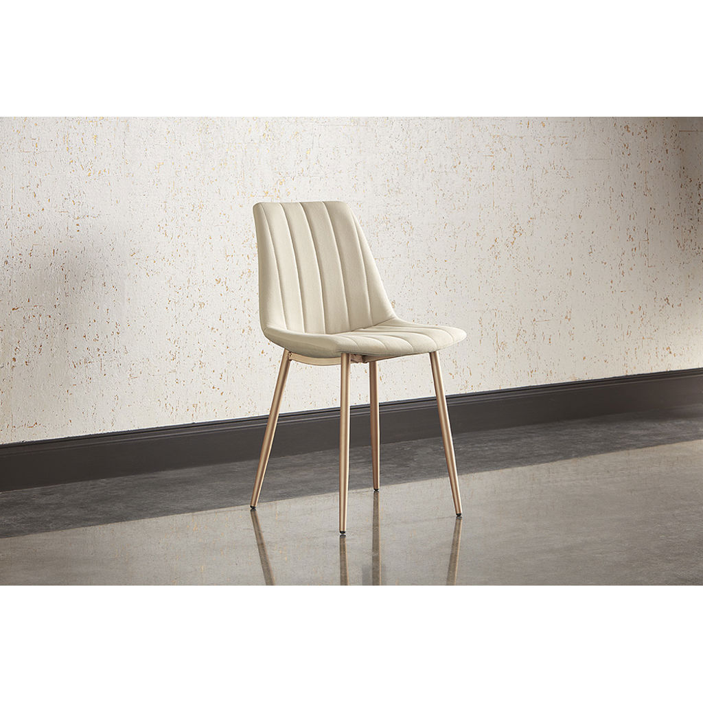 This compact dining chair from our Urban Unity collection creates a cool, casual vibe. Features channel upholstery on the seat and back. Designed in Antonio linen fabric with a champagne-gold brushed steel frame.