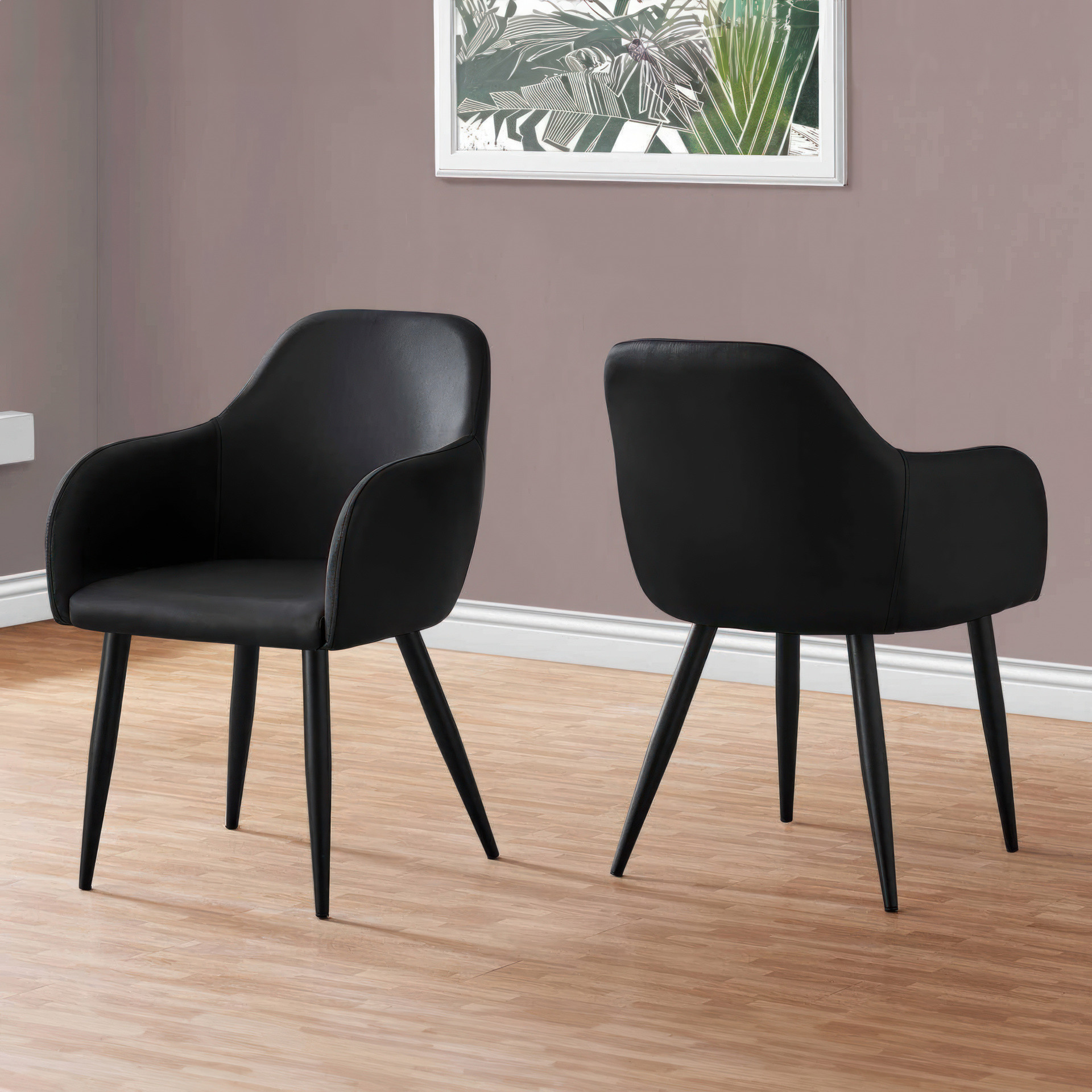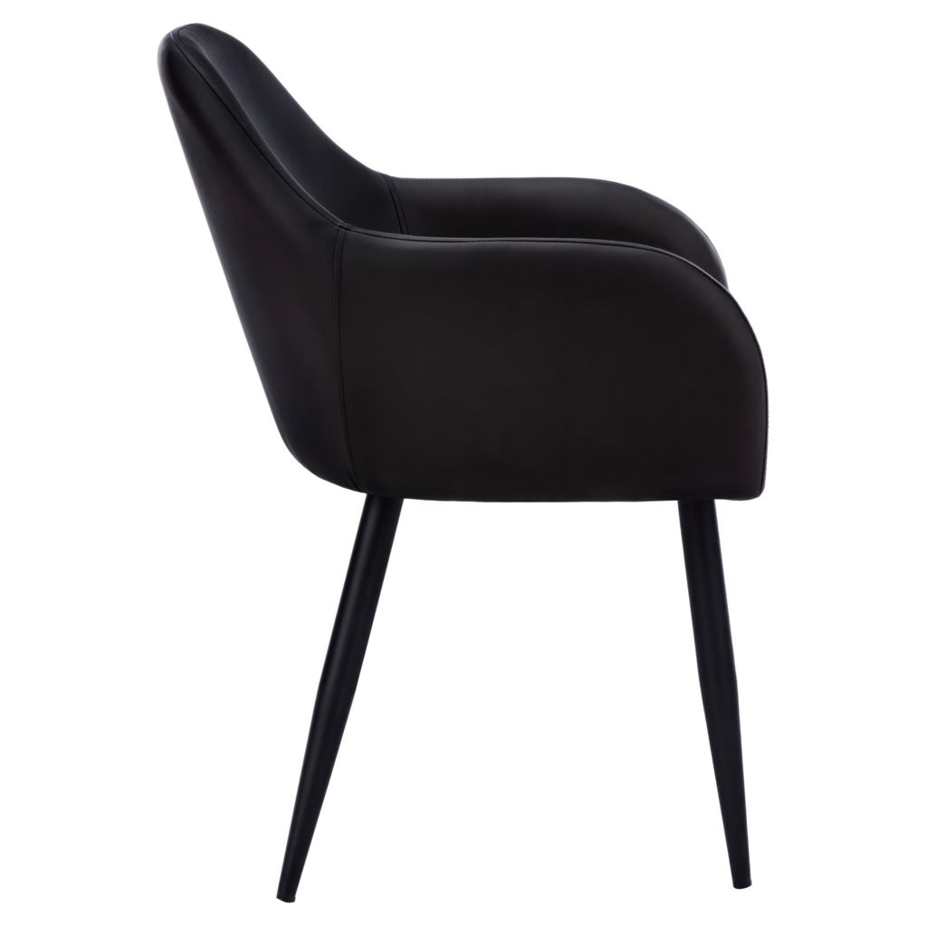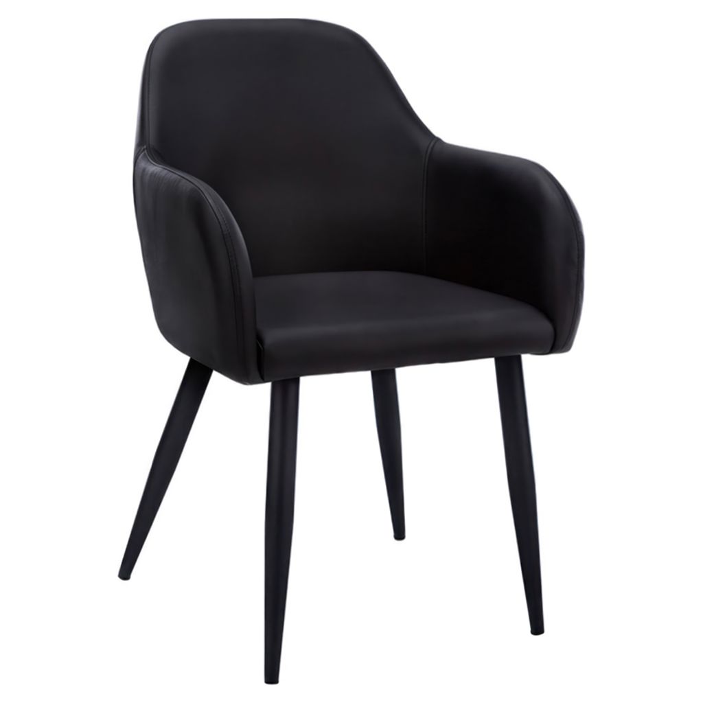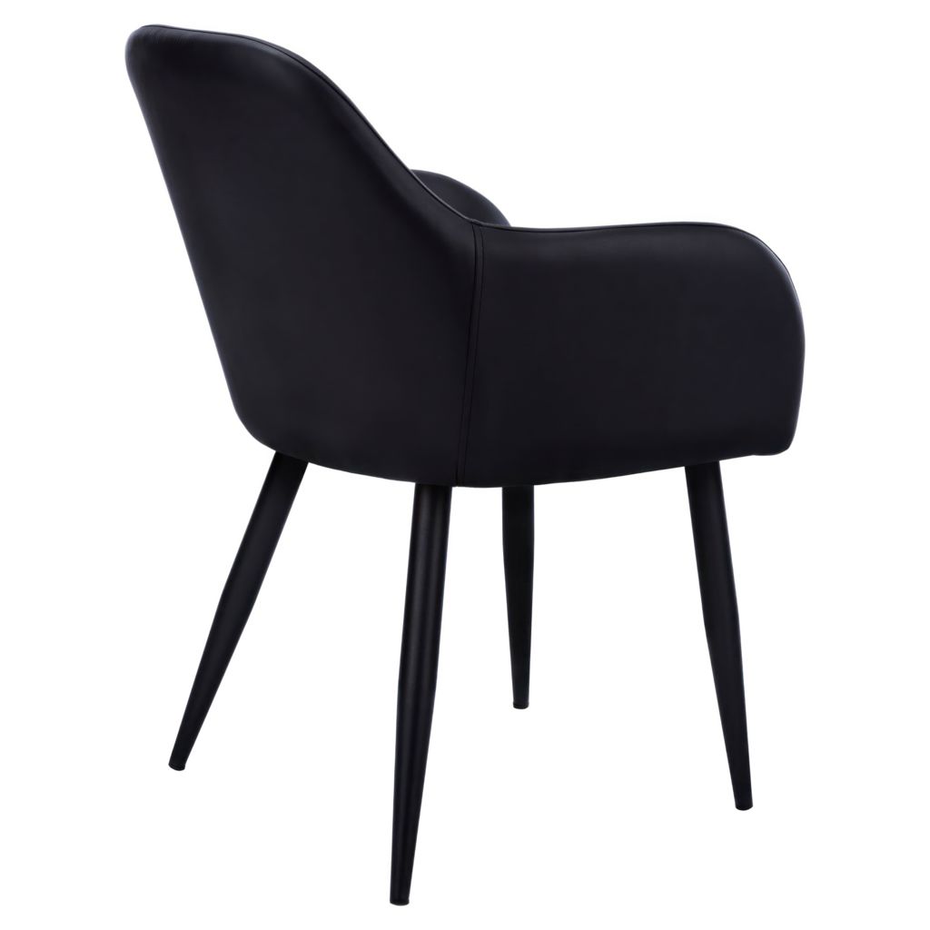 This modern black faux leather chair combines elegance and practicality to transform your space. Its sleek design with rounded lines fits seamlessly into any interior, whether contemporary or classic.