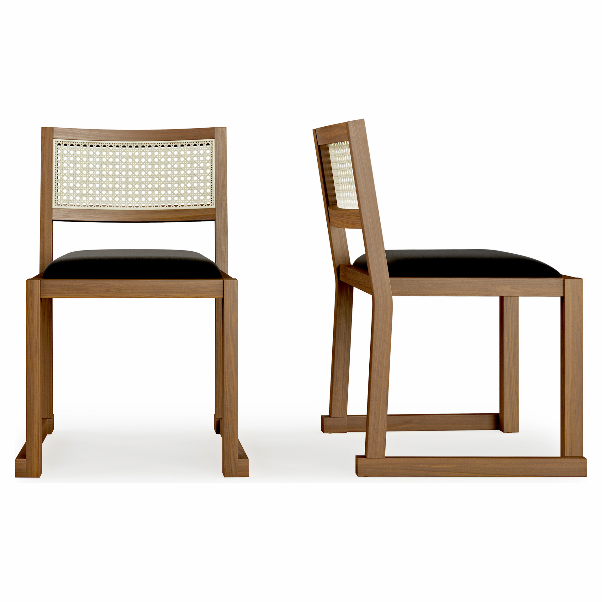 Give new meaning to the distinction of "best seat in the house" with the clean lines and tailored attitude of the Eglinton dining chair. Traditional caning techniques highlight the back, while a solid wood frame adds modern, sturdy appeal to the rest of the form. Durable leatherette upholstery on the seats adds just the right amount of masculinity, resulting in a striking design that skillfully walks the line between understated and striking.