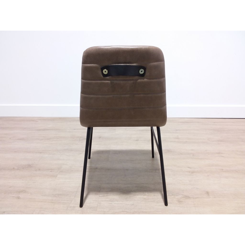 This version features a one-piece upholstered seat and back with unique chain stitch detailing. The black powder-coated steel legs are reinforced with sturdy flat bar stabilizers and a simple ergonomic footrest.