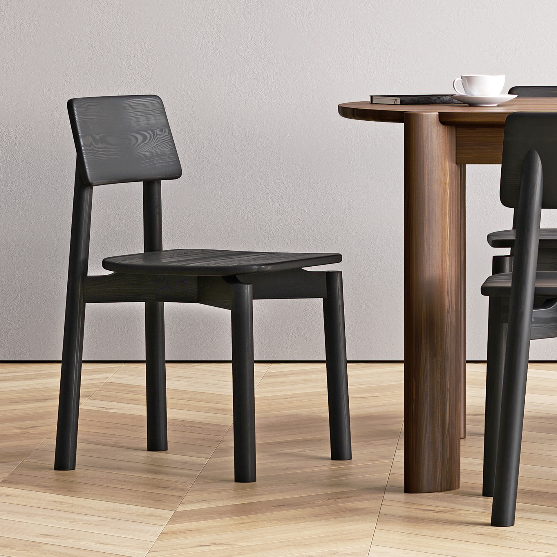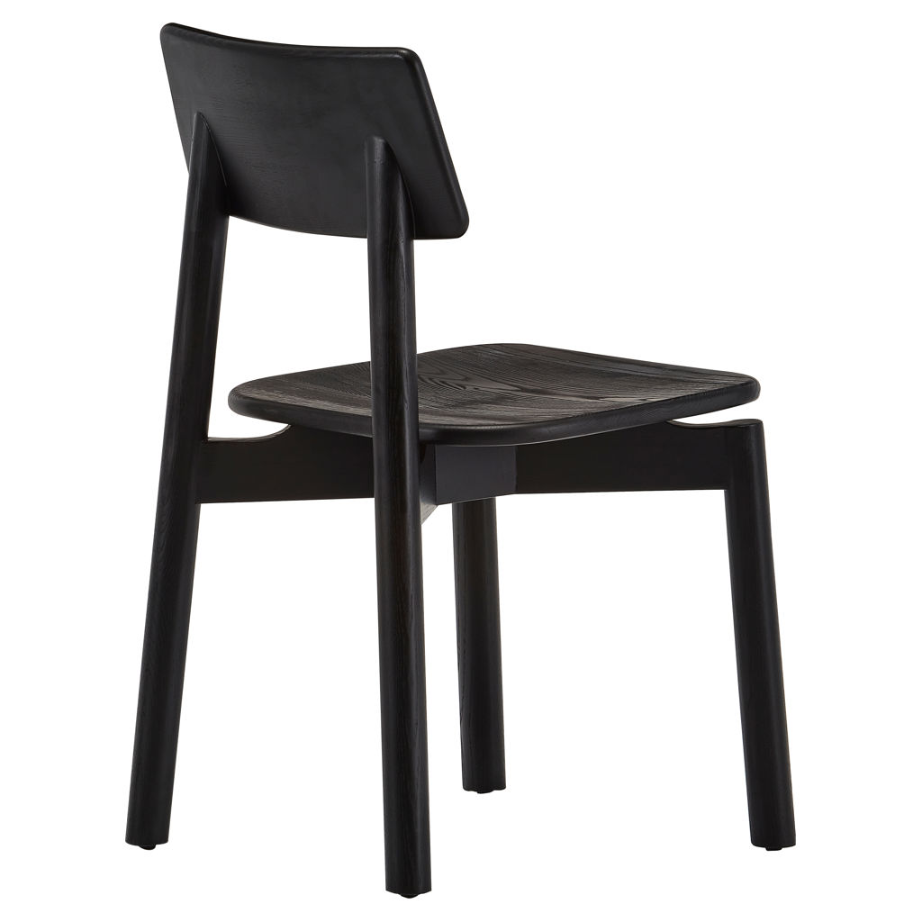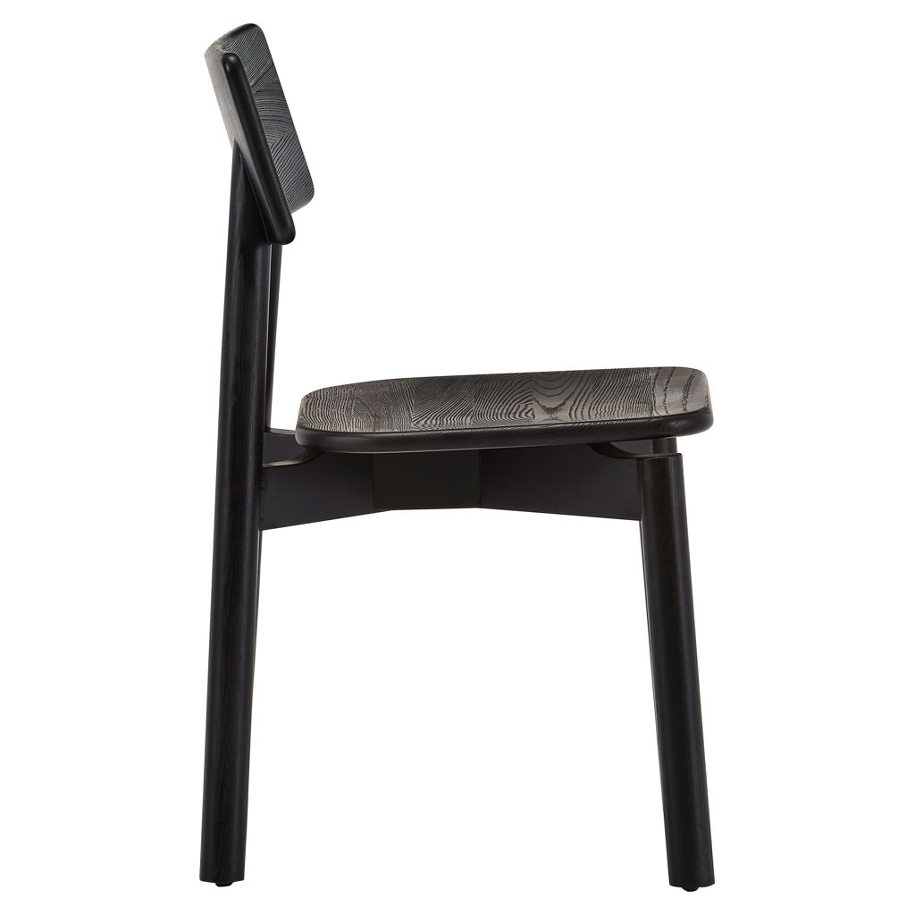 Unpretentious yet brilliant in its simplicity, the Ridley dining chair is the perfect example of how useful details can make an impact on design. A slight curve to the chair's back offers gentle support during quiet evening meals, while an architectural cross base gives the illusion of a floating seat. Muted edges soften the chair's angular appeal, and wire brushing brings the intricate graining of the wood to life under the stain. Expect your guests to admire this sculptural dining chair from every angle.