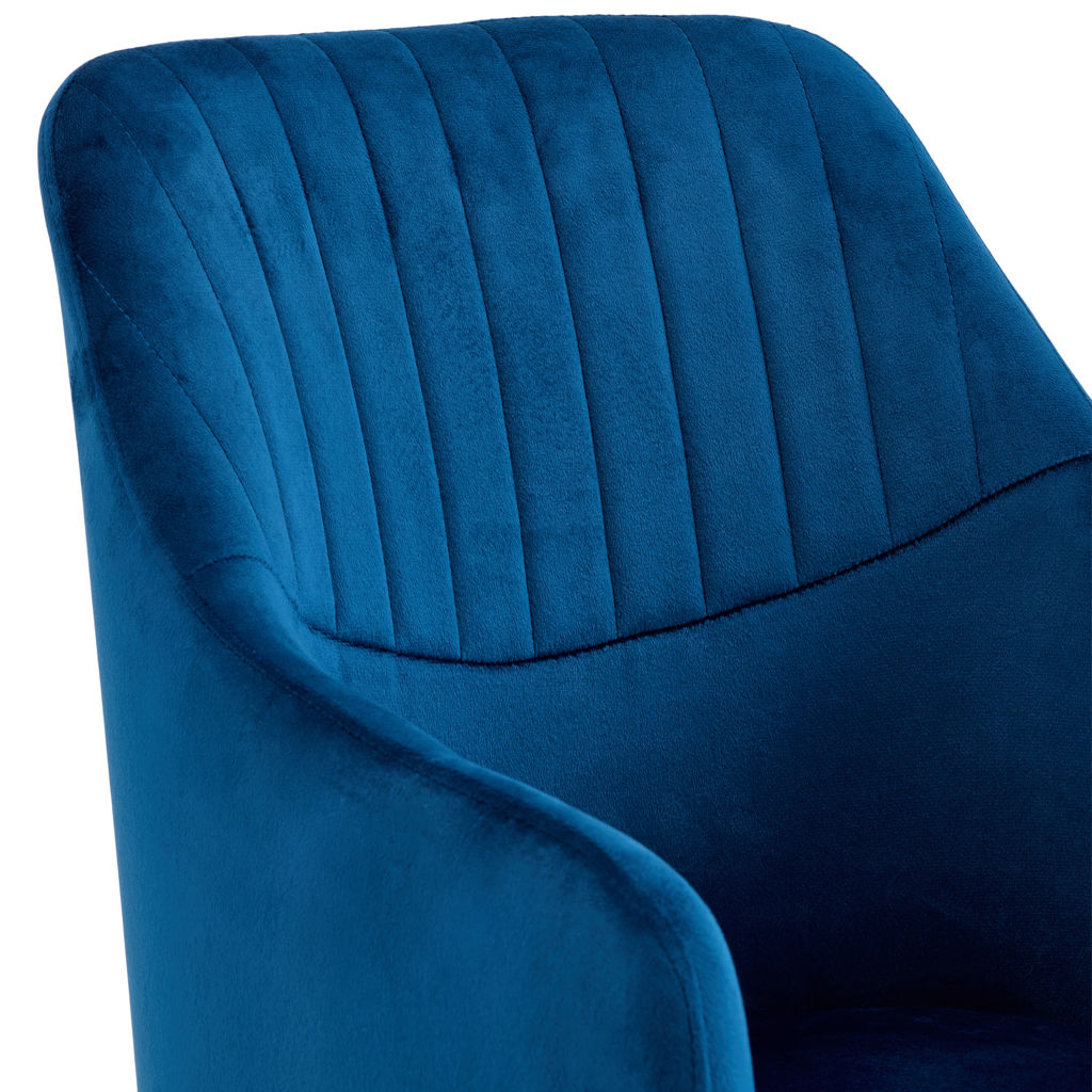 This deep blue velvet chair will instantly elevate your dining space into a place of distinction. The channeled backrest adds a refined touch, while the generously padded seat ensures optimal comfort during long meals with family or friends.