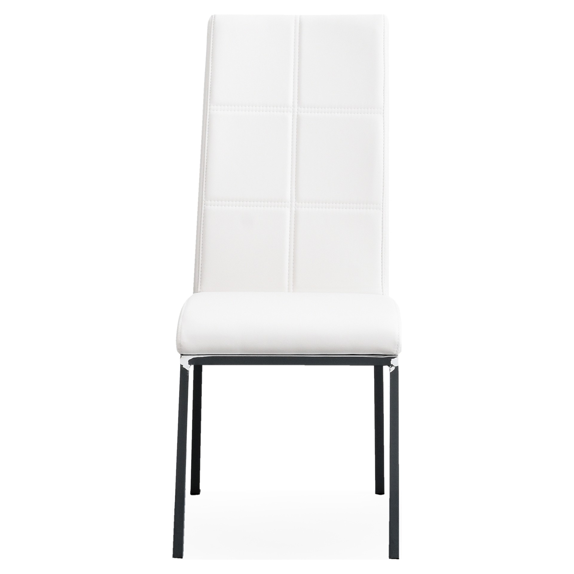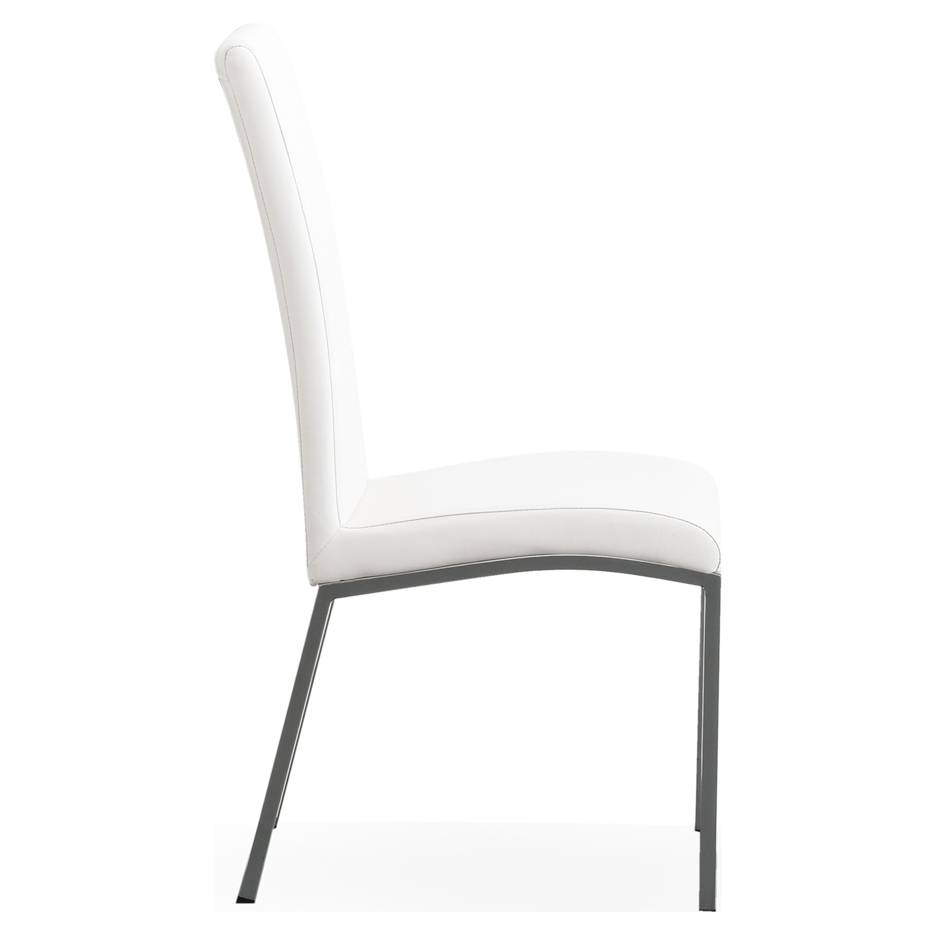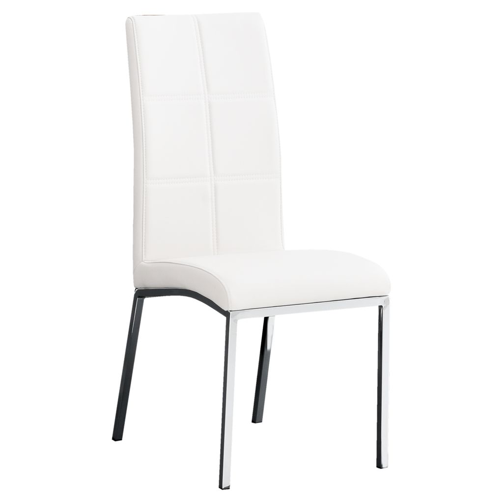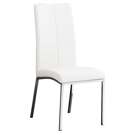 This chair combines timeless elegance with modern practicality, featuring pristine white faux leather upholstery and a contrasting chrome base. The high backrest and clean lines bring contemporary sophistication to your dining space, while the faux leather ensures easy everyday maintenance.