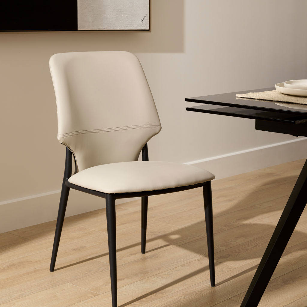 Discover the GBT111 chair, the perfect blend of contemporary style and everyday practicality. Its clean, modern lines integrate seamlessly into any interior, while the ivory faux leather upholstery offers exceptional resistance to stains and wear.