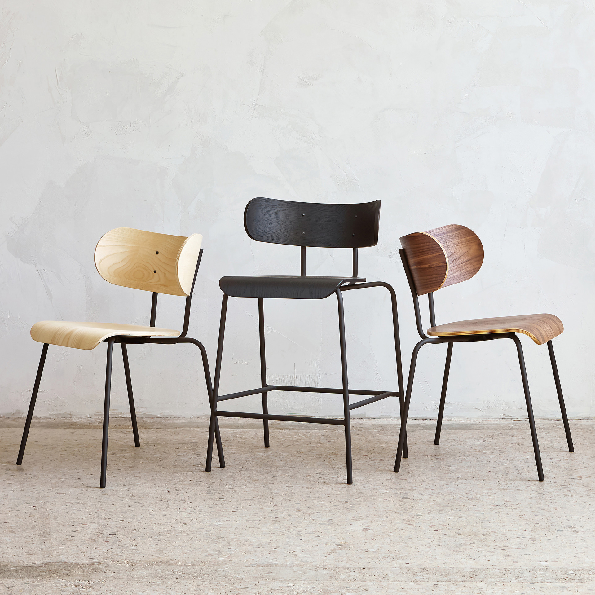 Combining a mid-century design approach with the ease of contemporary living, the Bantam dining chair embodies simple sophistication with a sculptural philosophy that invites you to sit and stay a while. Delicate steel legs support a shaped plywood seat and back that ergonomically support the body with gentle curves for all-day comfort.