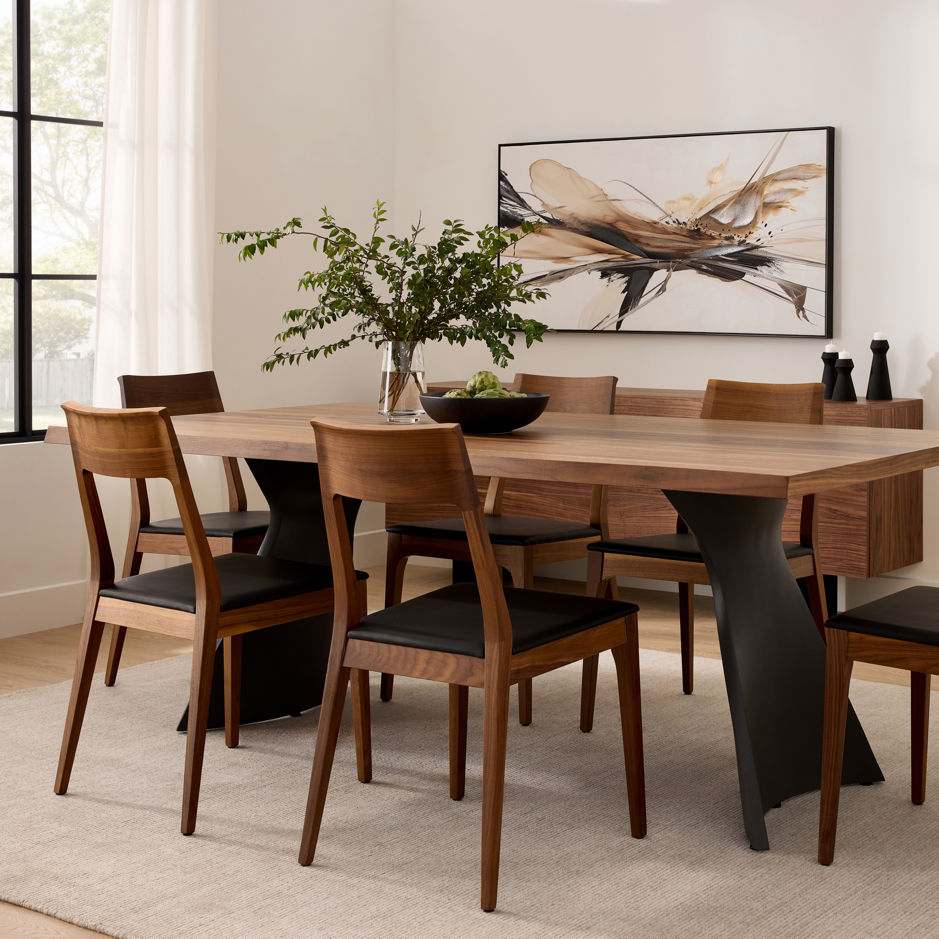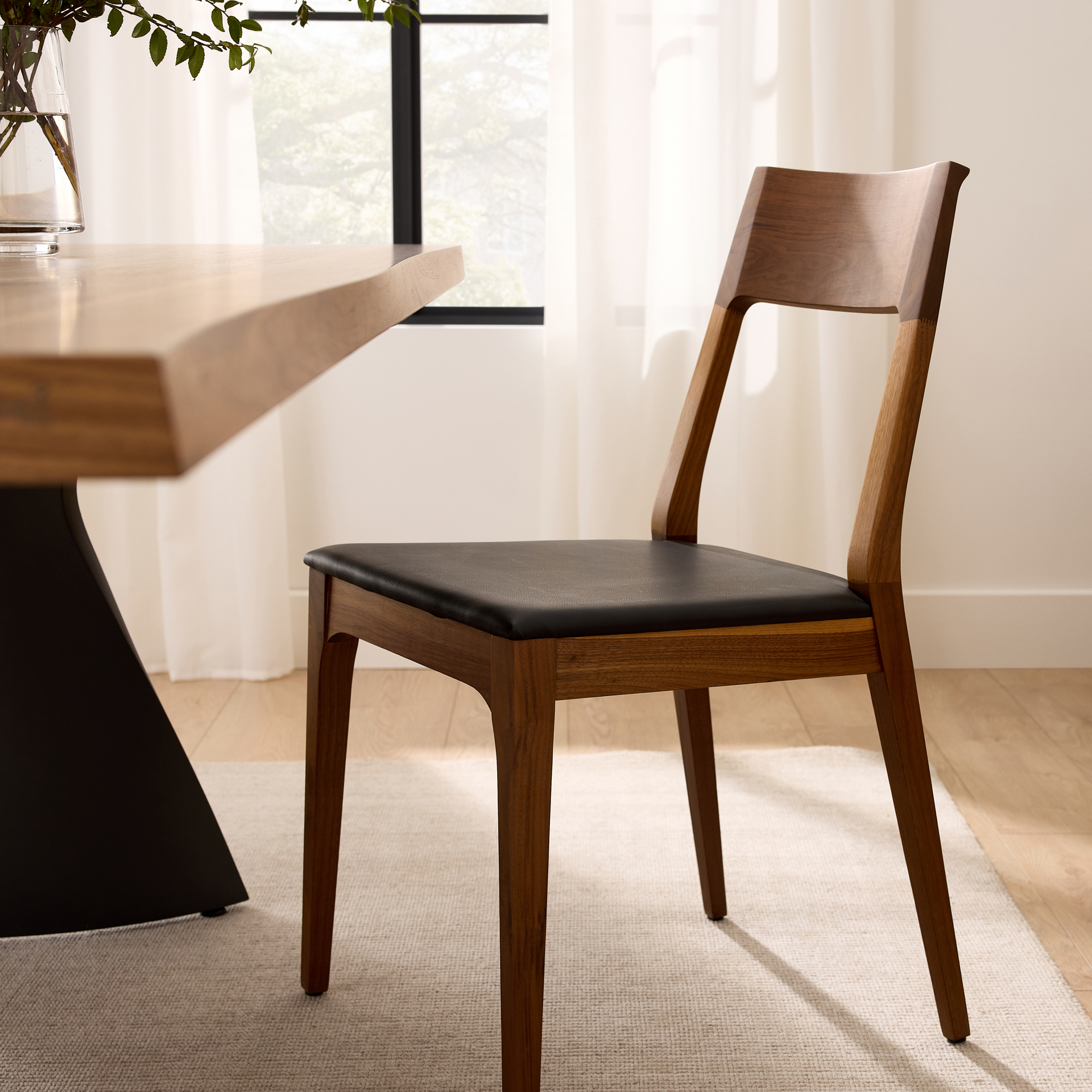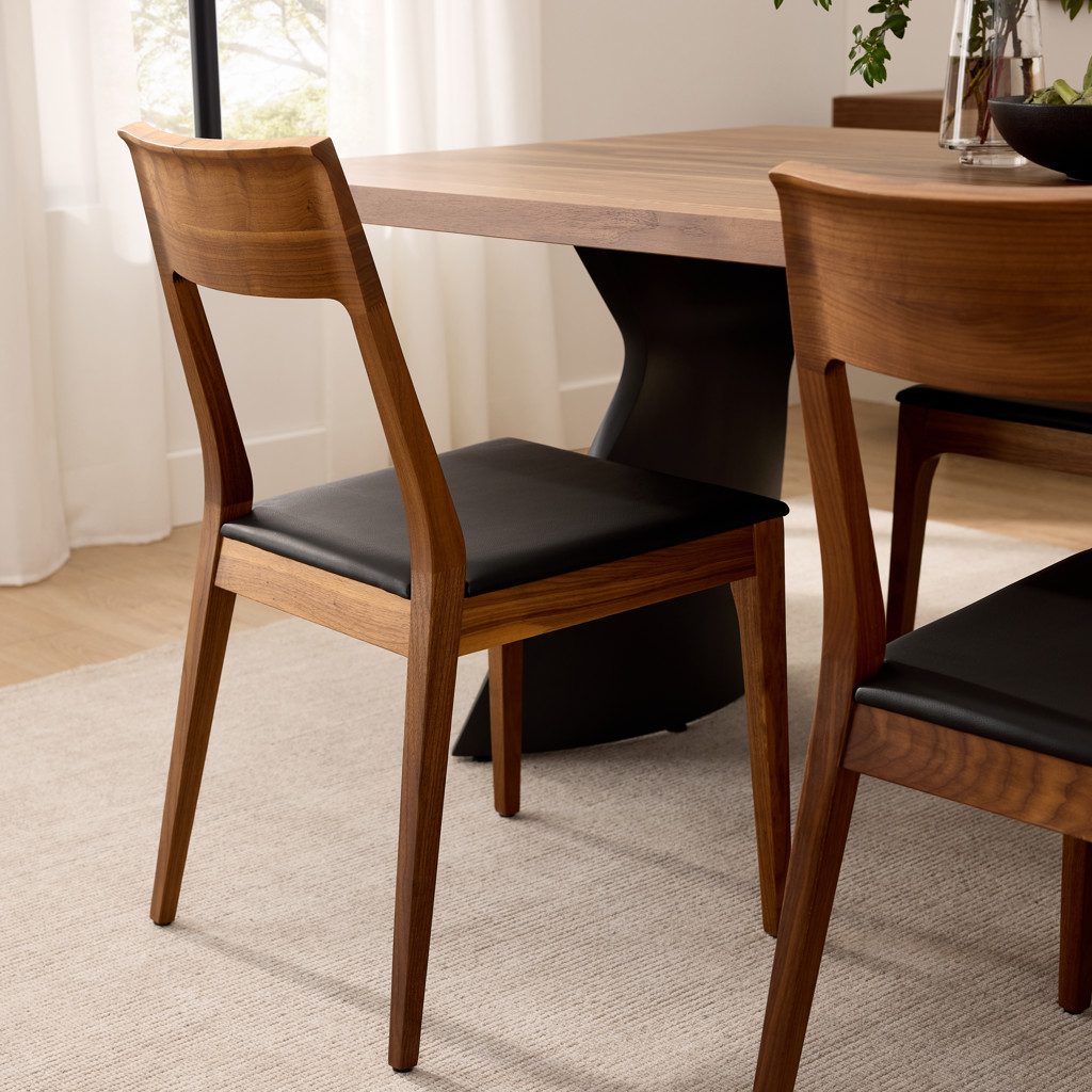 The Capri chair combines the timeless elegance of natural wood with the modern comfort of faux leather. Its clean design and fluid lines make it a seamless fit for any interior style, from contemporary to Scandinavian.