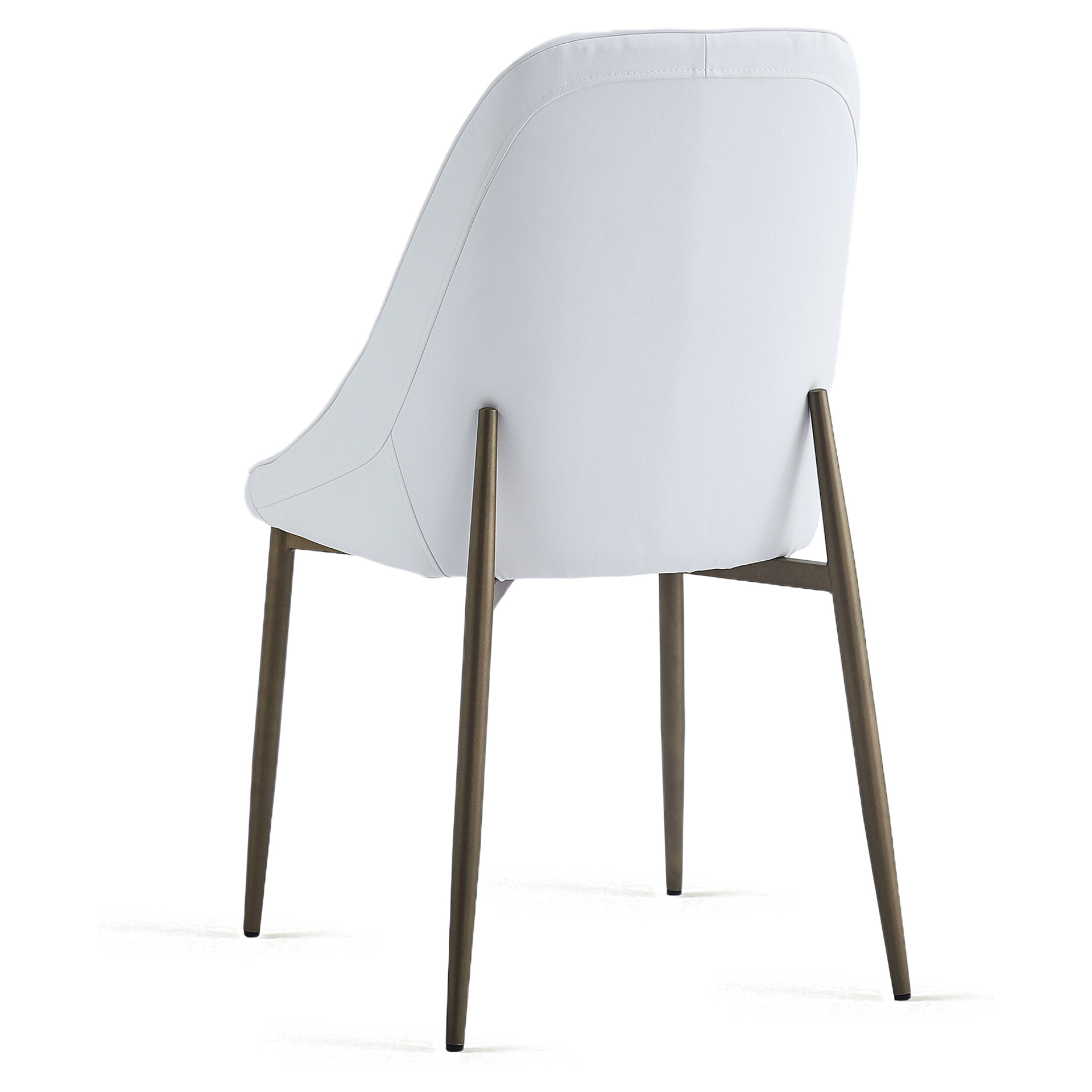 The champagne-finished metal legs create a harmonious contrast with the padded seat, offering both stability and visual appeal. The wraparound backrest provides excellent support, while the faux leather upholstery ensures effortless daily maintenance.