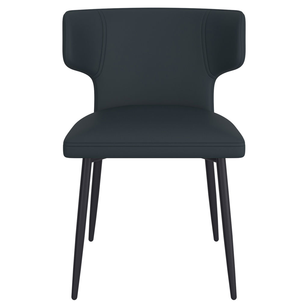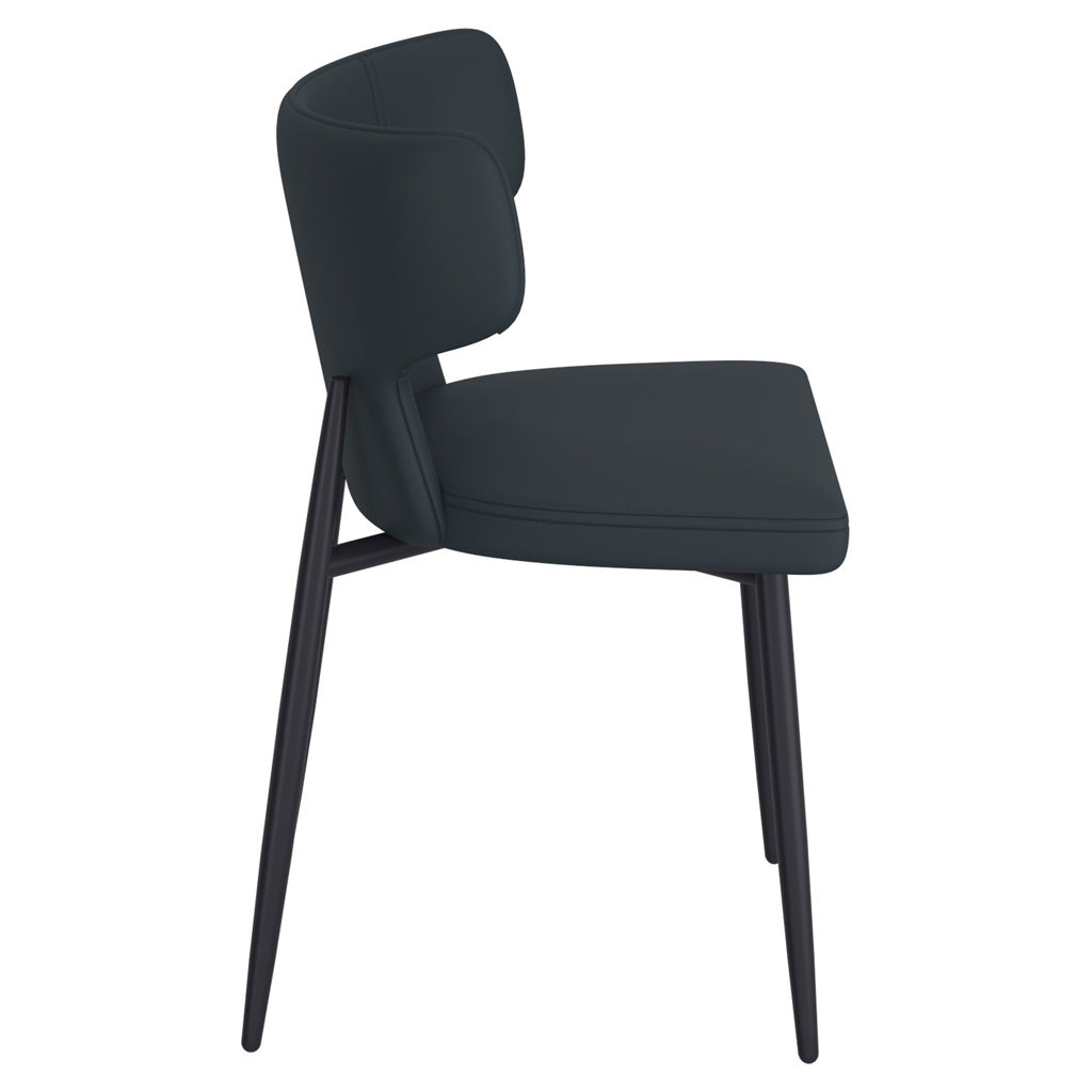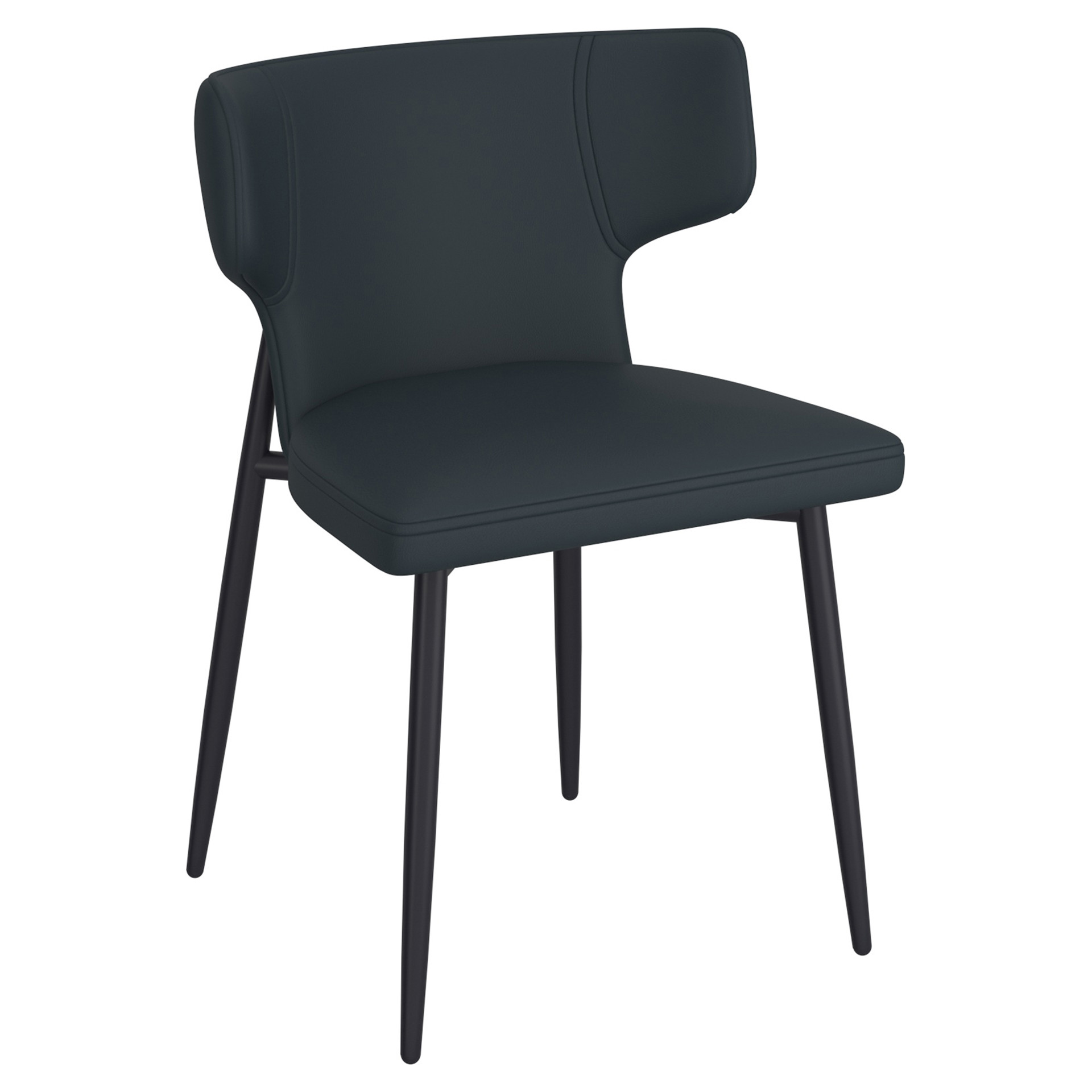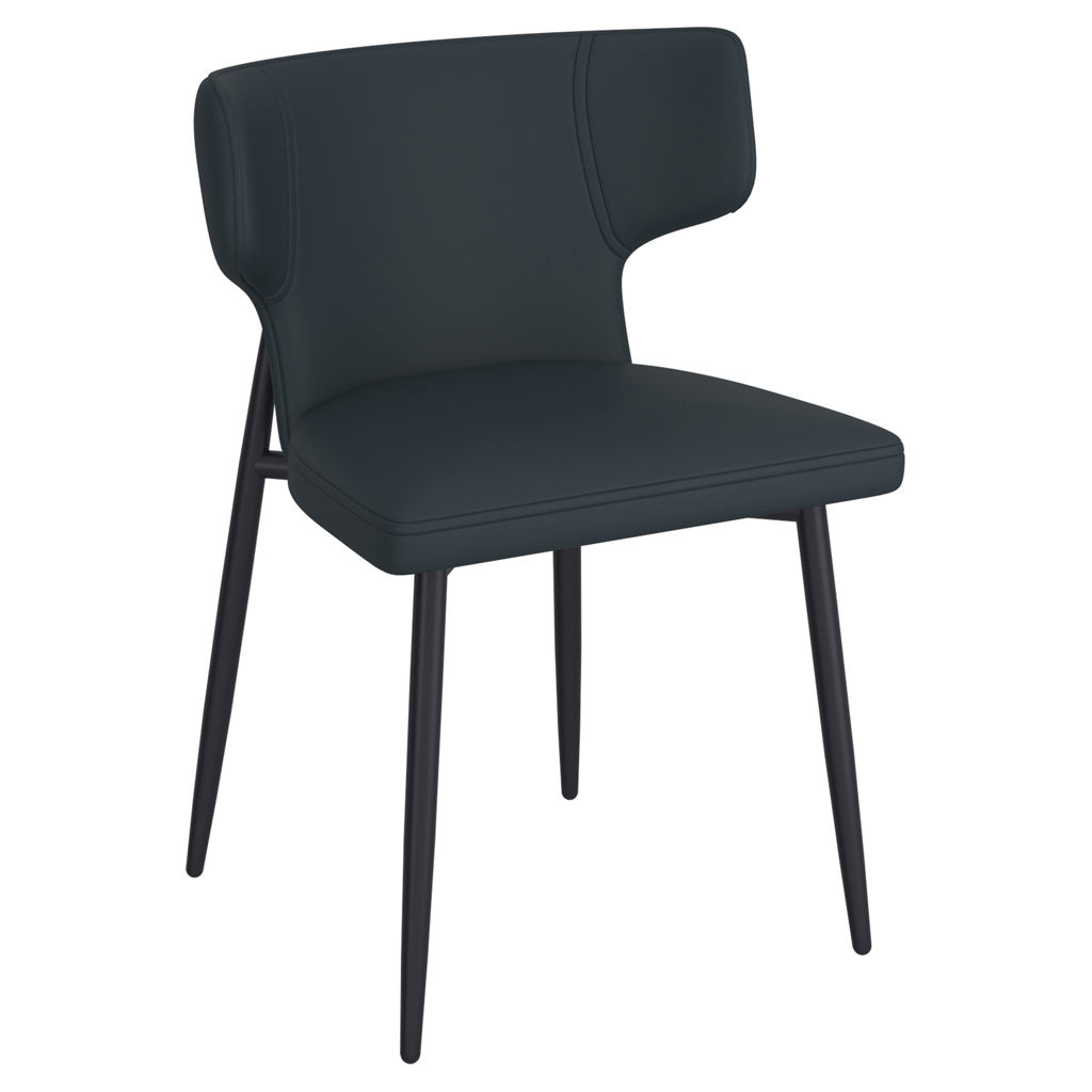 The Olis chair embodies modern elegance with its streamlined design and soft, sophisticated lines. Its generously curved ergonomic backrest provides optimal comfort, while the black faux leather upholstery adds a warm, refined touch to your space.