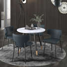 Set on matte black metal legs, it creates a bold contrast that fits beautifully into contemporary interiors. Its distinctive silhouette instantly elevates any kitchen or dining room into a stylish and welcoming gathering place.