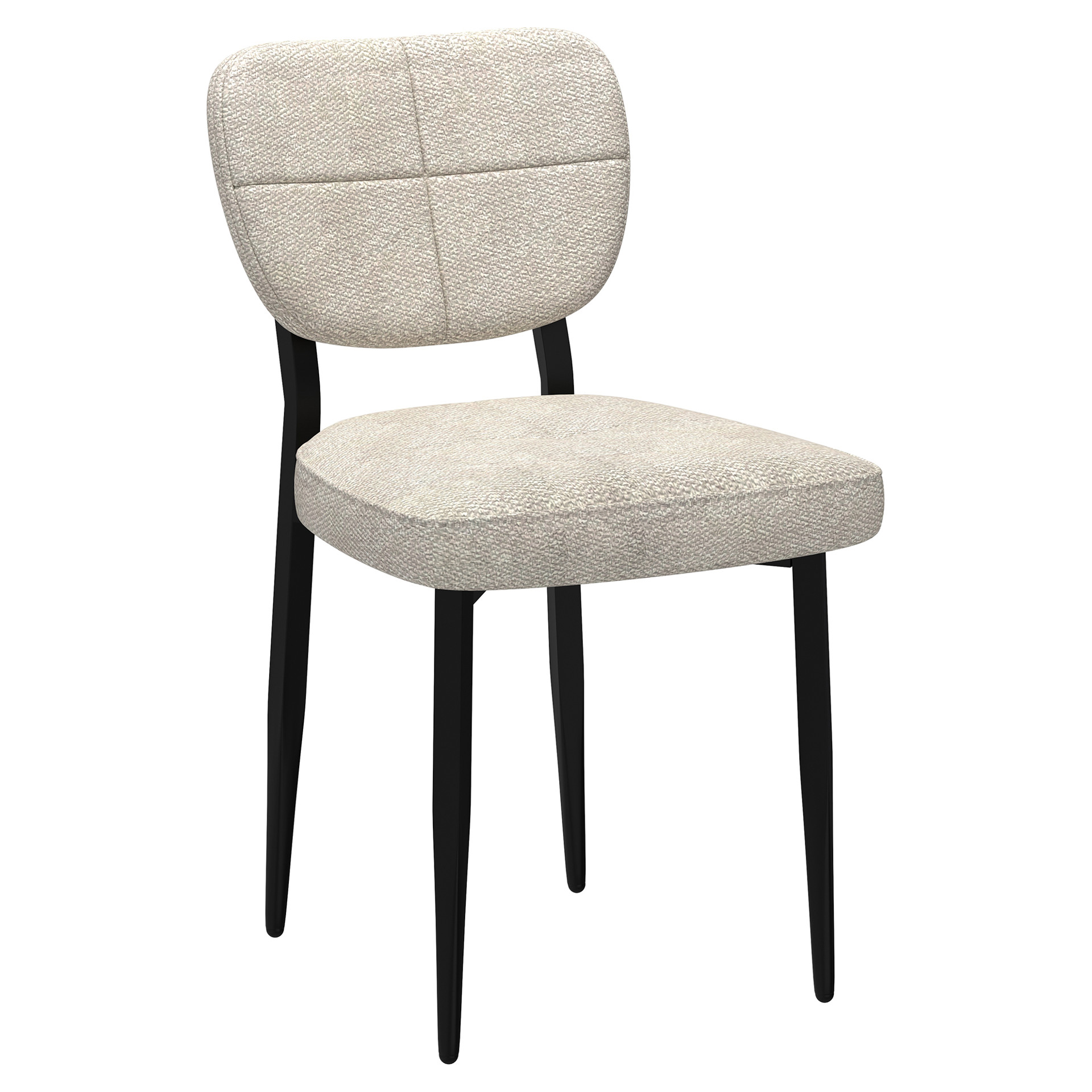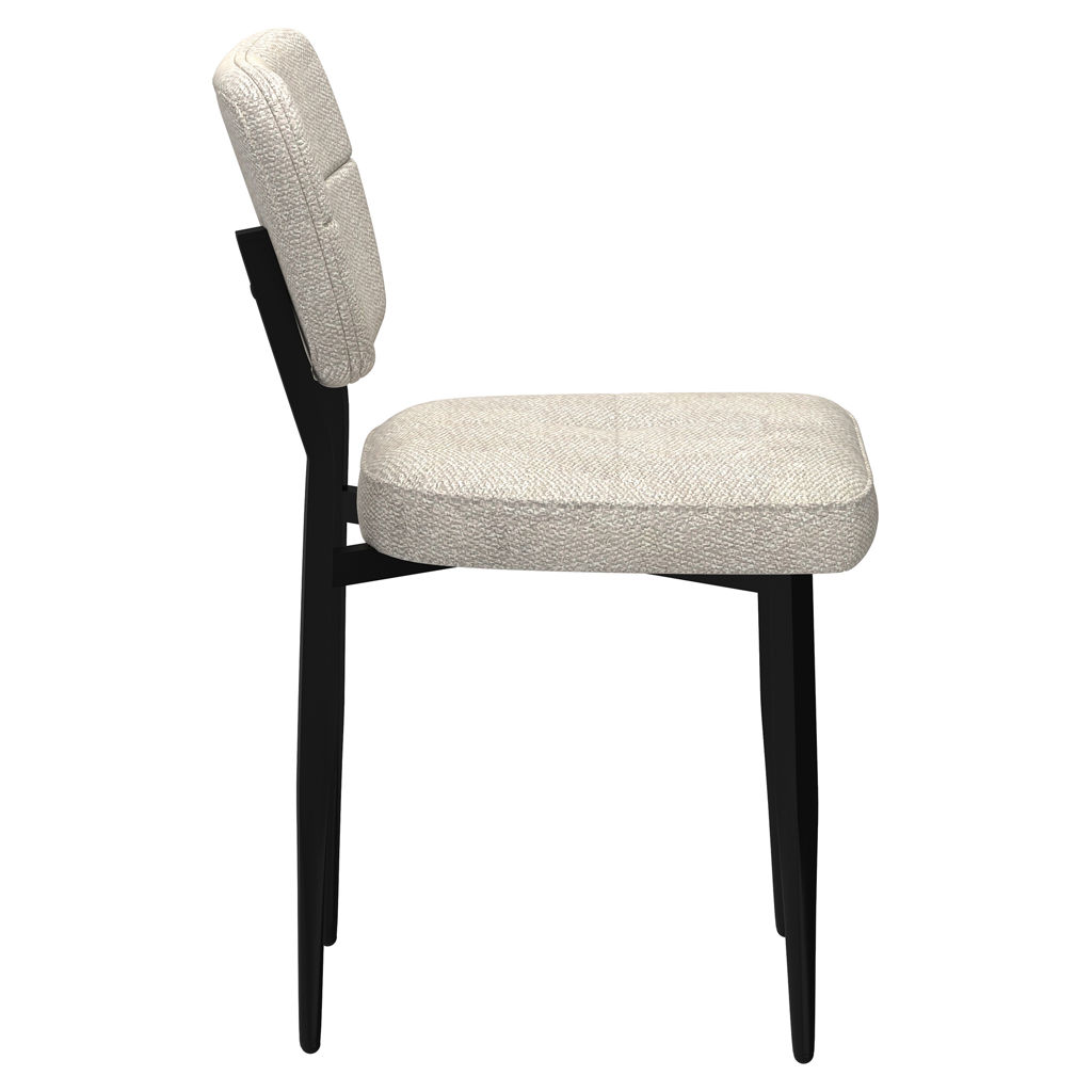 The thick, textured fabric has a modern stitched pattern, and sits atop a black metal frame that provides a clean look along with sturdy support.