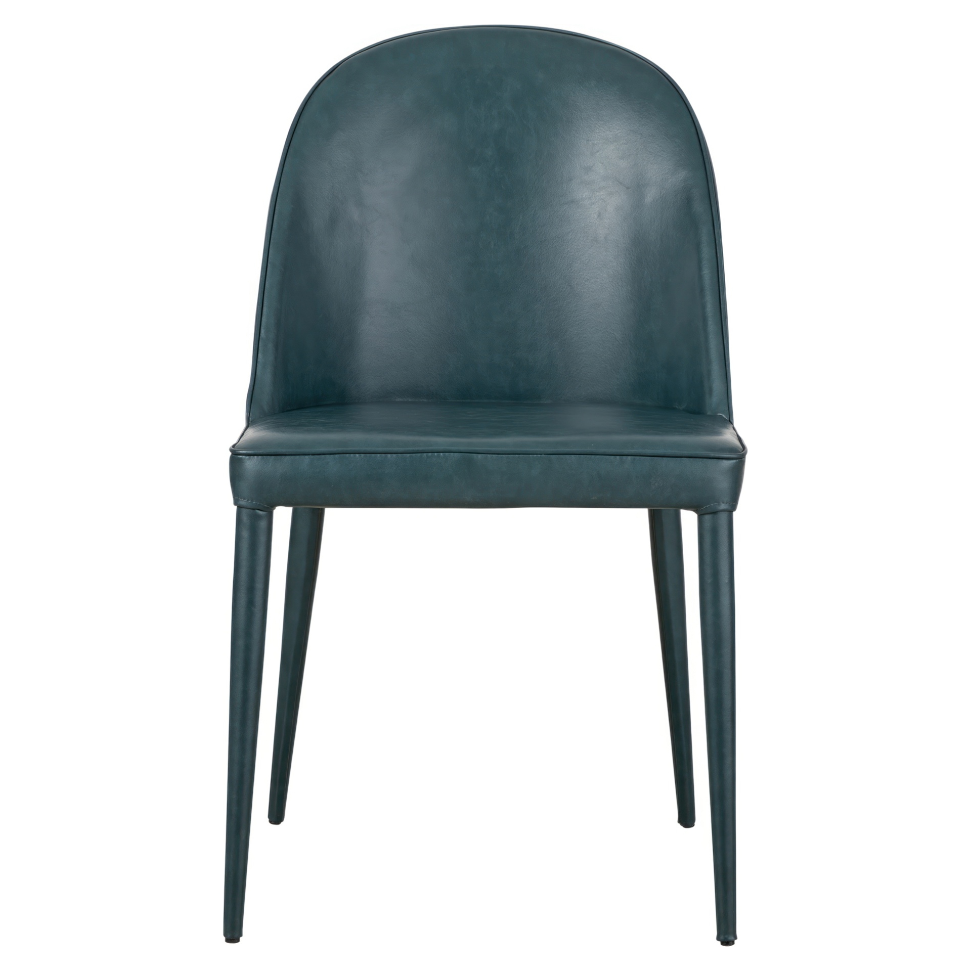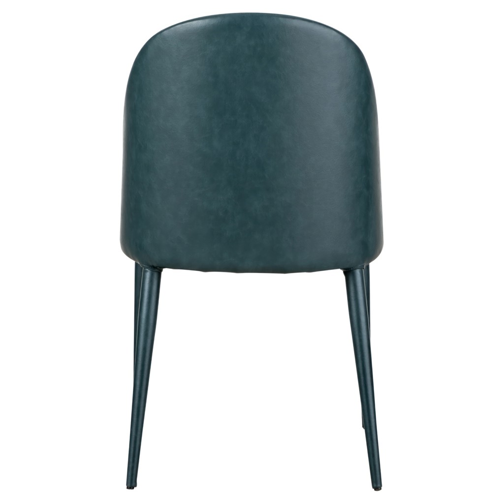 Upholstered in high-quality teal vegan leather, this chair combines durability with eco-conscious appeal. The wraparound backrest and padded seat offer lasting comfort for leisurely meals and gatherings.