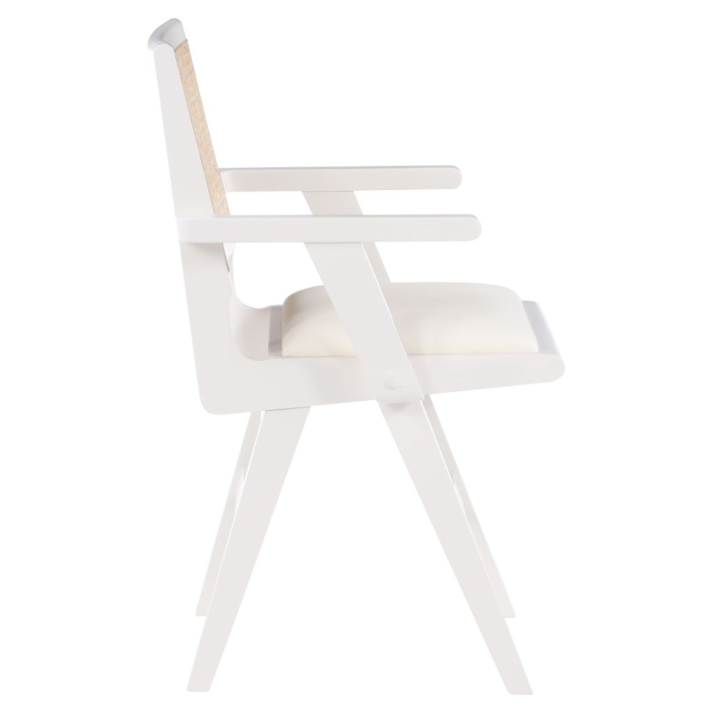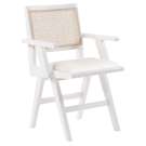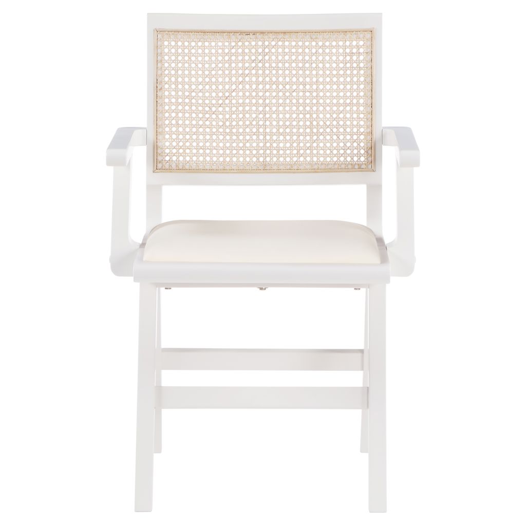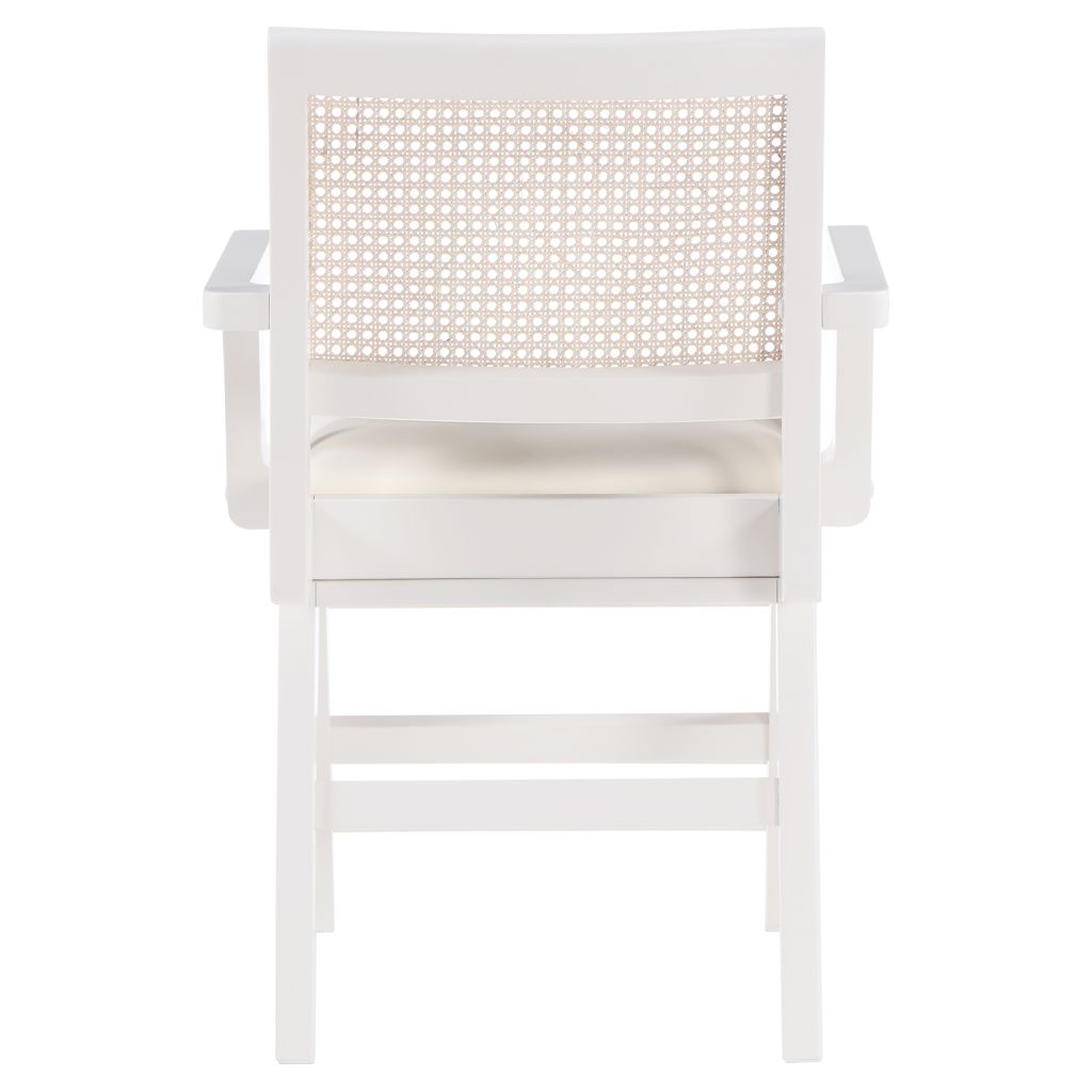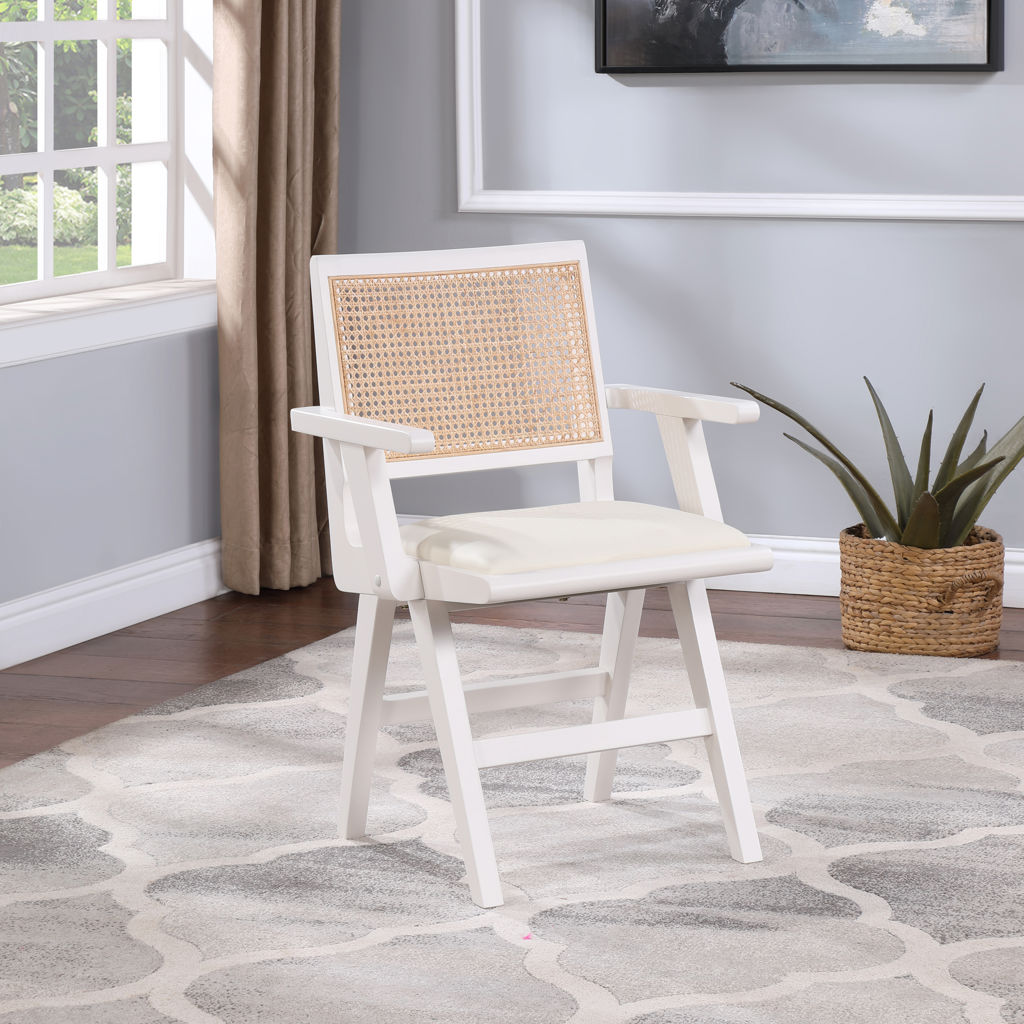 A natural cane back rest provides a pop of color that contrasts well with the chair's white frame, ensuring that it will stand out among all your furniture.