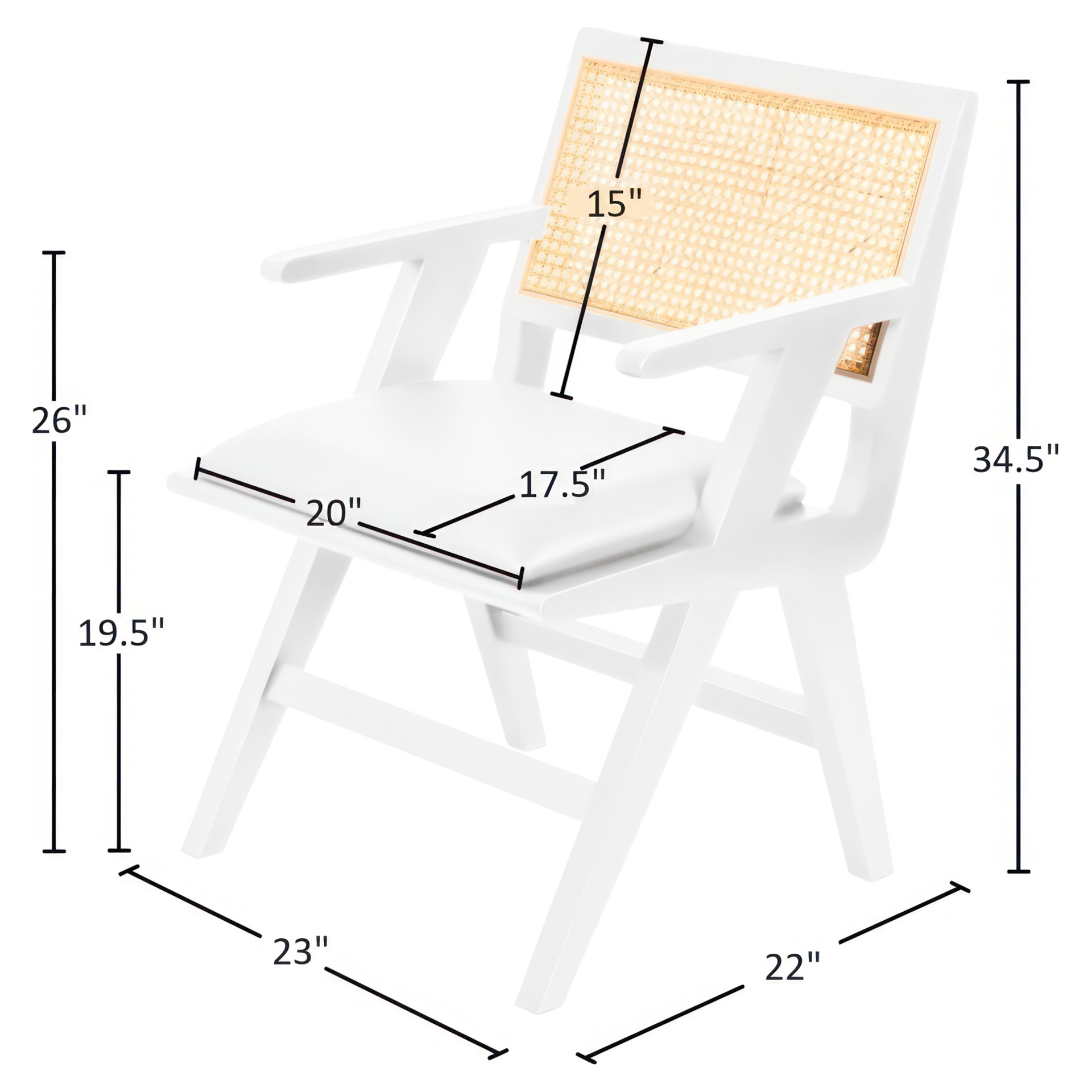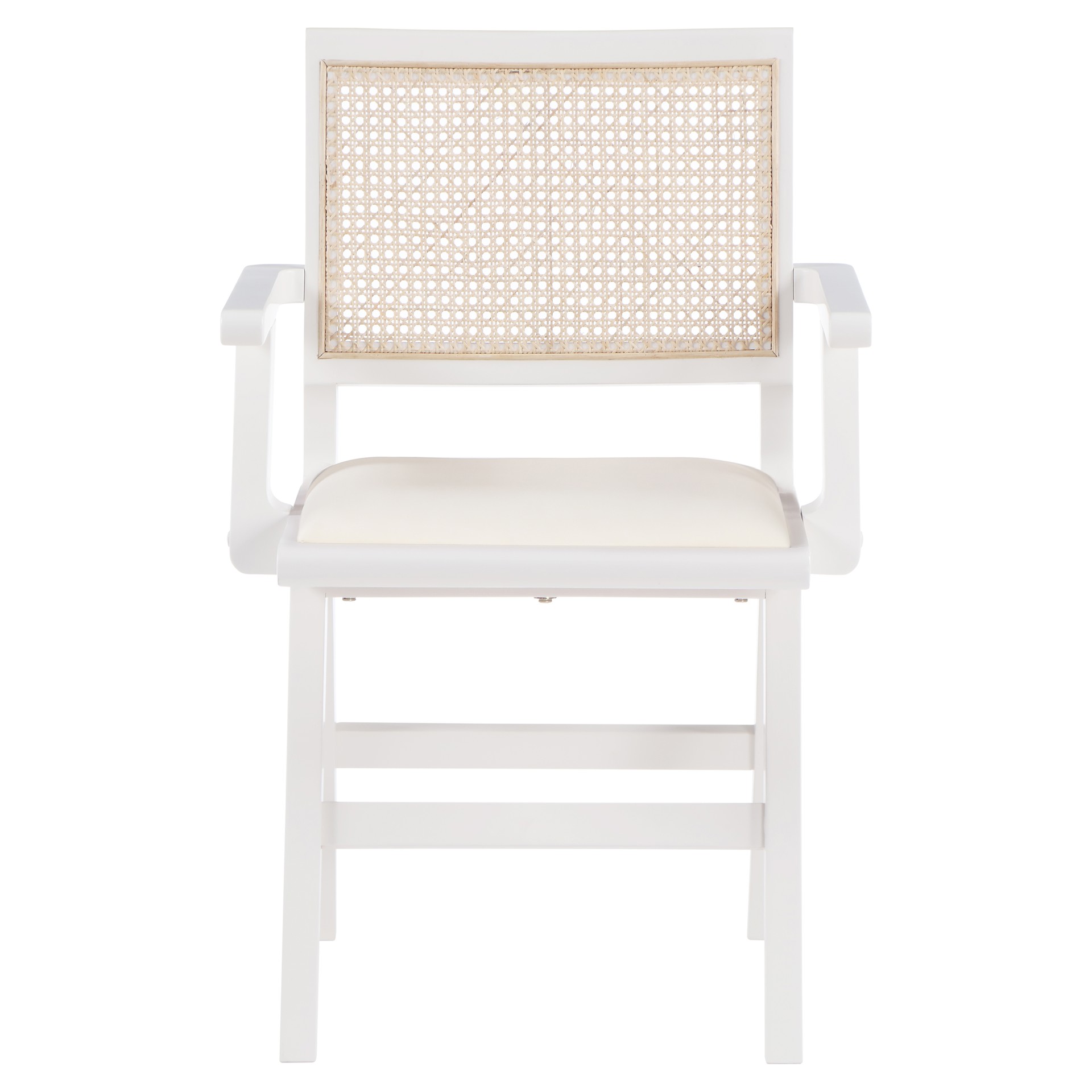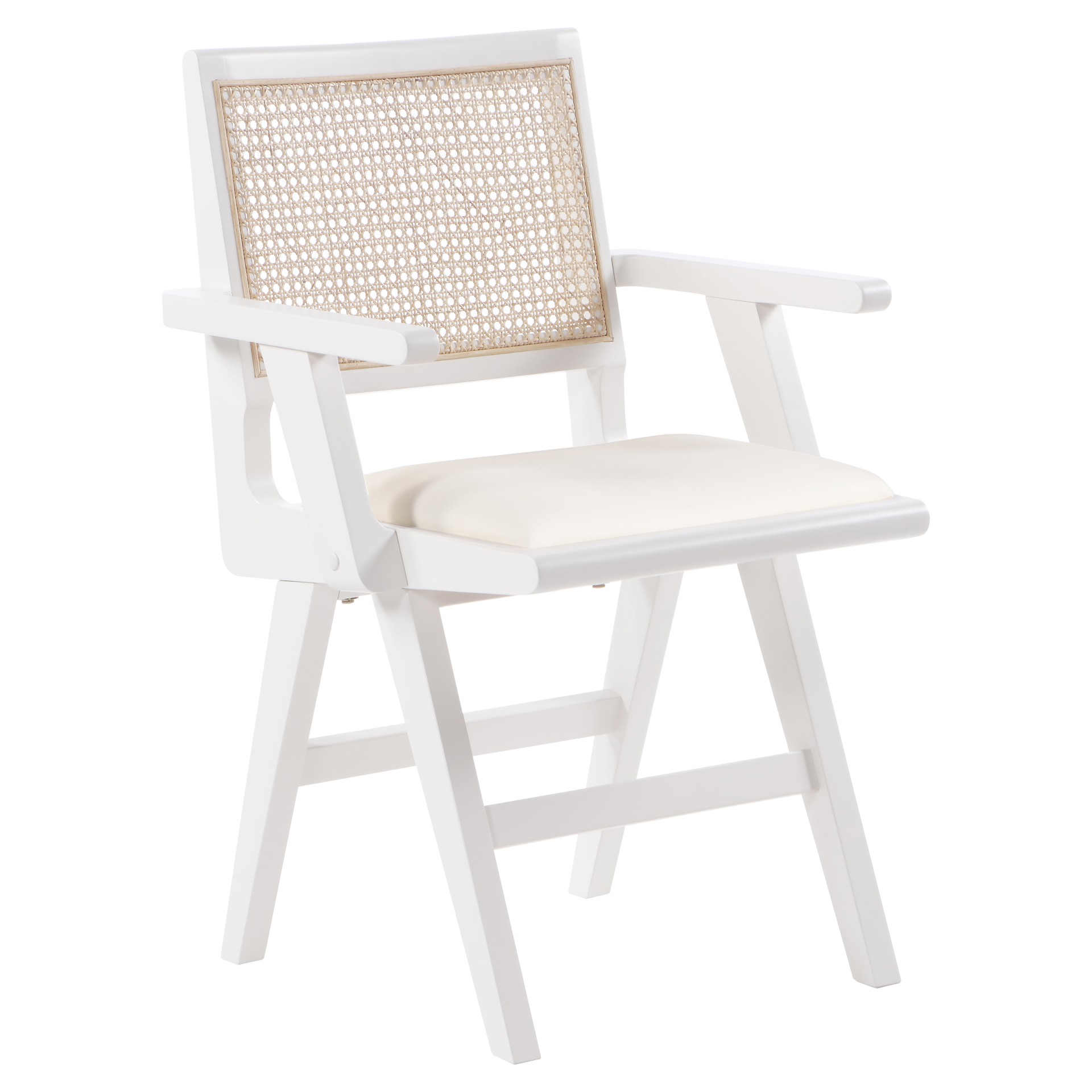 A natural cane back rest provides a pop of color that contrasts well with the chair's white frame, ensuring that it will stand out among all your furniture.