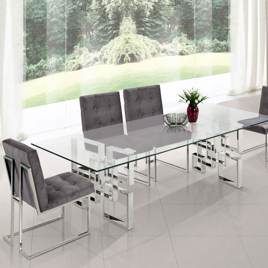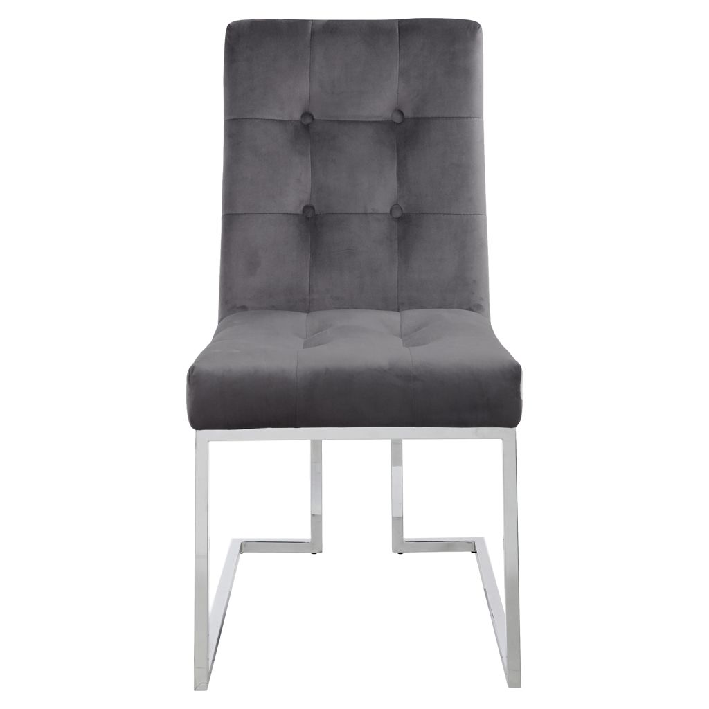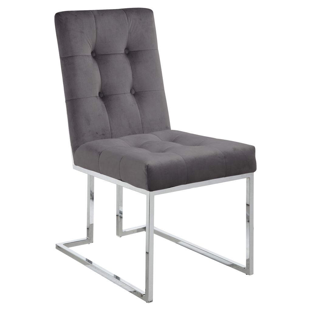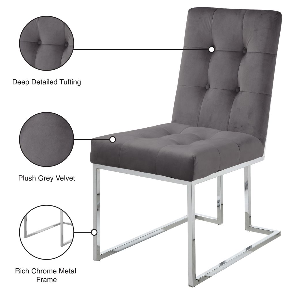 Dine in sophistication and elegance when you're seated in this Alexis grey velvet dining chair.