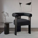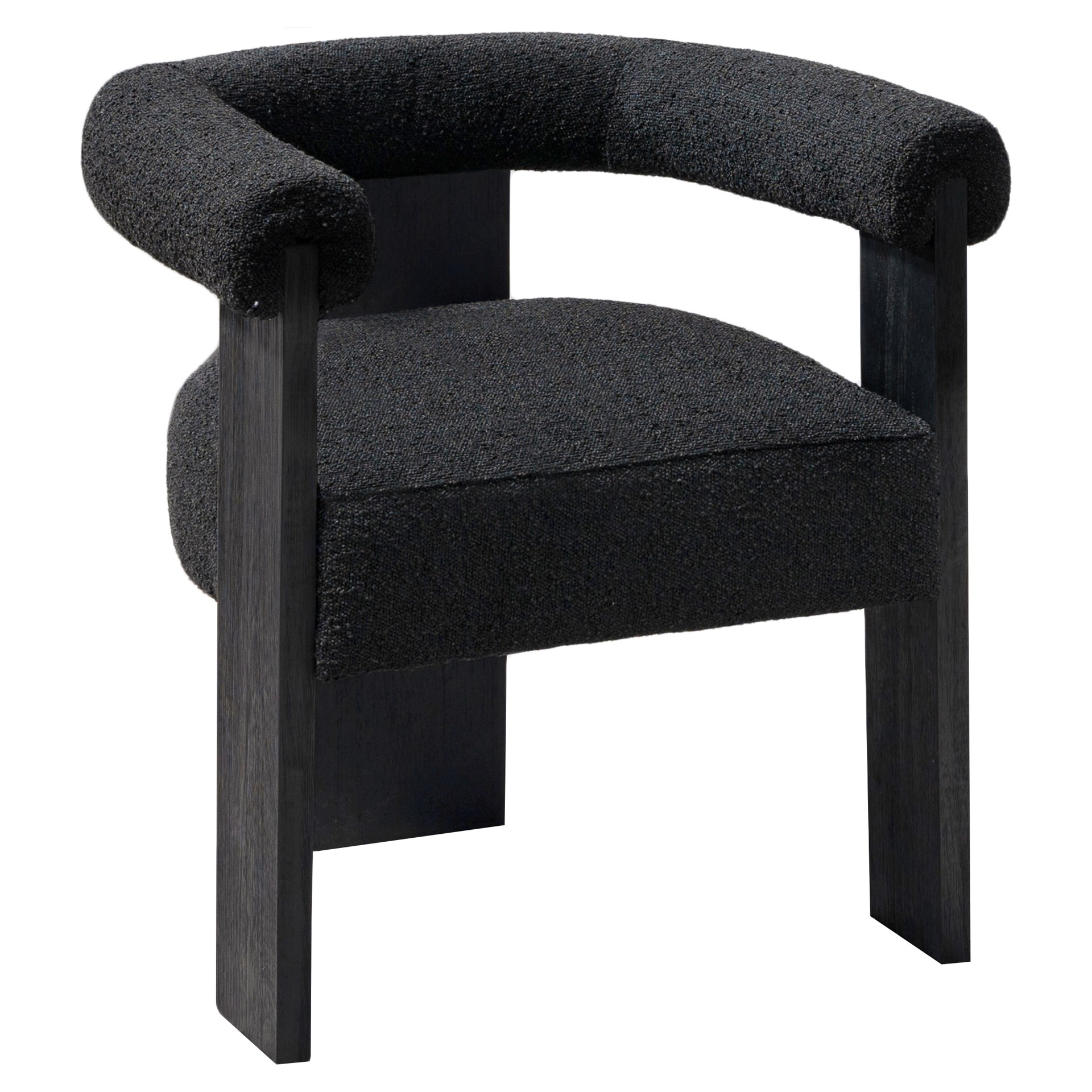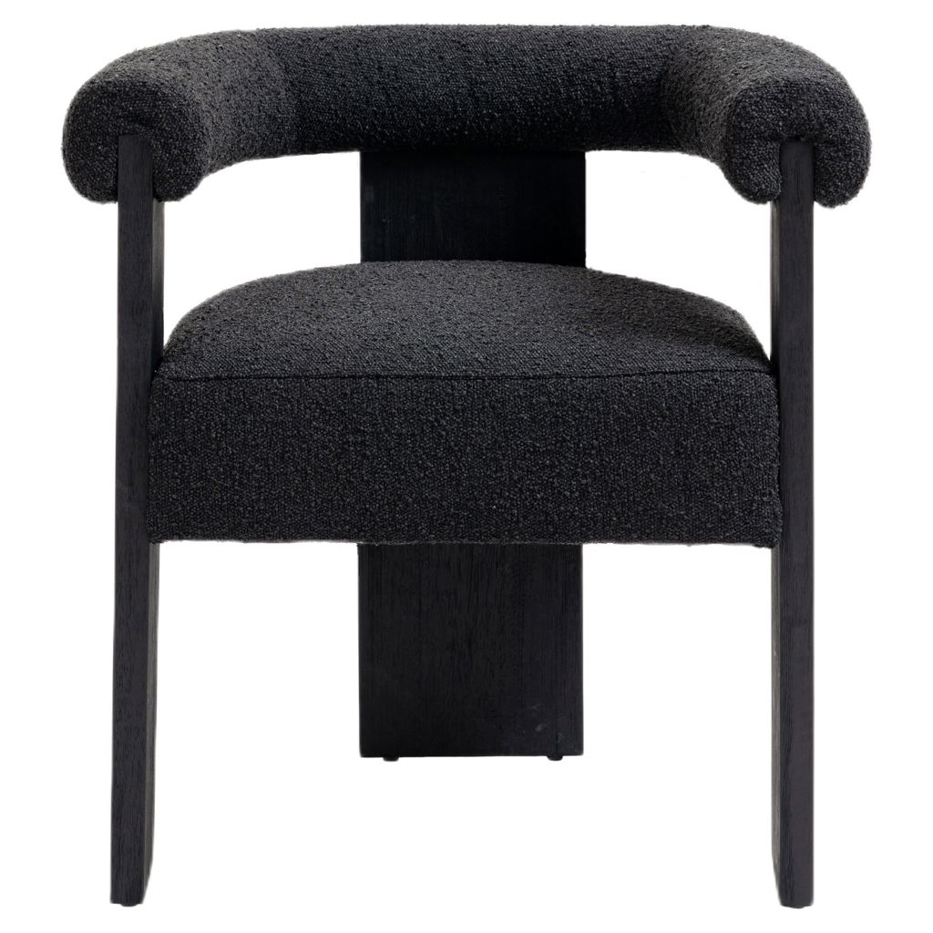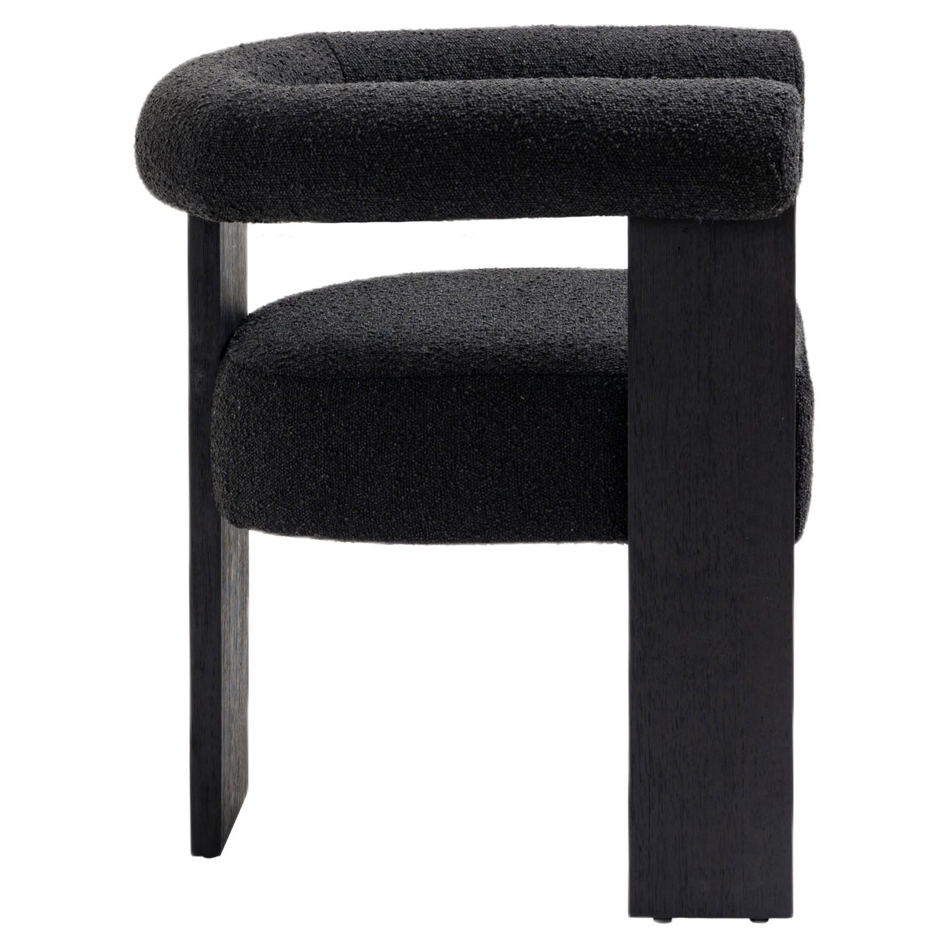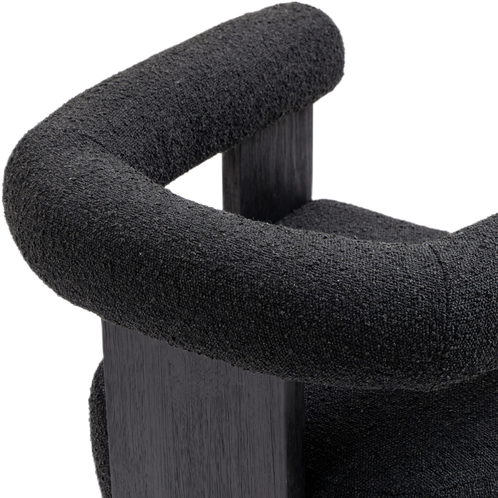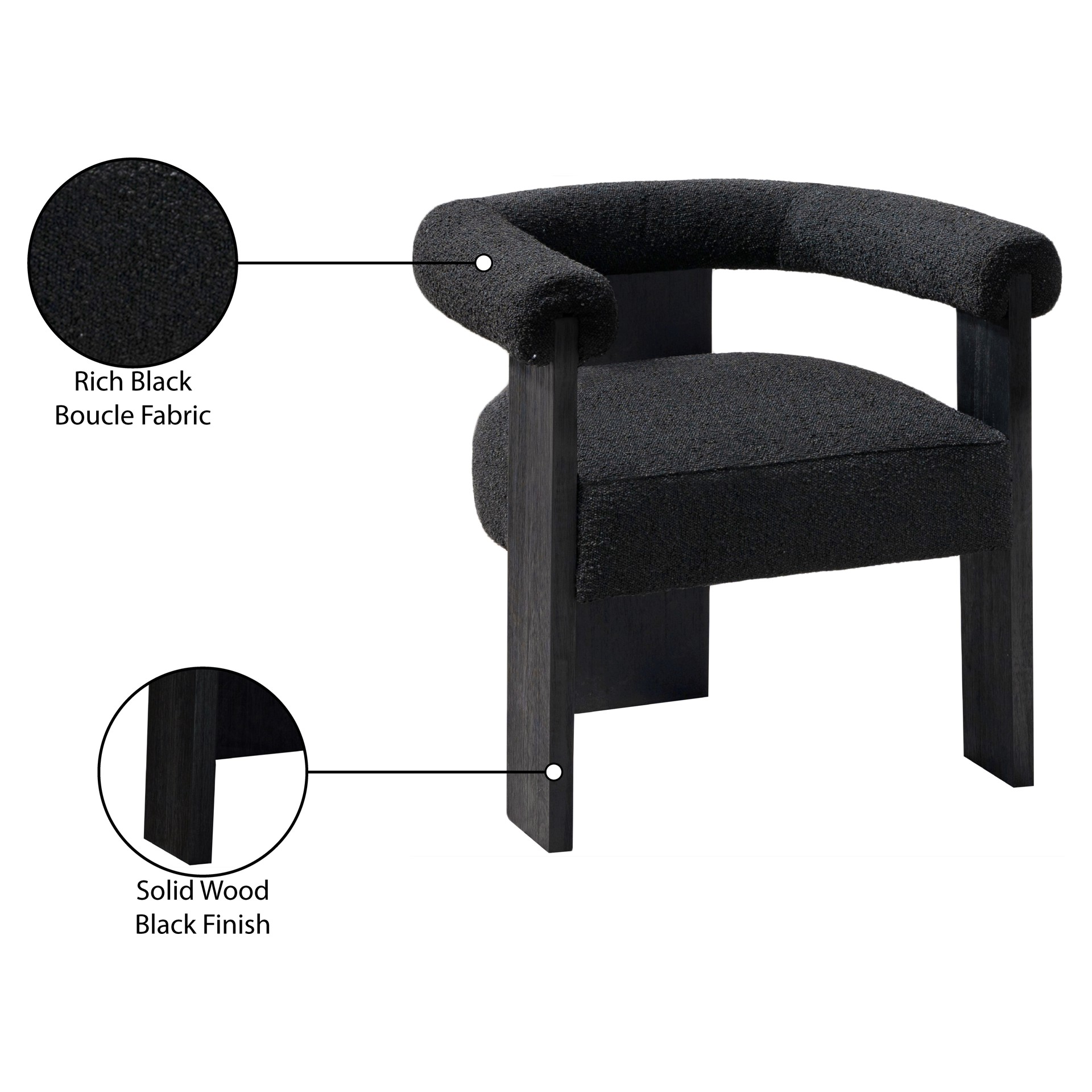 Designed to inject instant modern oomph into your space, this chair features a solid wood frame for sturdy durability and is outfitted with rich black boucle fabric for a luxe finish.