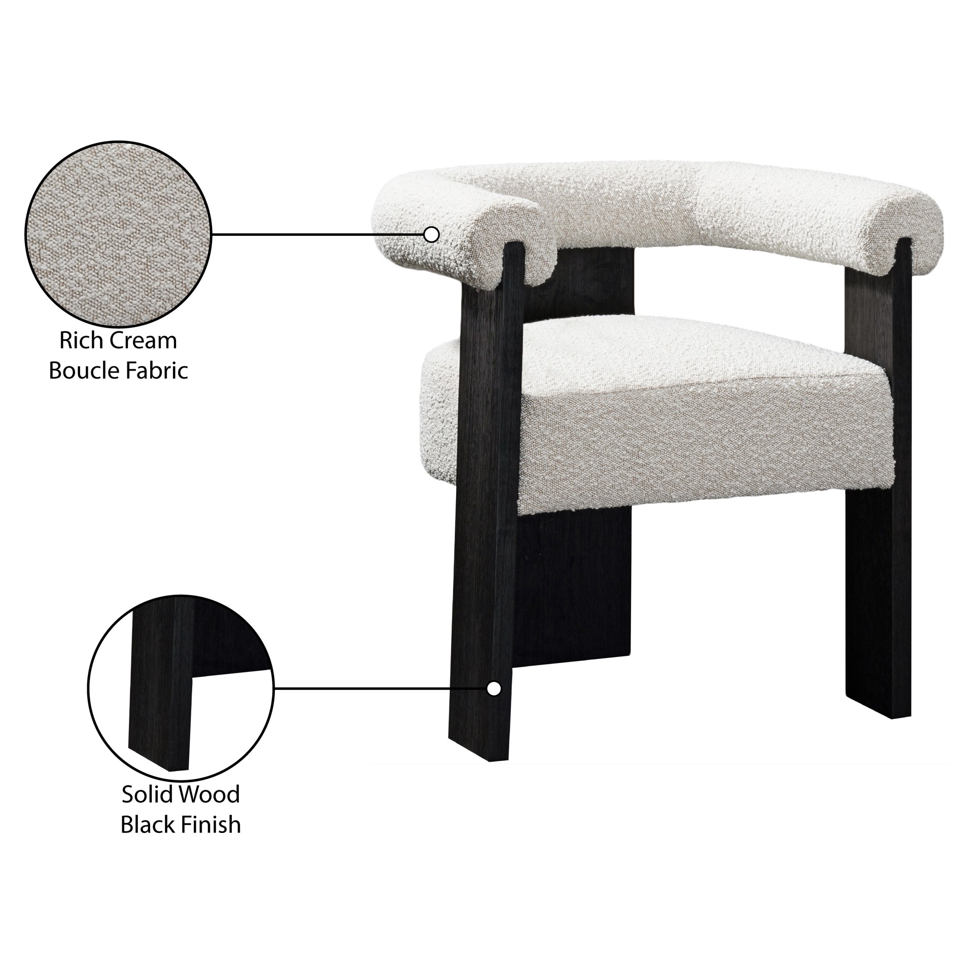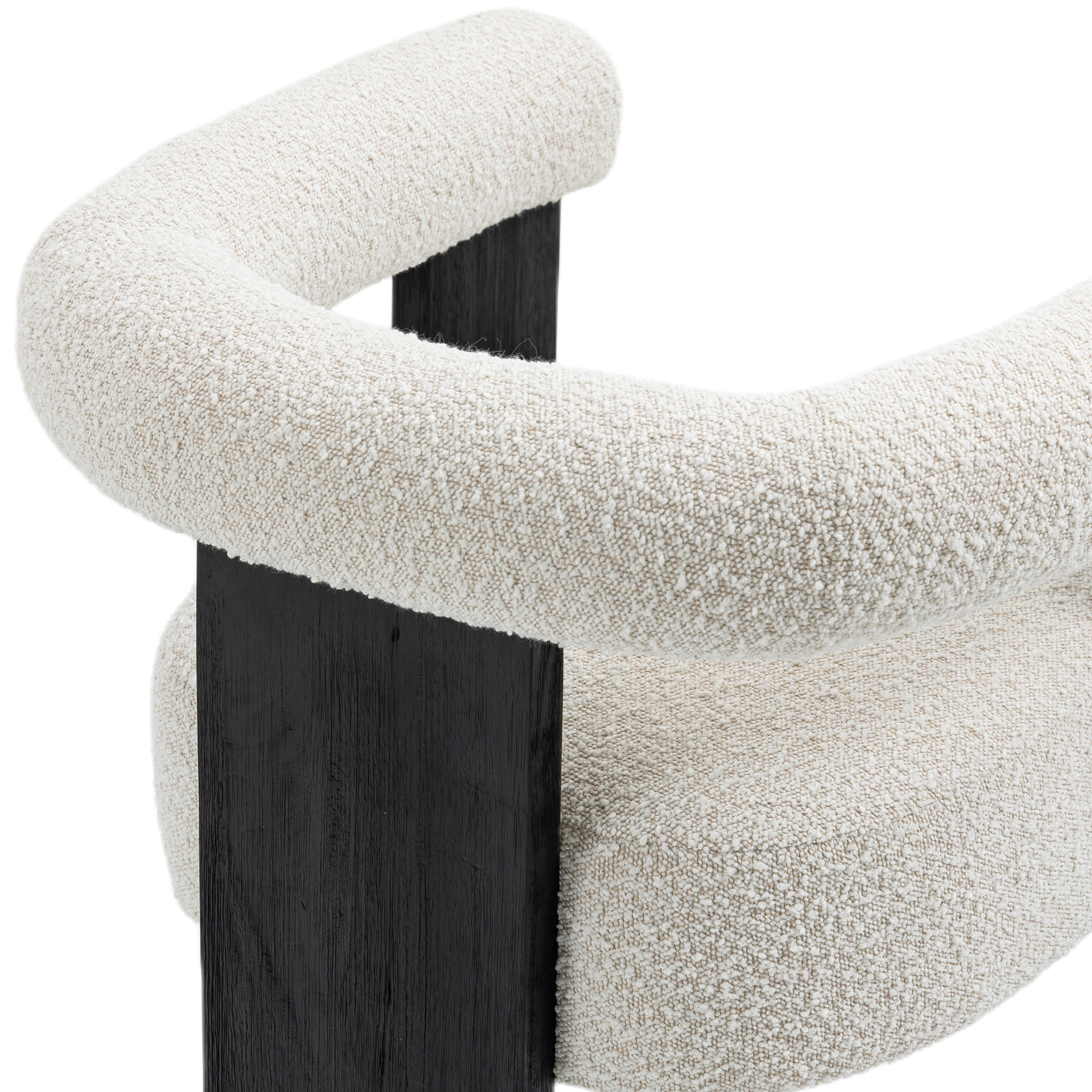 Designed to inject instant modern oomph into your space, this chair features a solid wood frame for sturdy durability and is outfitted with rich cream boucle fabric for a luxe finish.