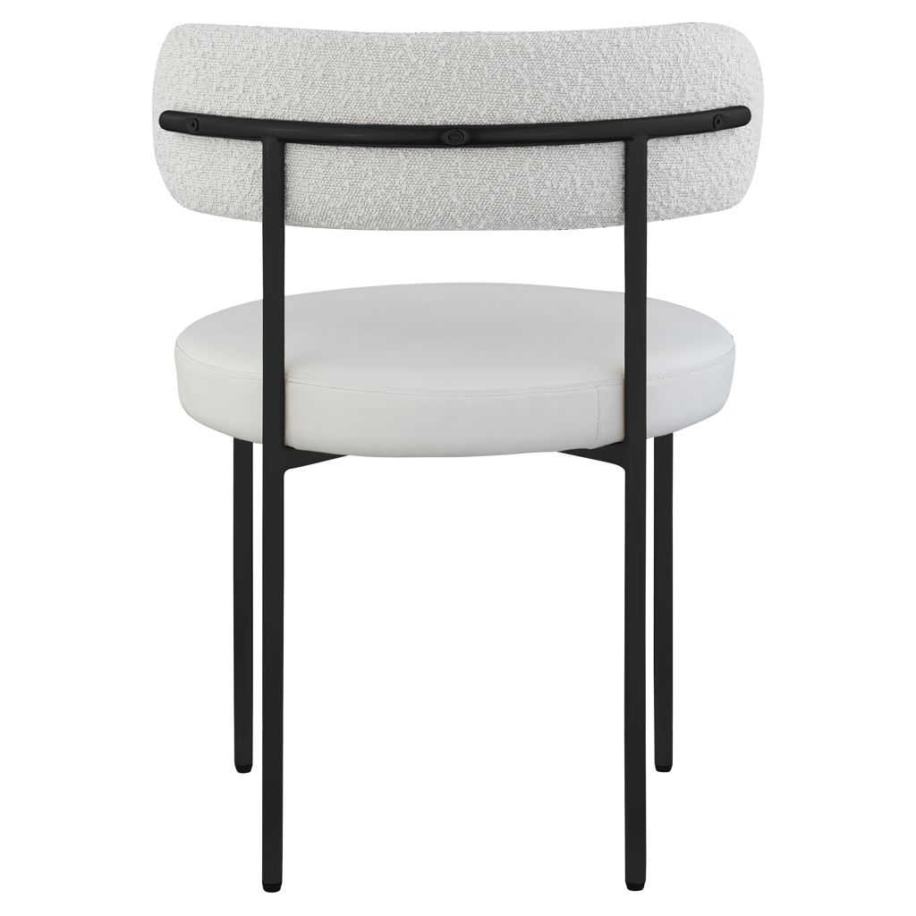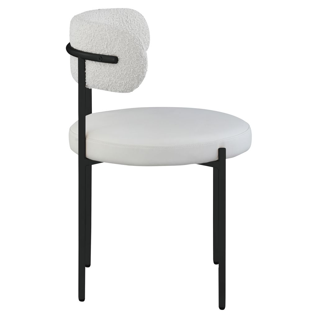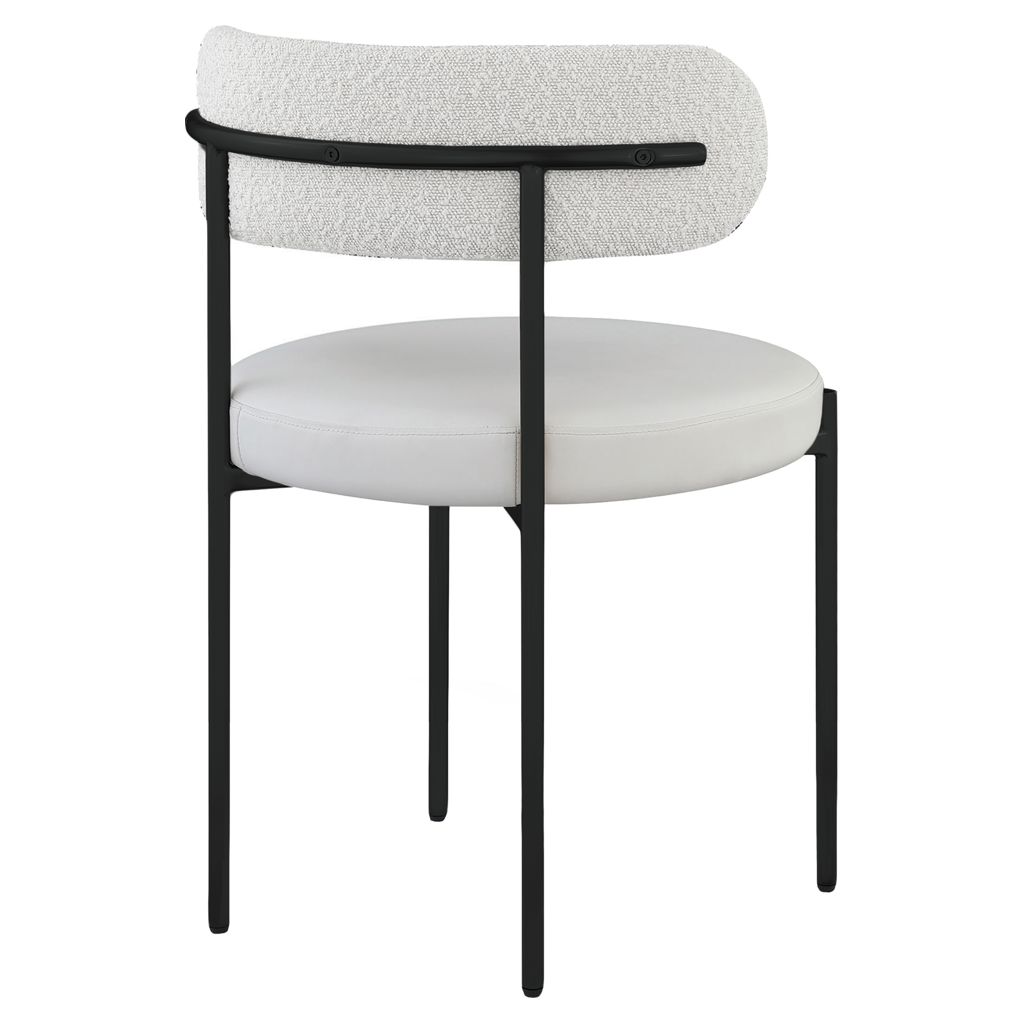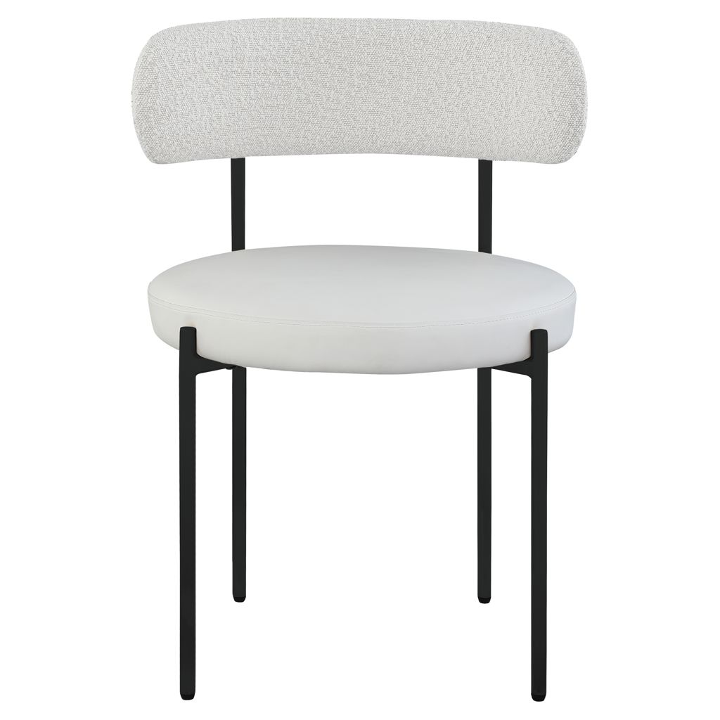 Bring modern comfort to the dining room with this Beacon cream faux leather and boucle fabric dining chair.