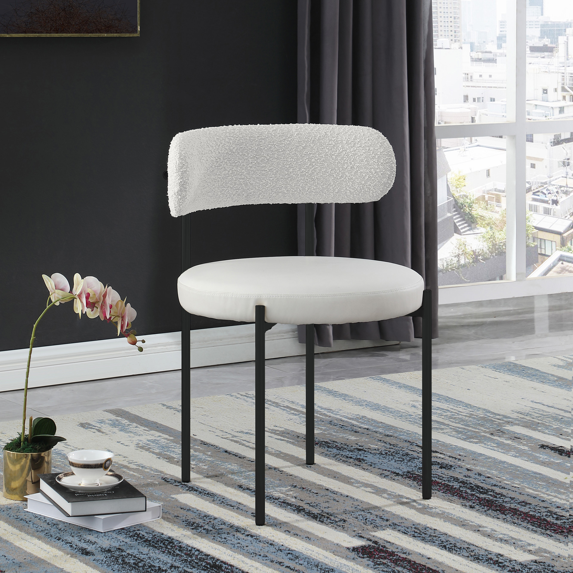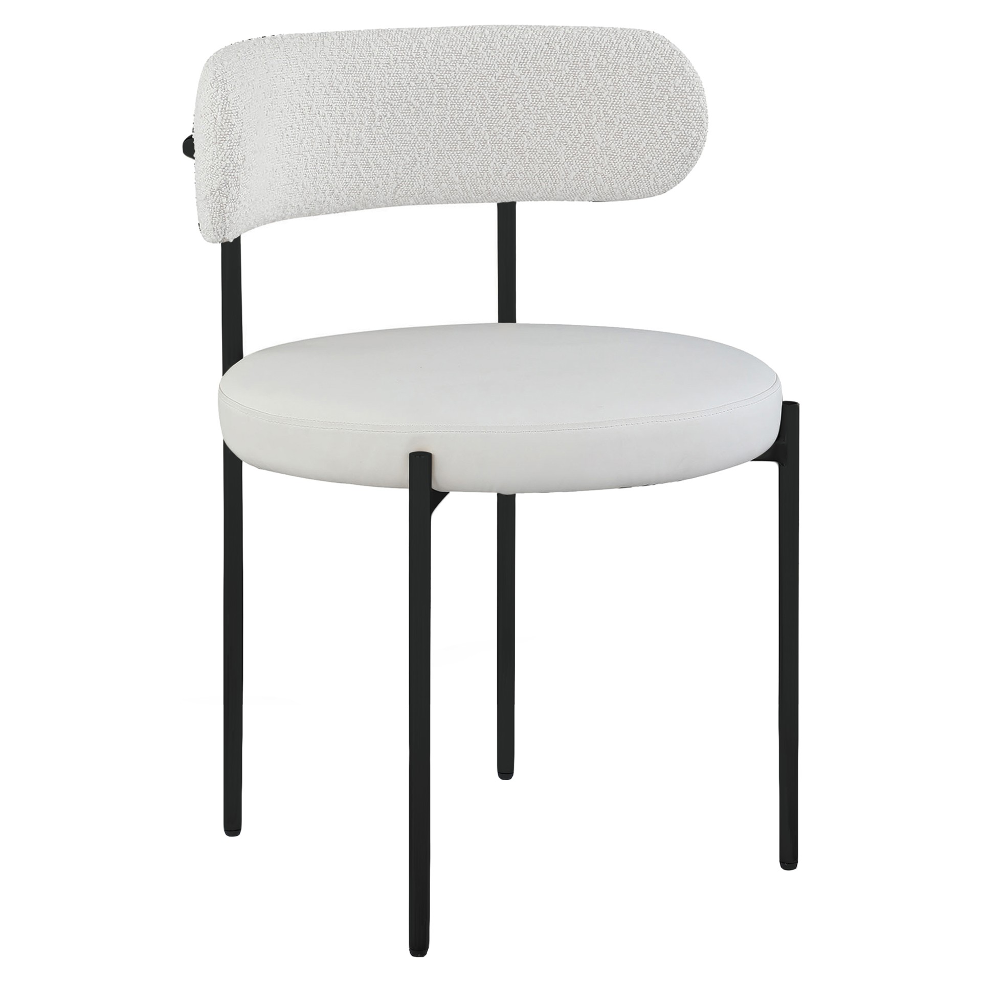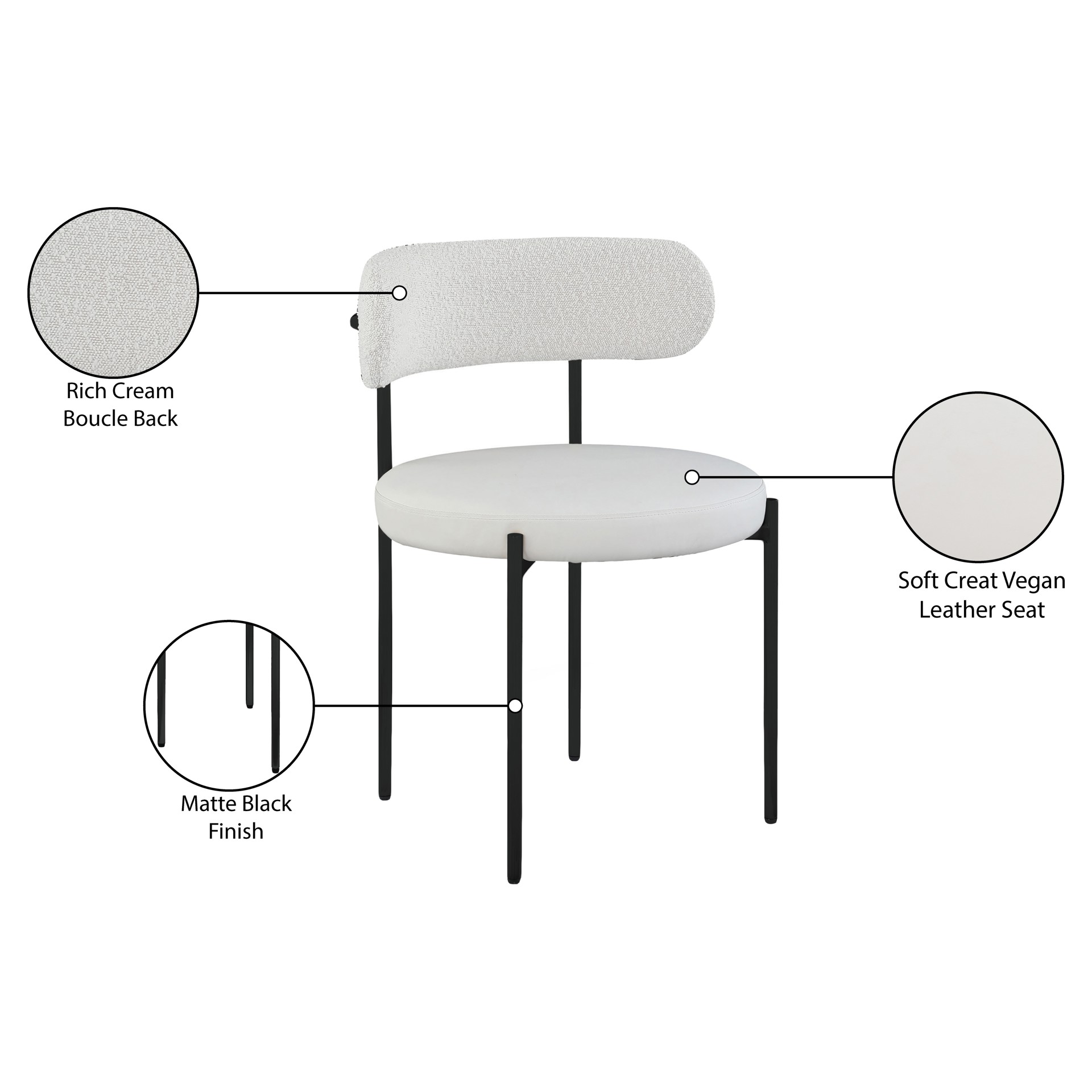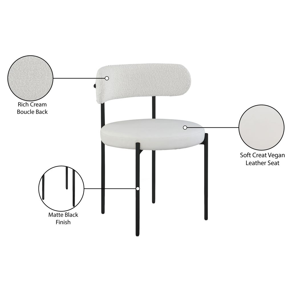 Bring modern comfort to the dining room with this Beacon cream faux leather and boucle fabric dining chair.
