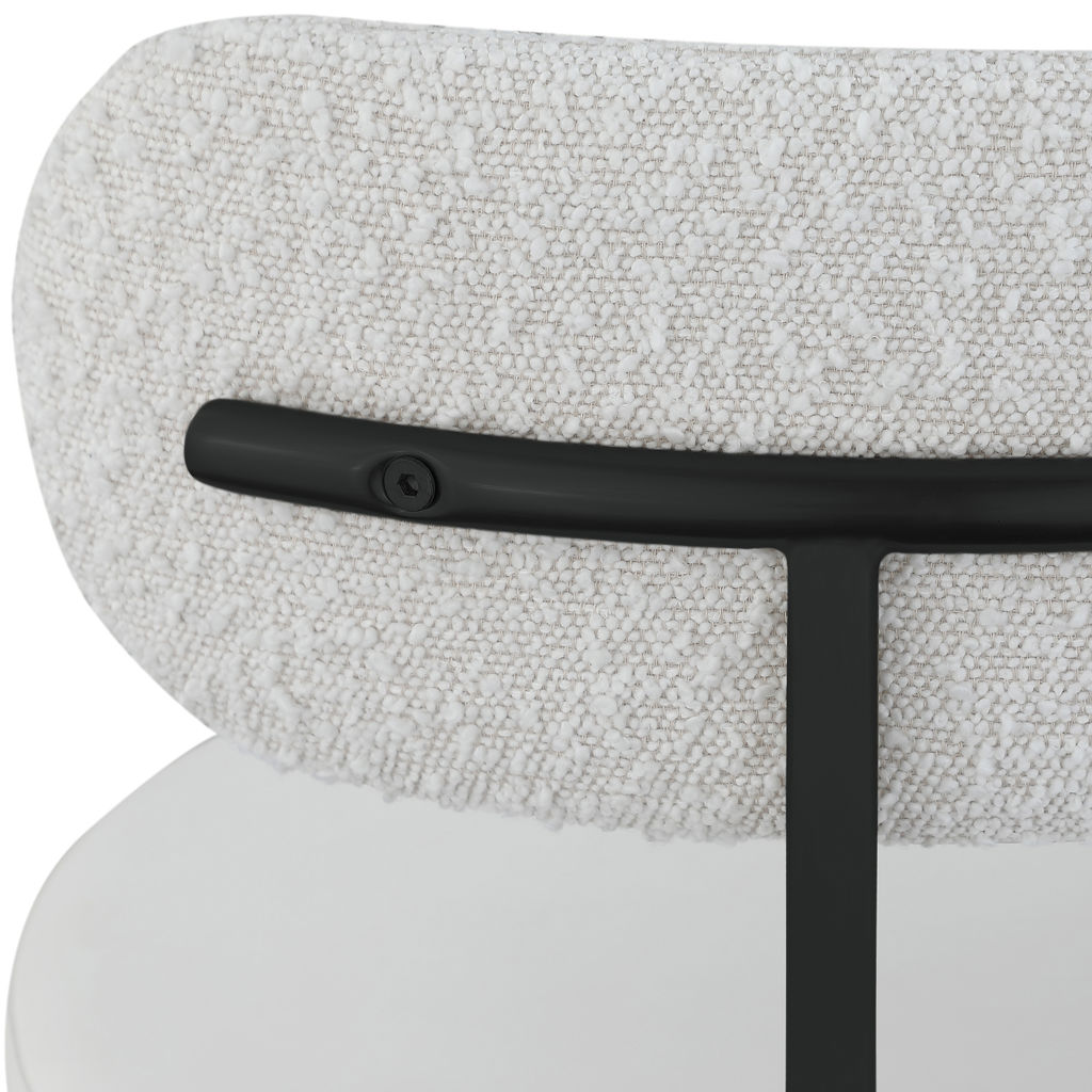 The seat comes upholstered in faux leather for a luxe look while the back is covered in rich cream boucle fabric.