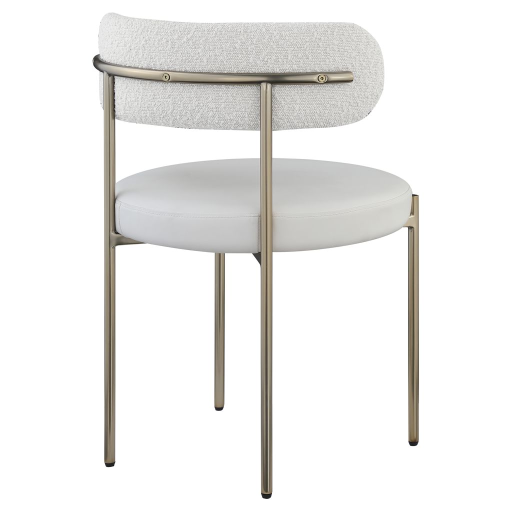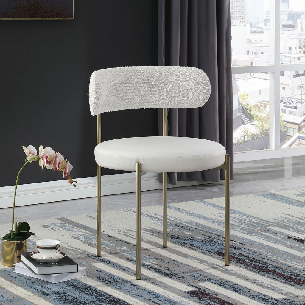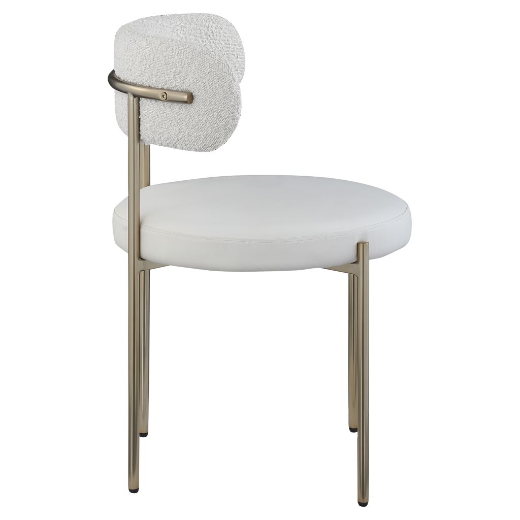 Give your dining room a modern boost with this Beacon vegan leather and boucle fabric dining chair.